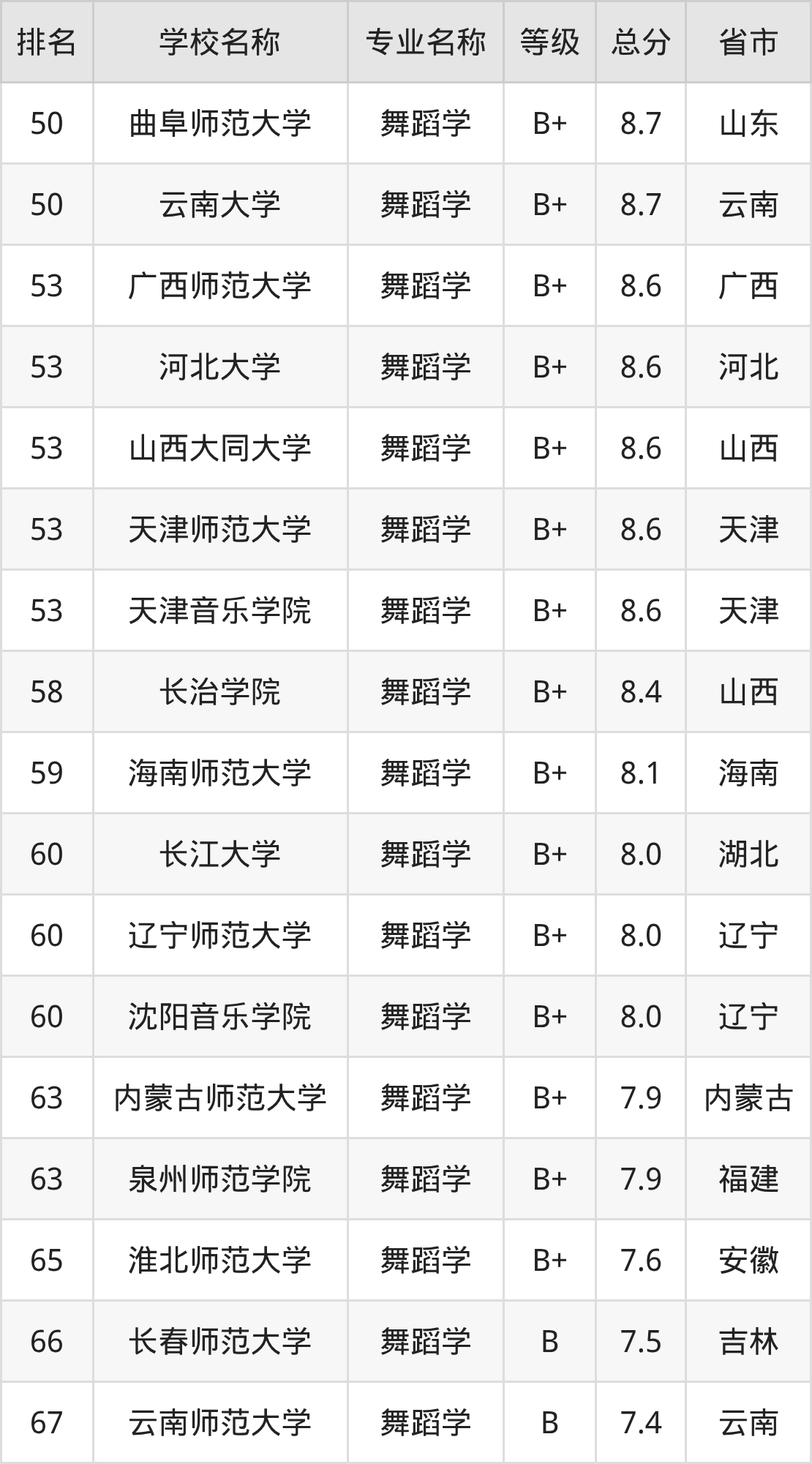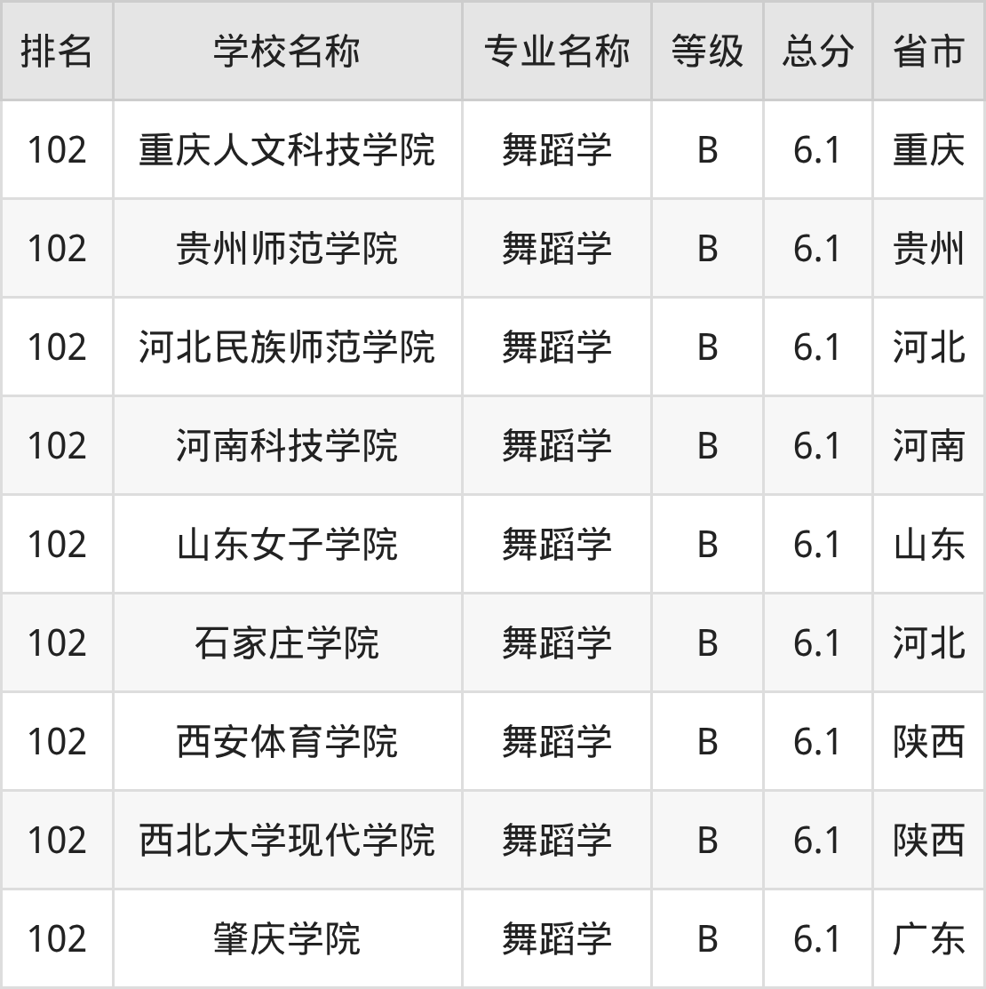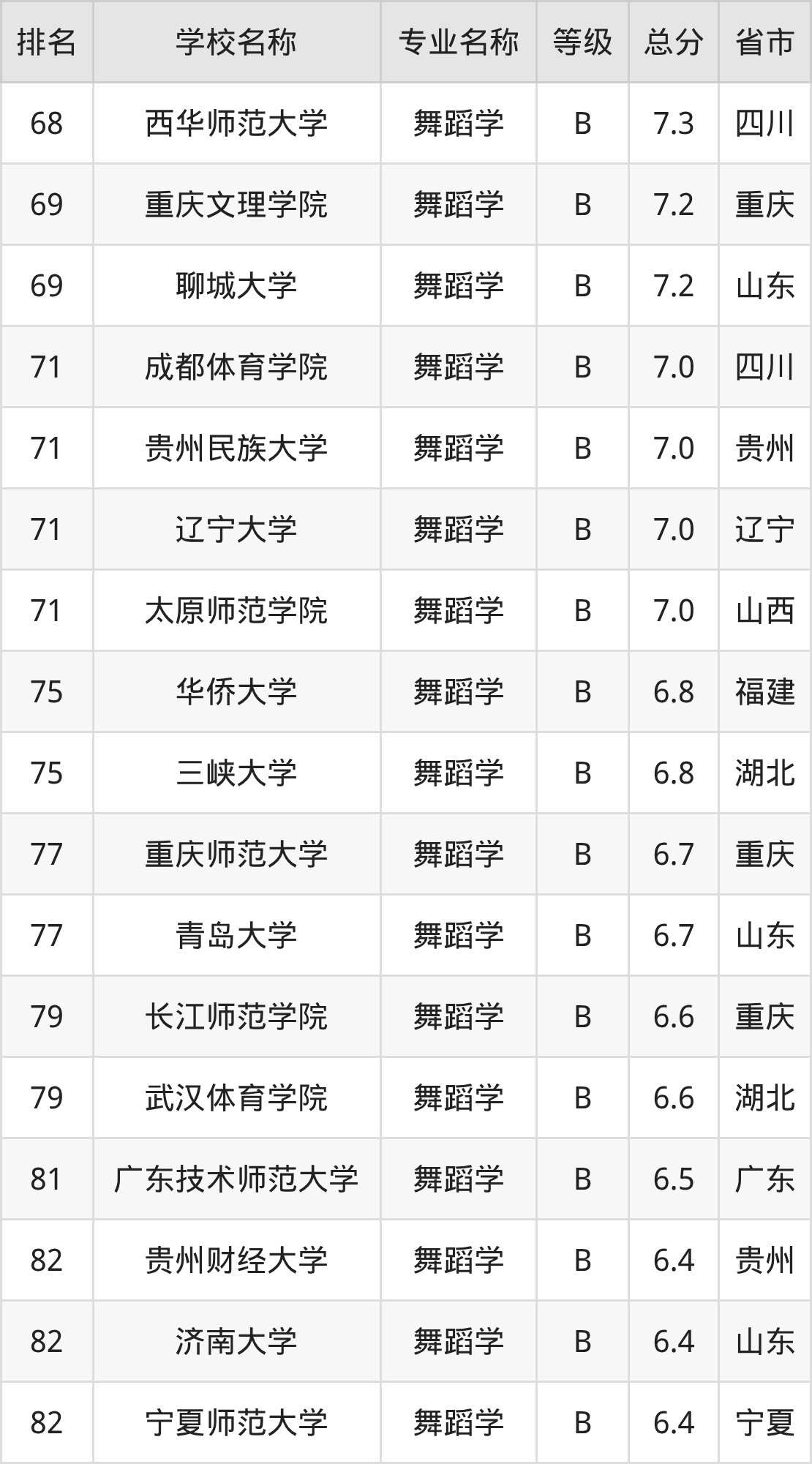 附舞蹈学专业全国110所院校排名榜单一览表!