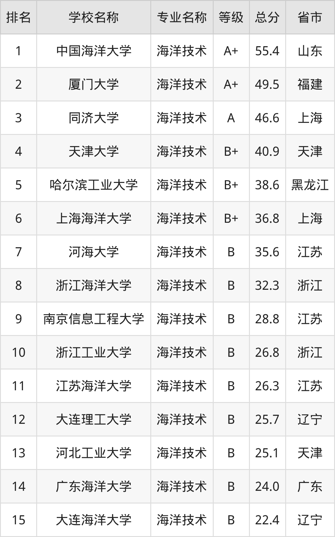 附海洋技术专业全国15所院校排名榜单一览表!