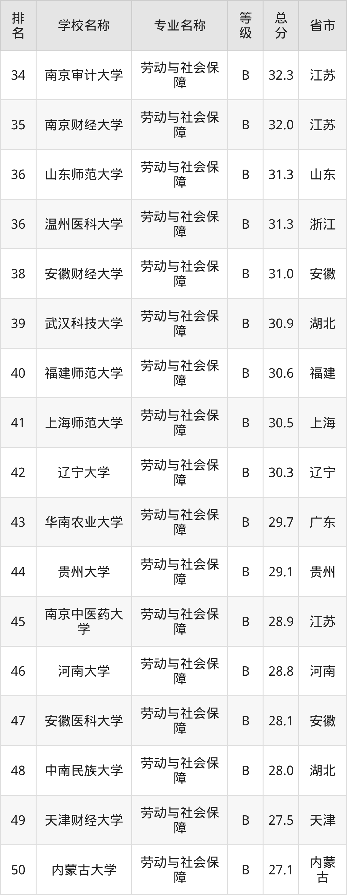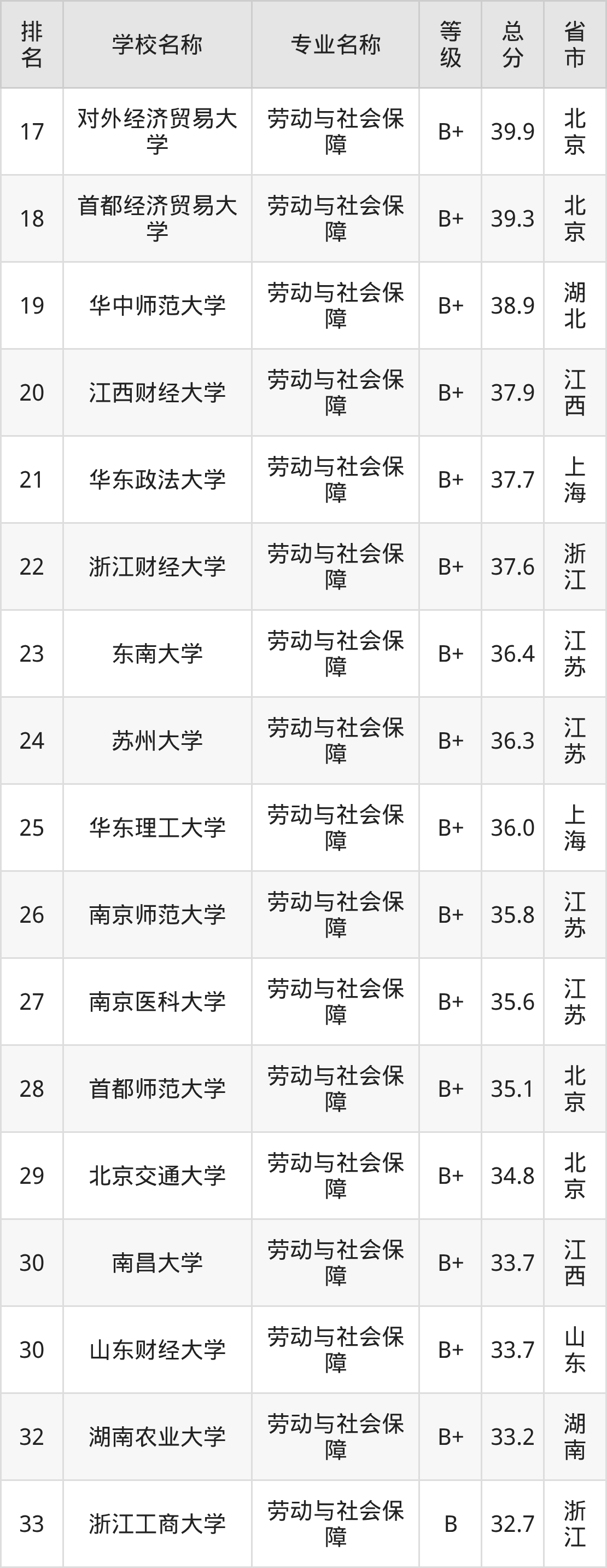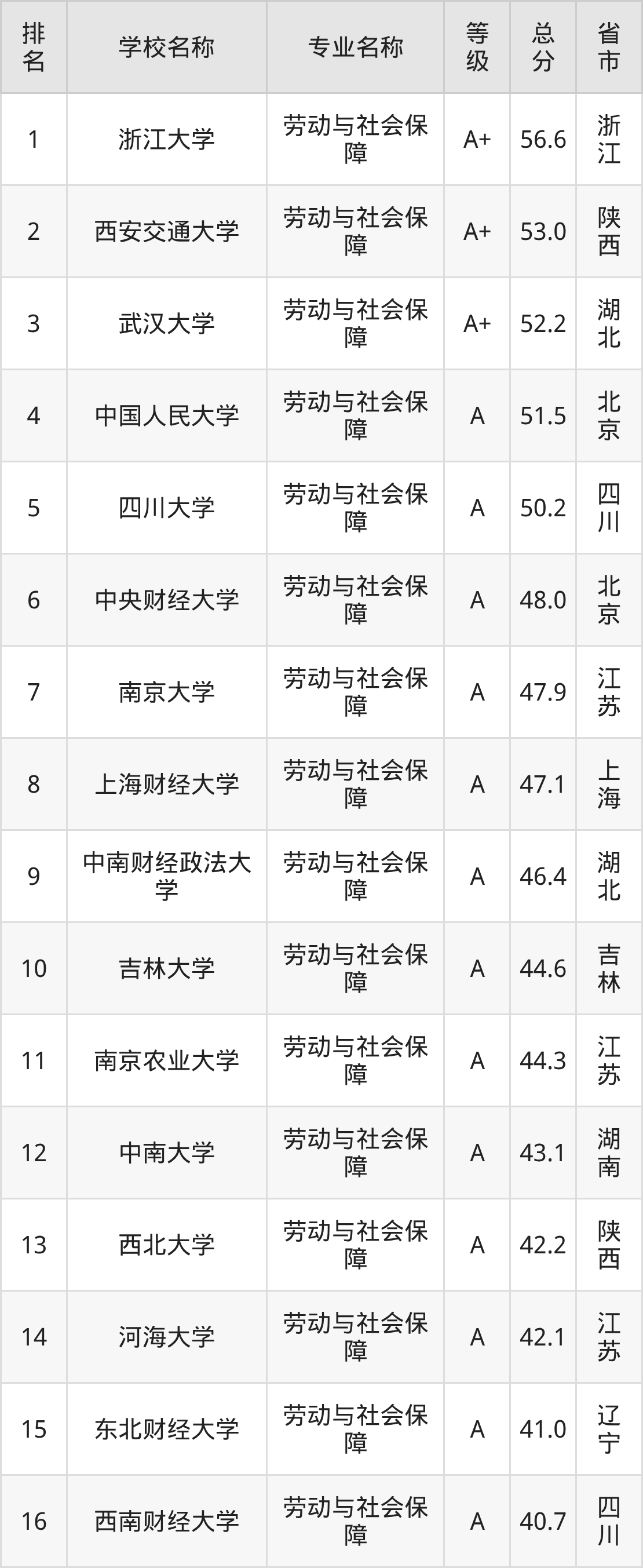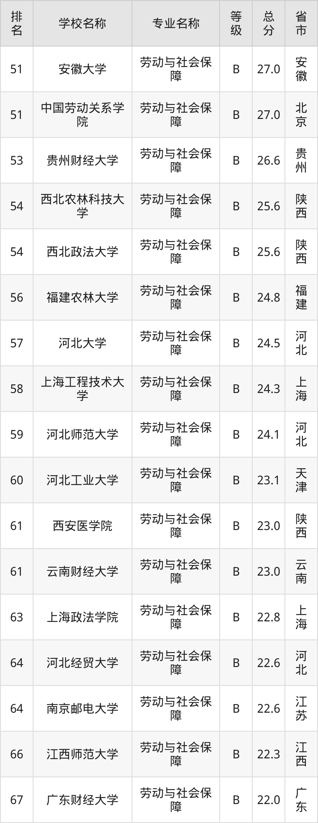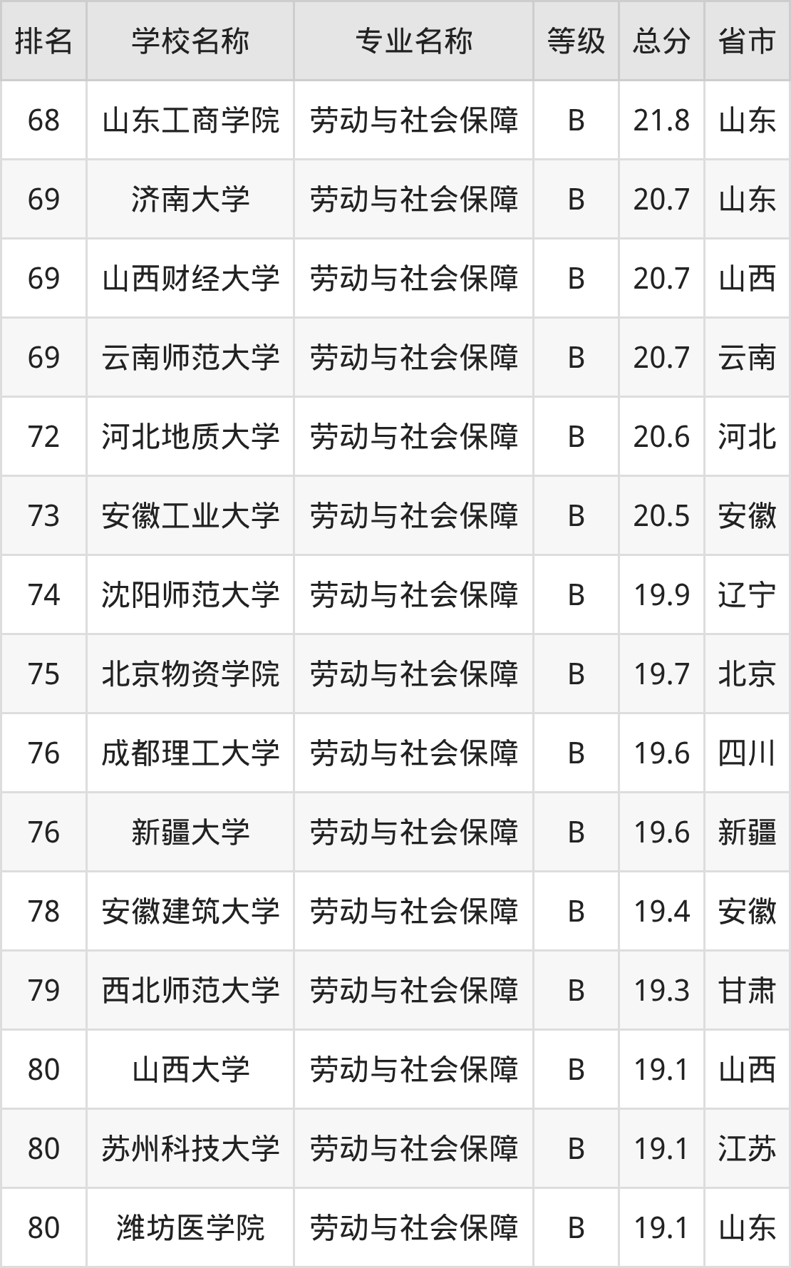 附劳动与社会保障专业全国82所院校排名榜单一览表!