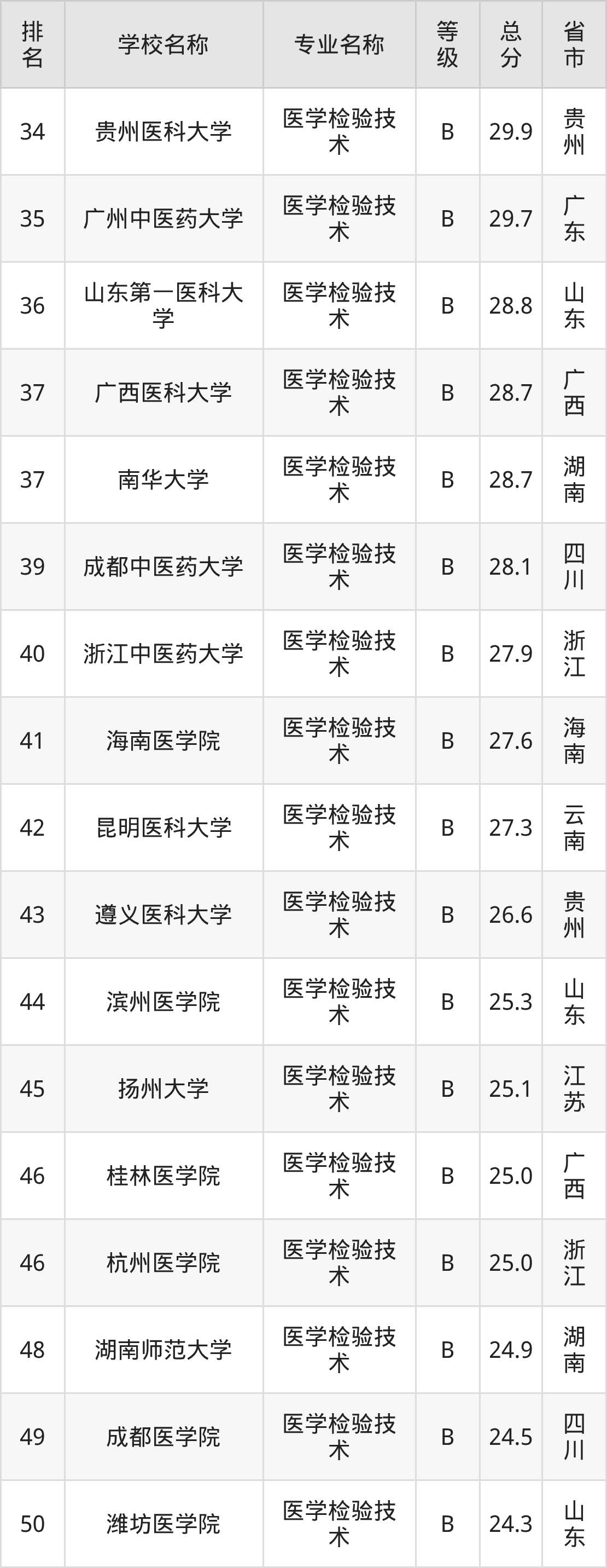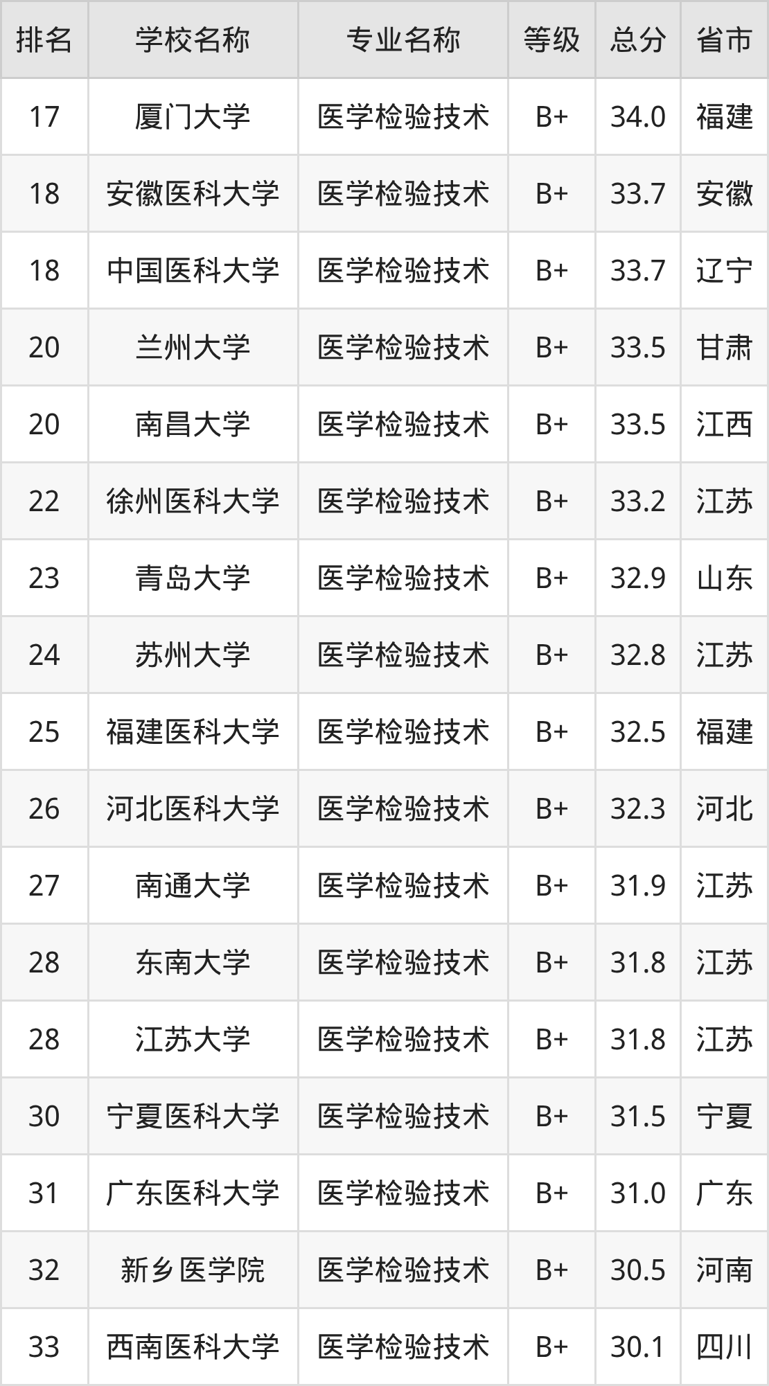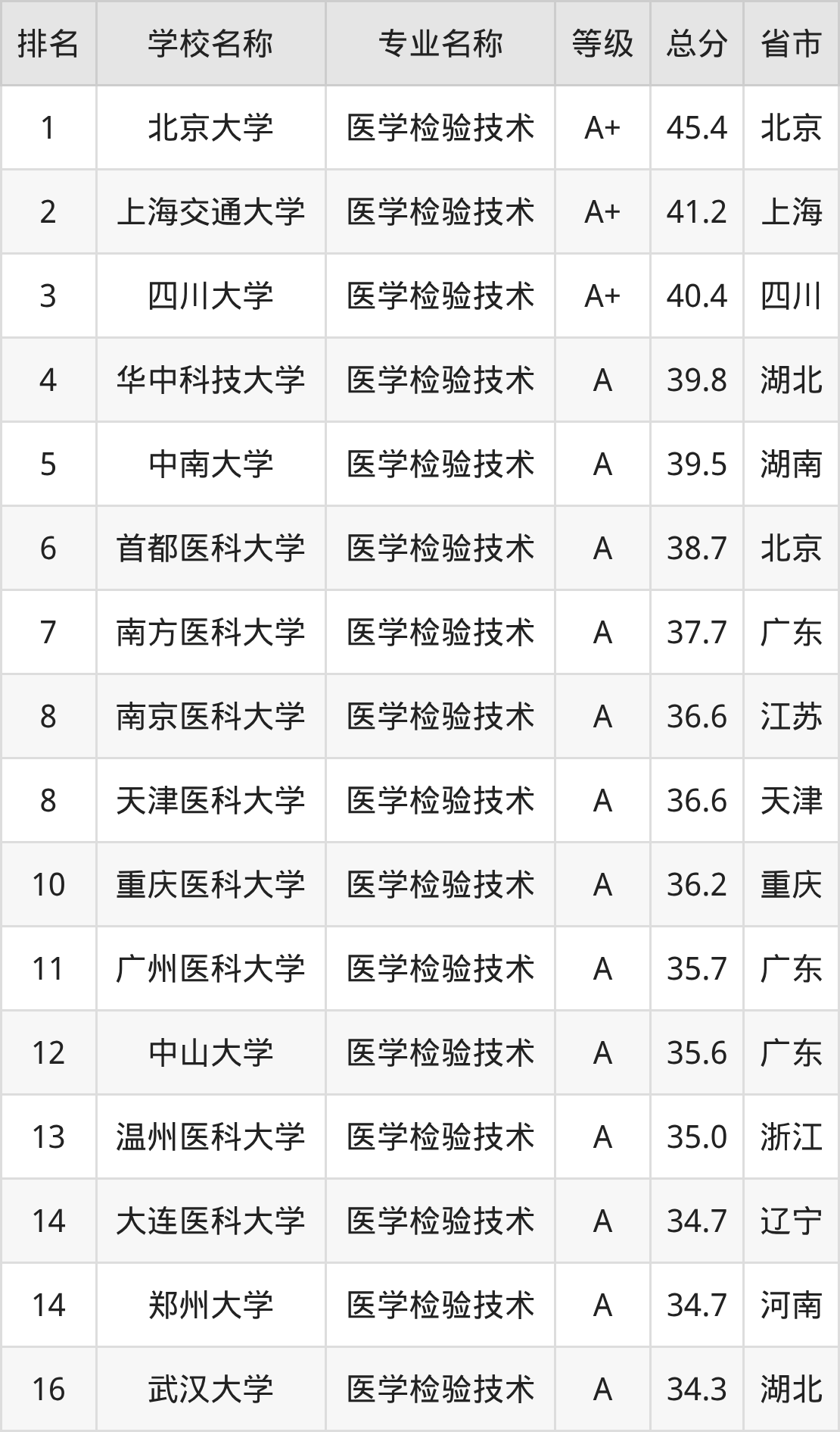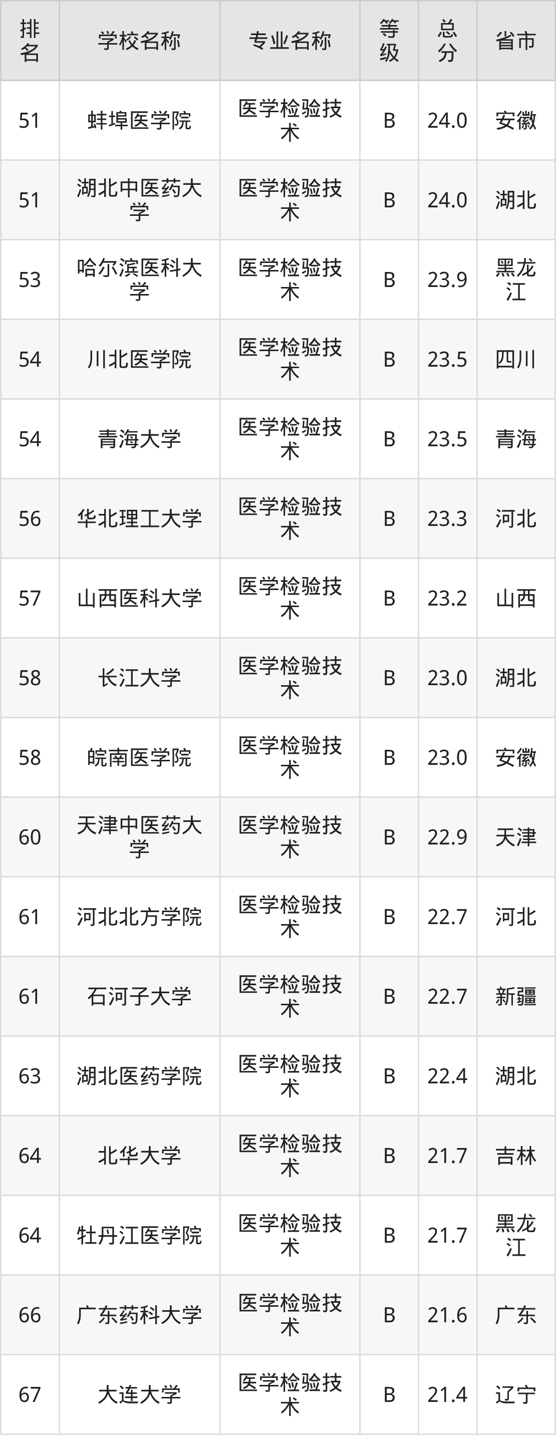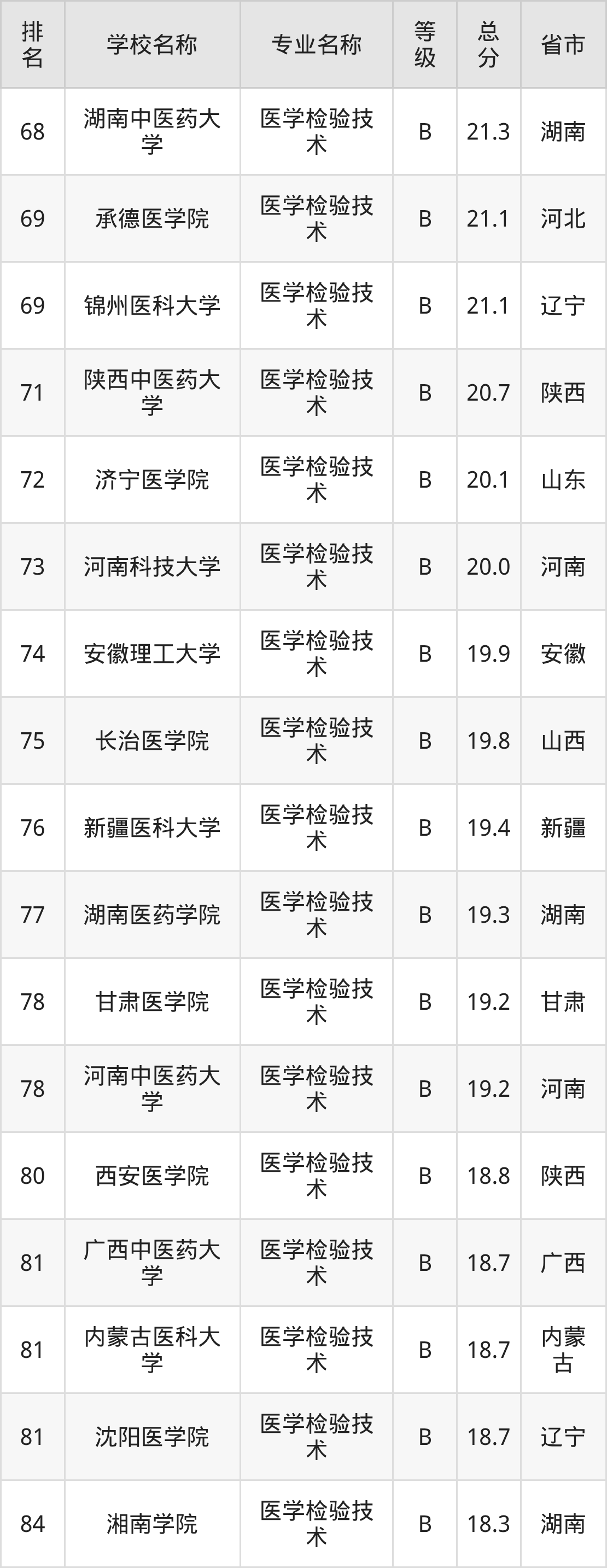 附医学检验技术专业全国84所院校排名榜单一览表!