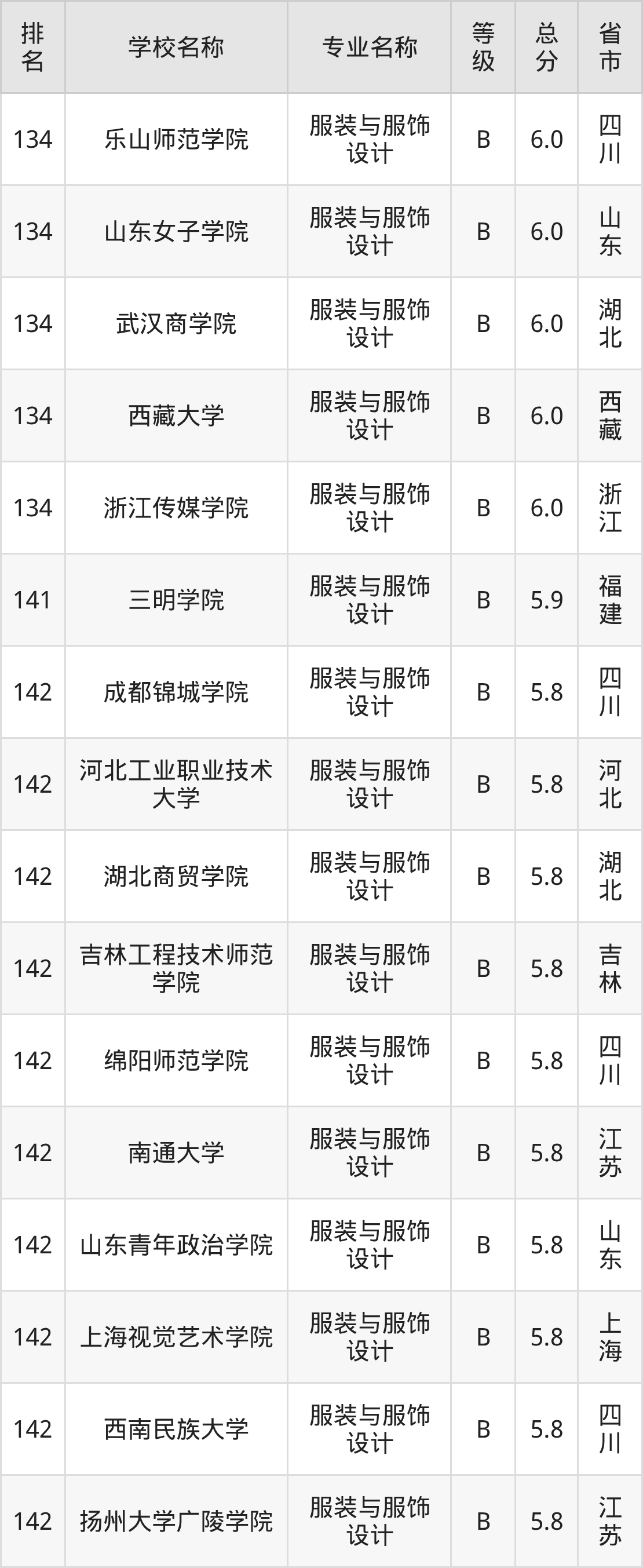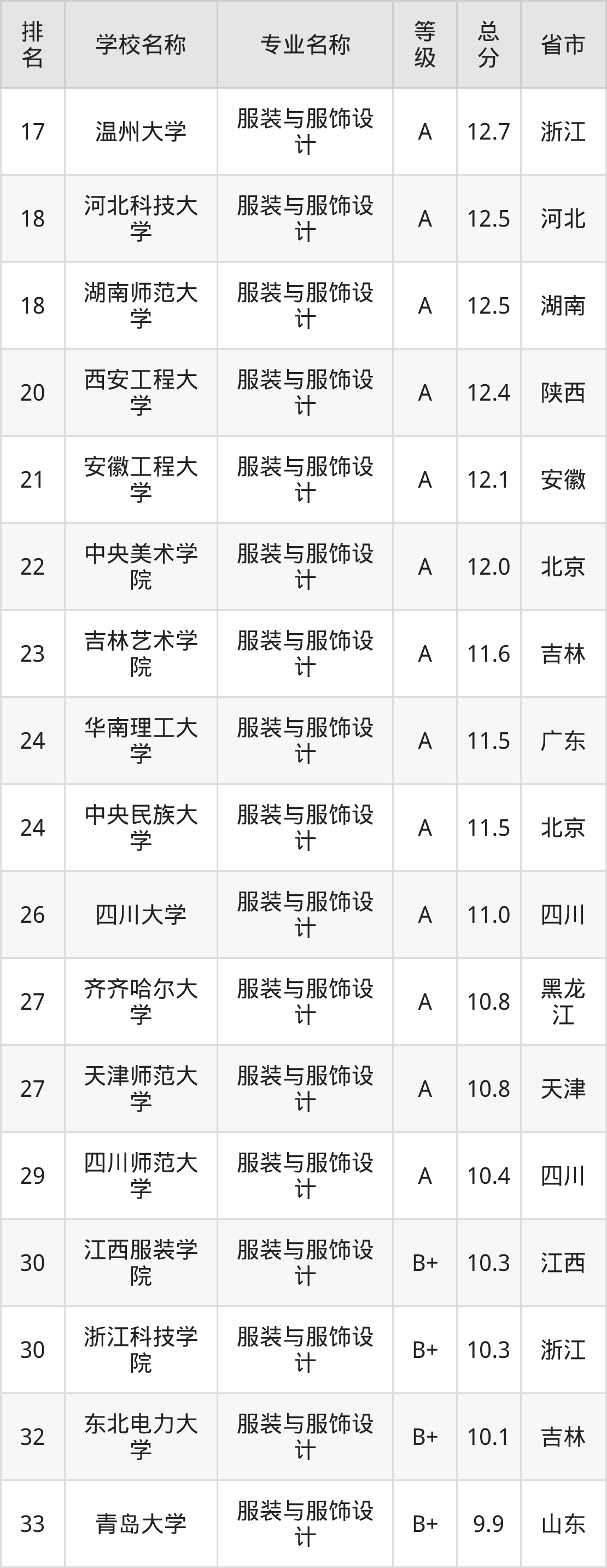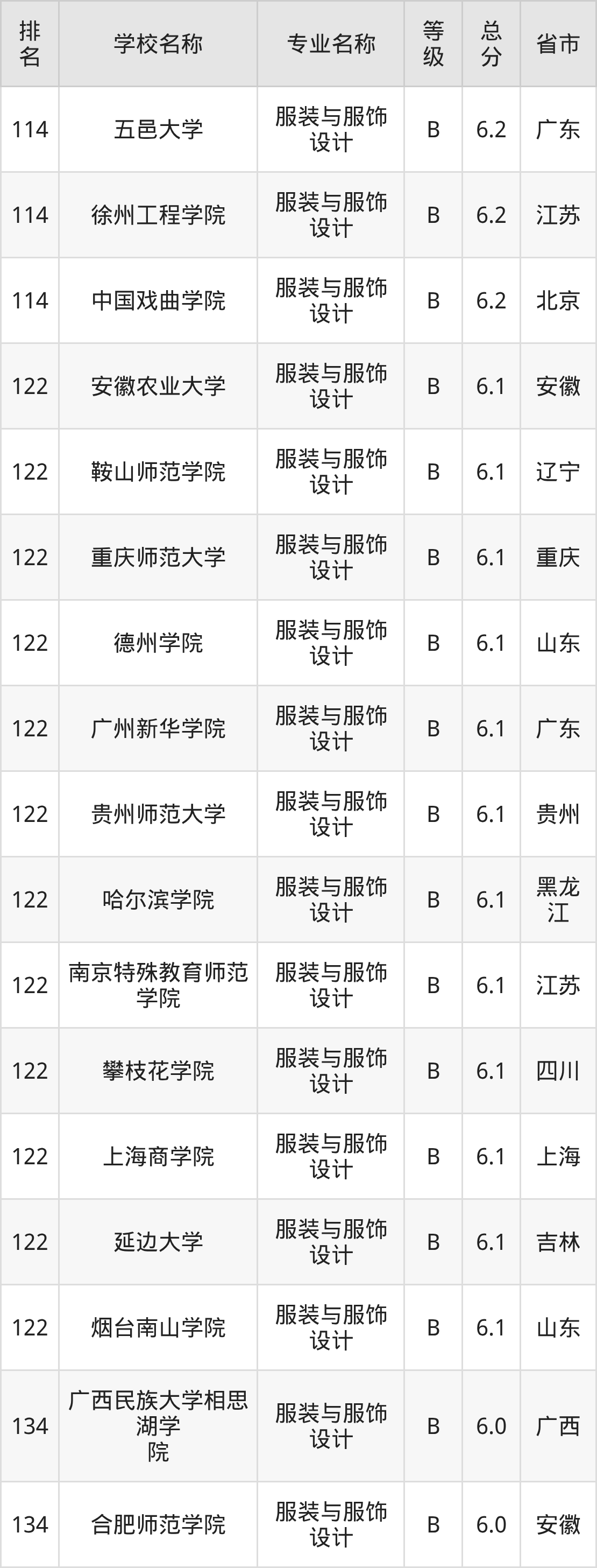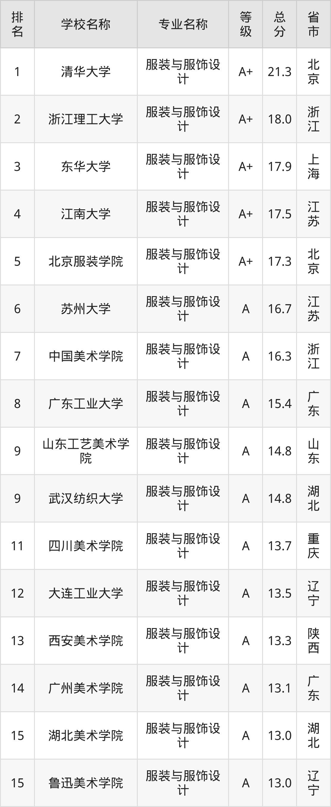 附服装与服饰设计专业全国151所院校排名榜单一览表!