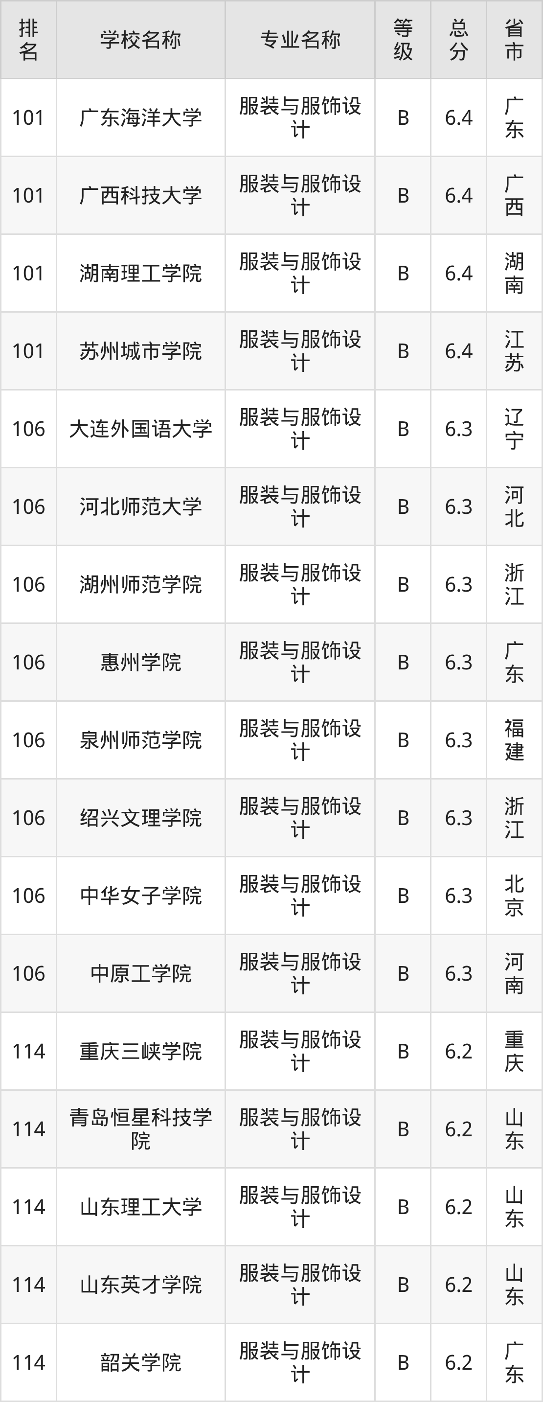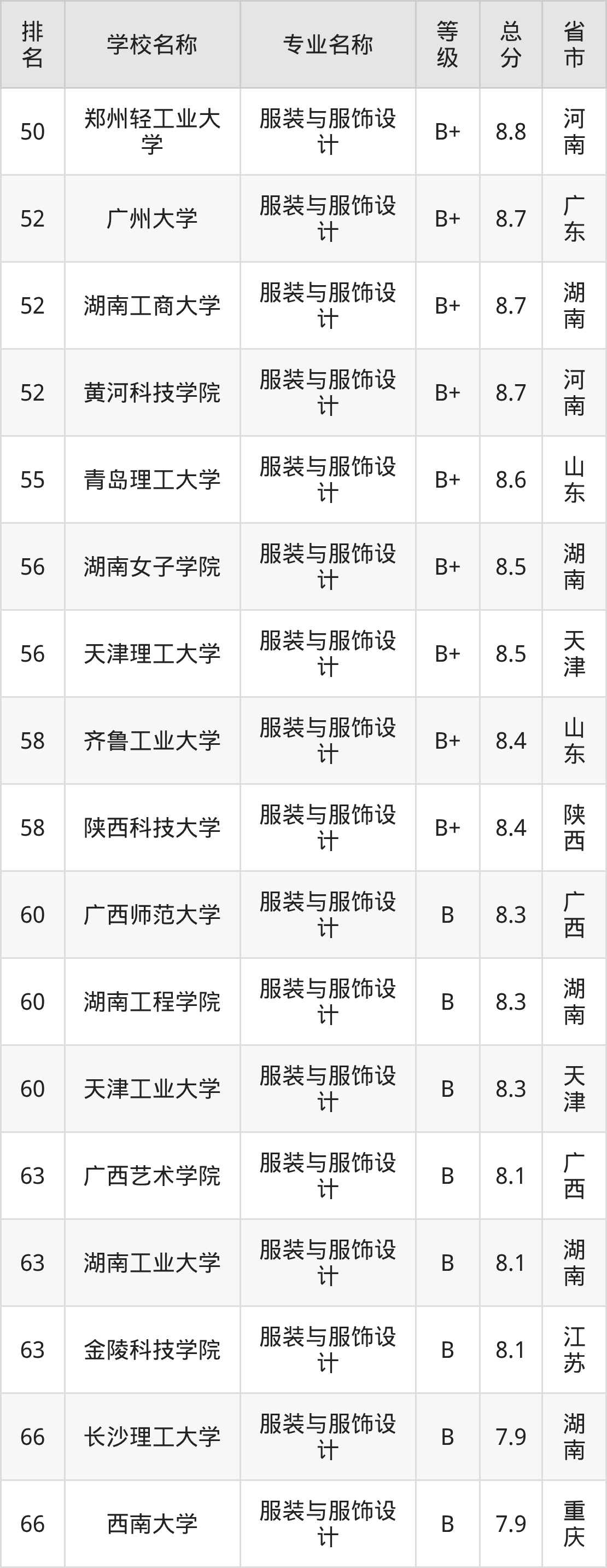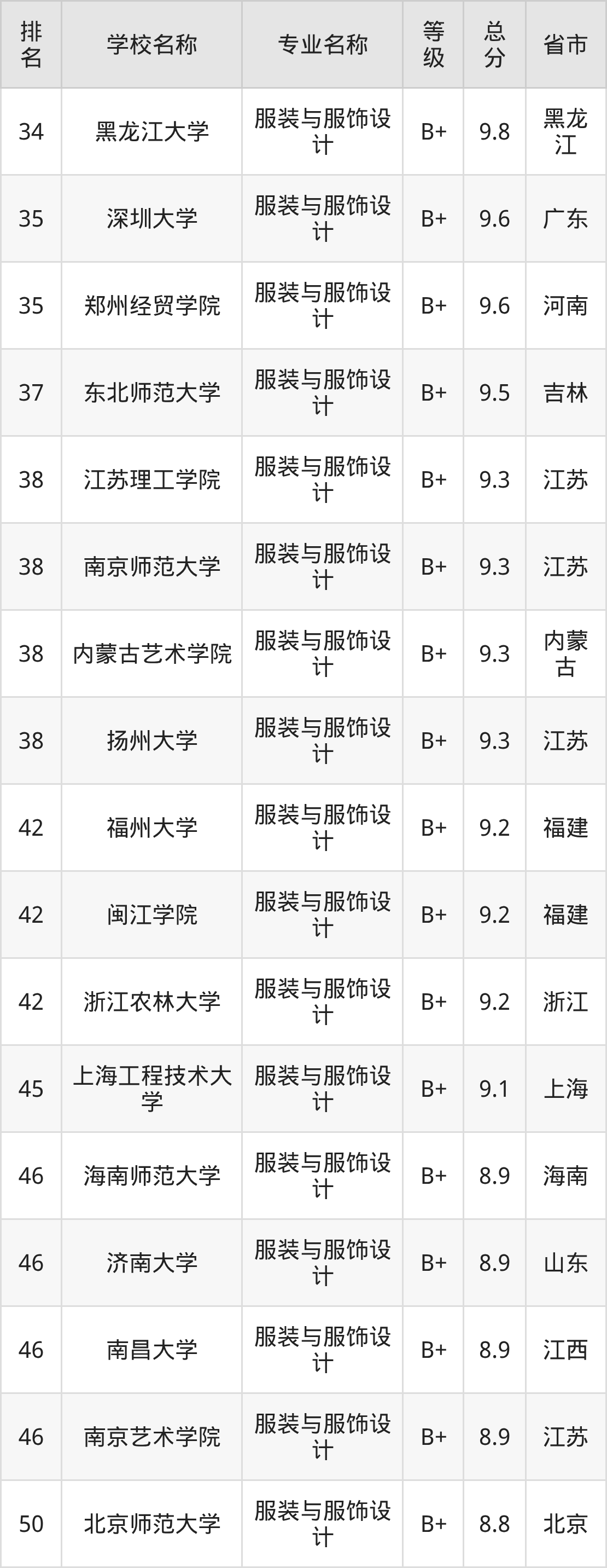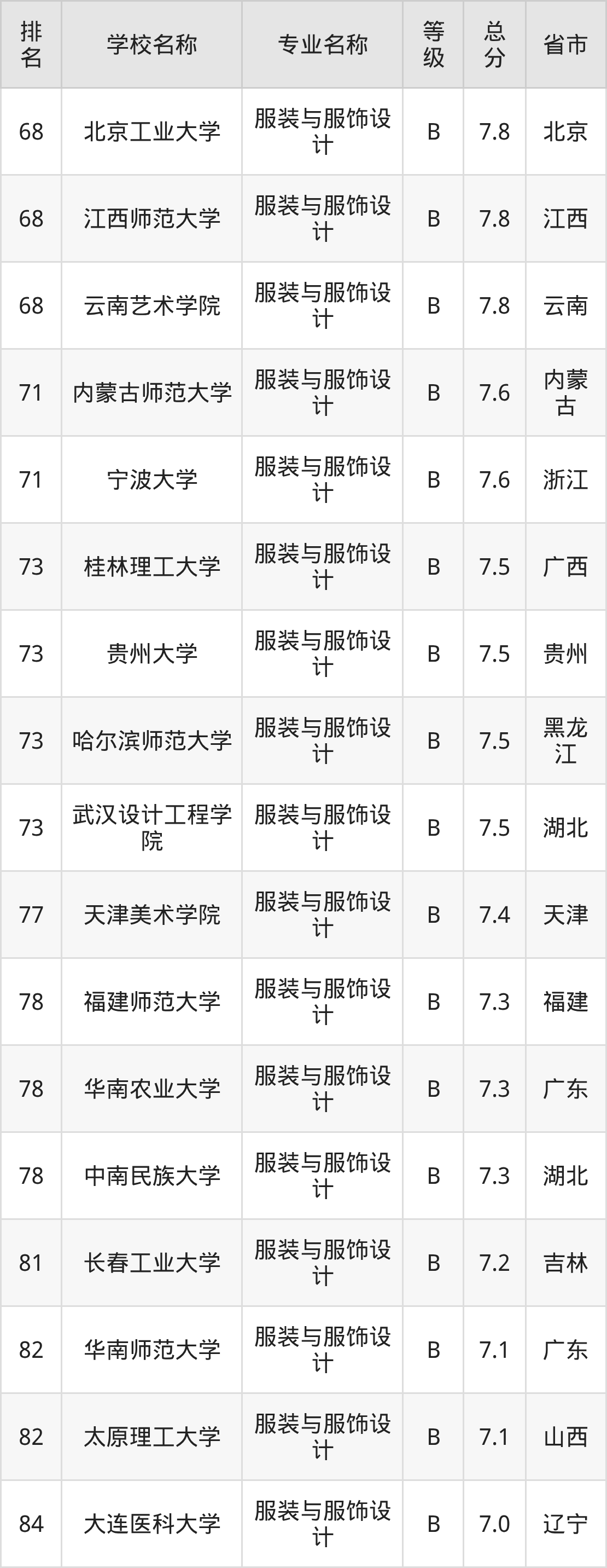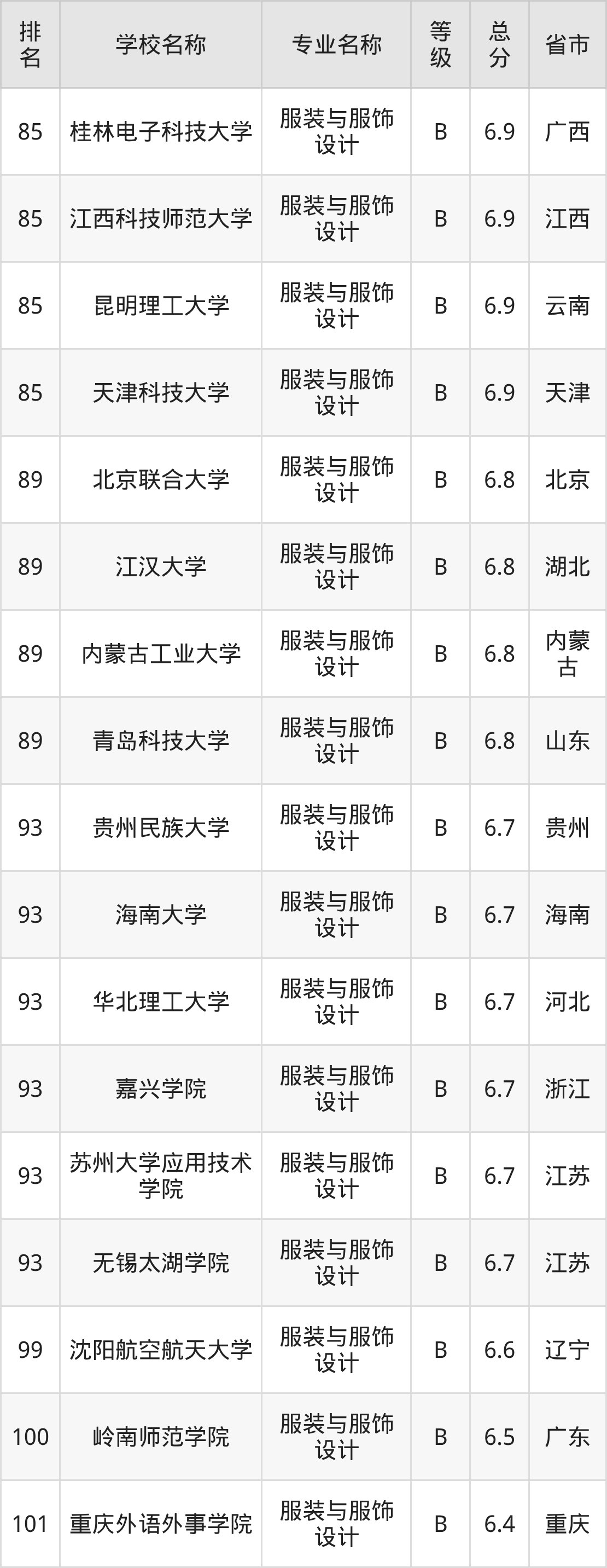 附服装与服饰设计专业全国151所院校排名榜单一览表!