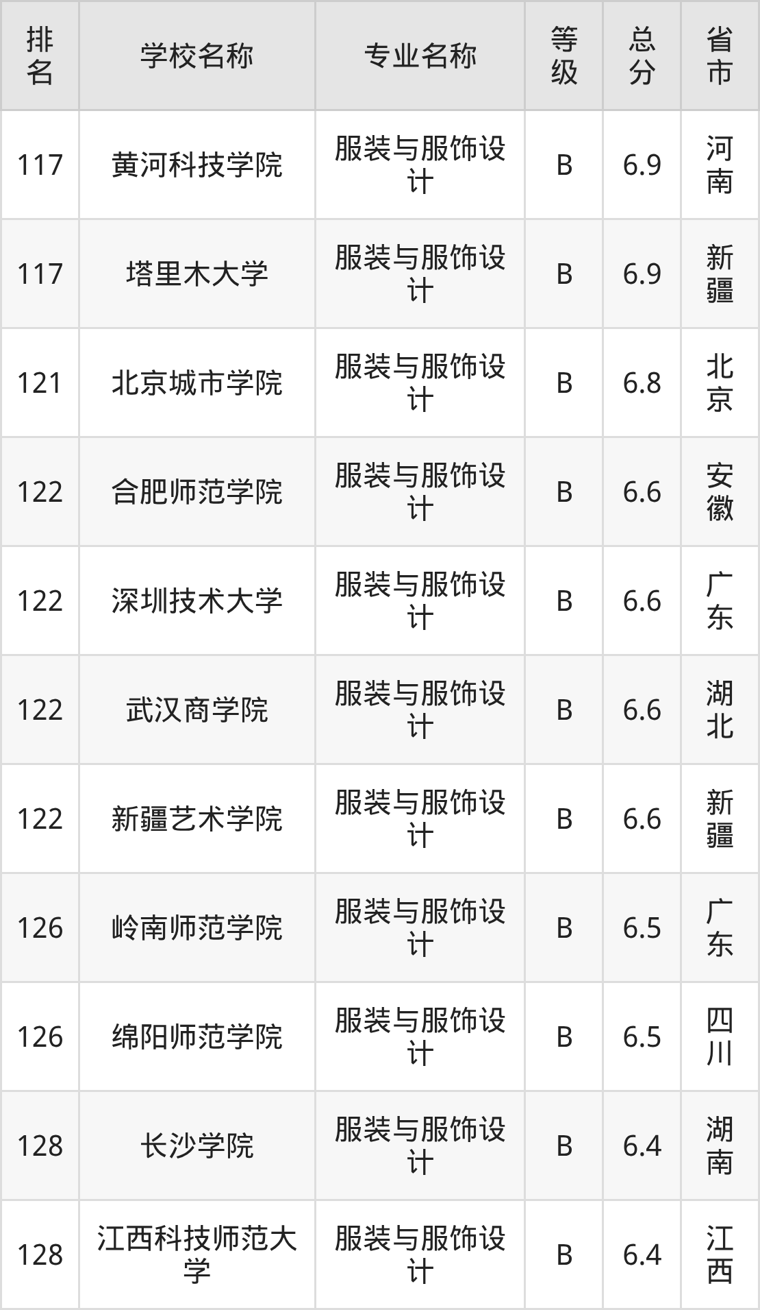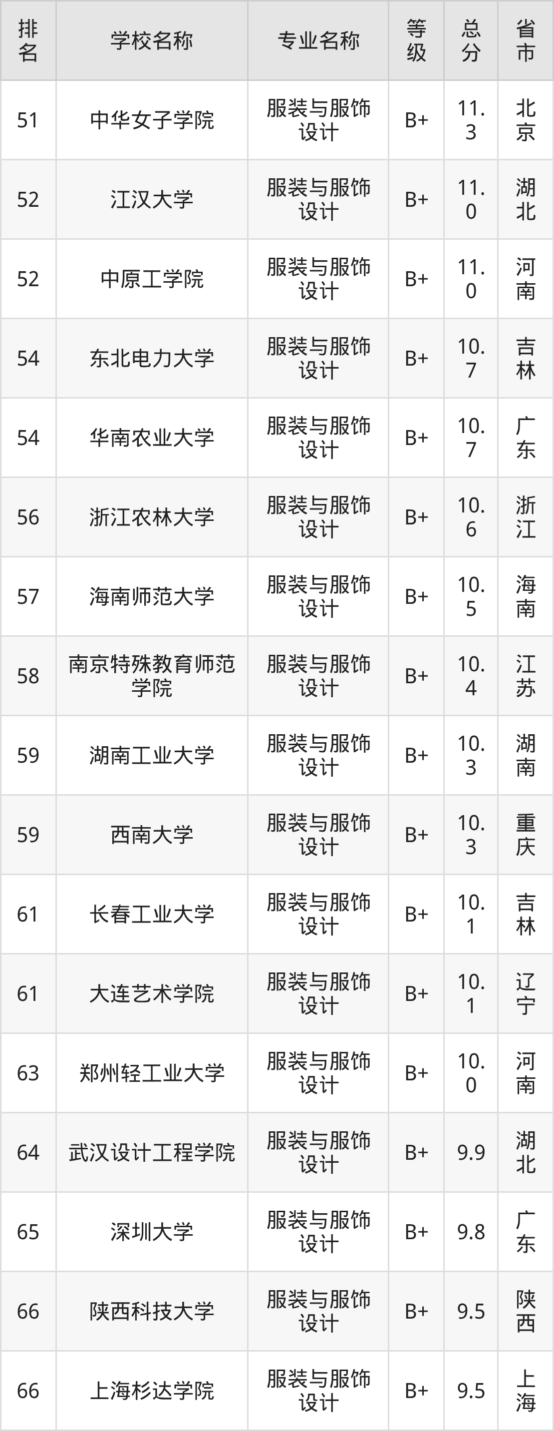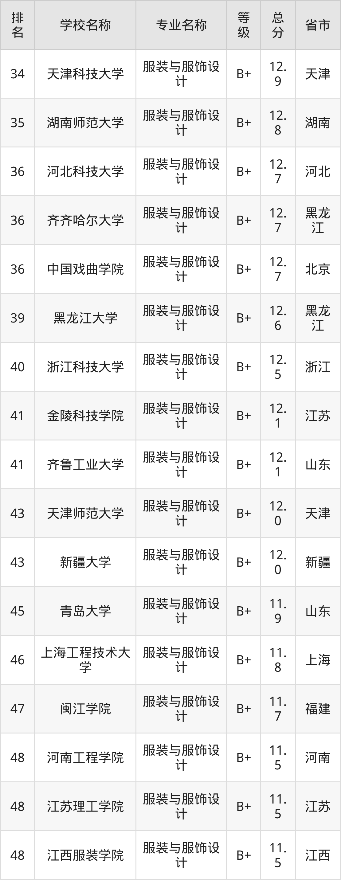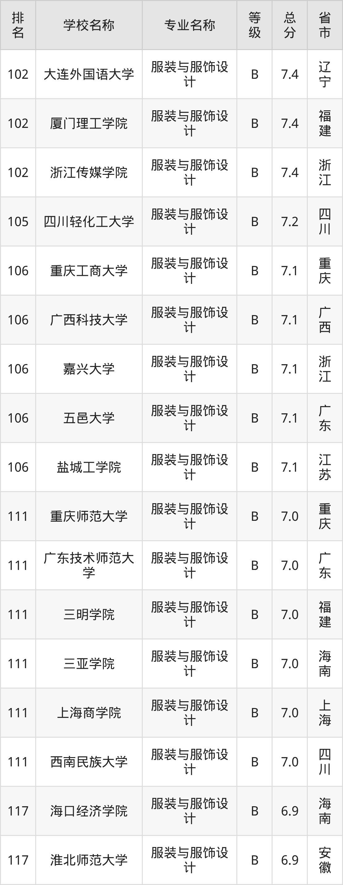 附服装与服饰设计专业全国129所院校排名榜单一览表!