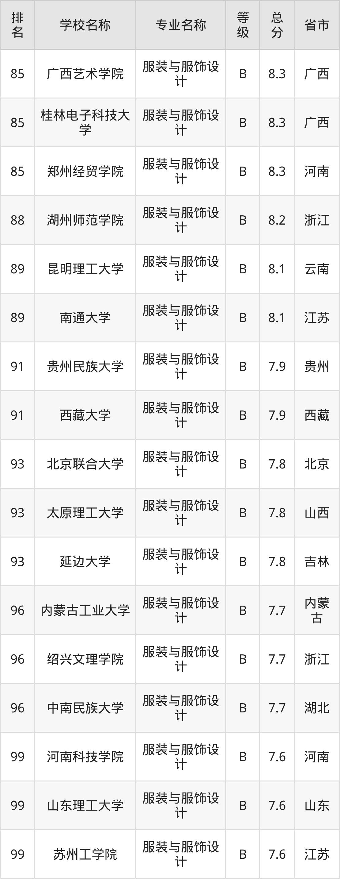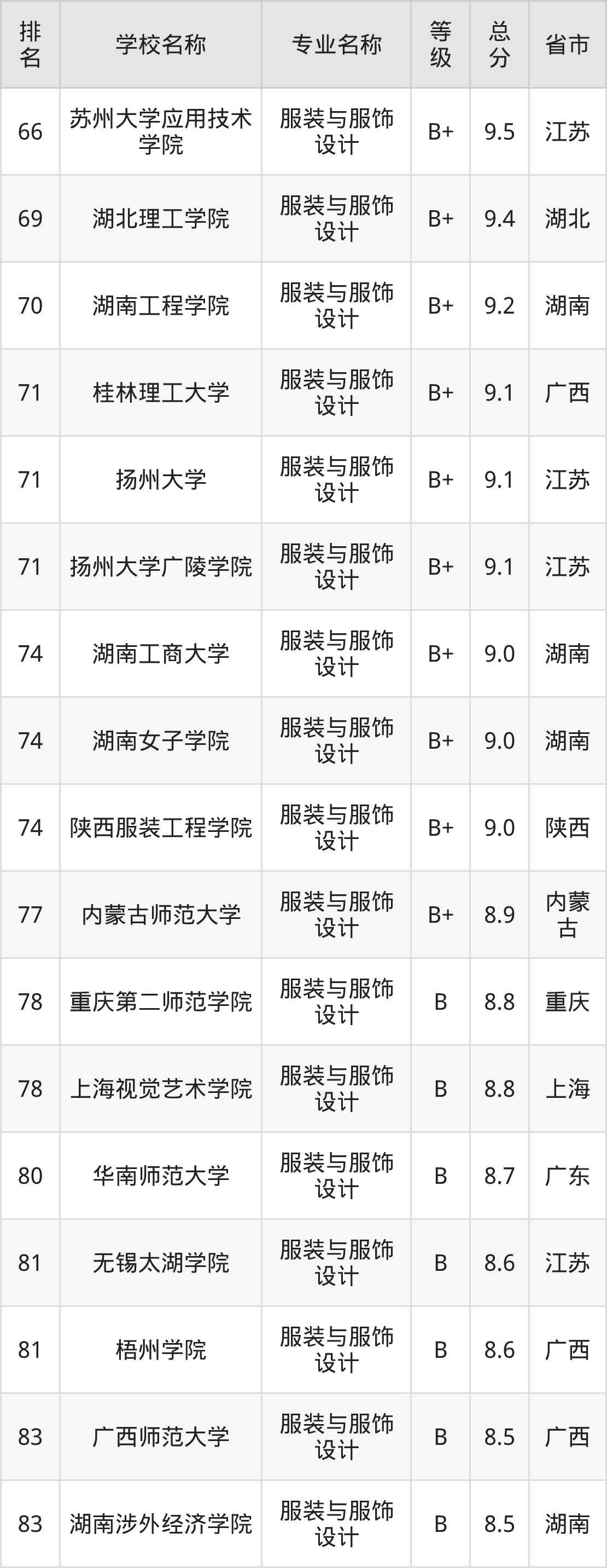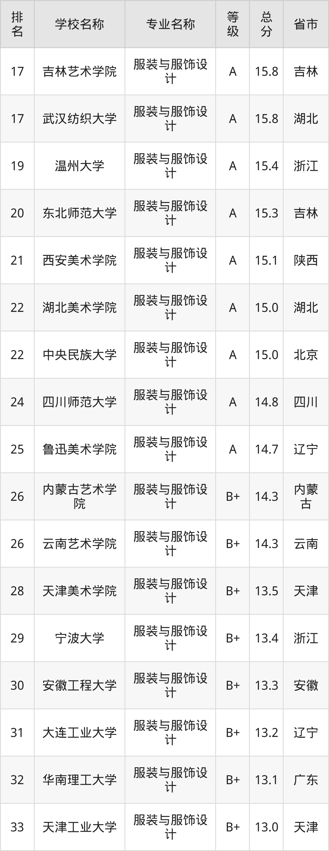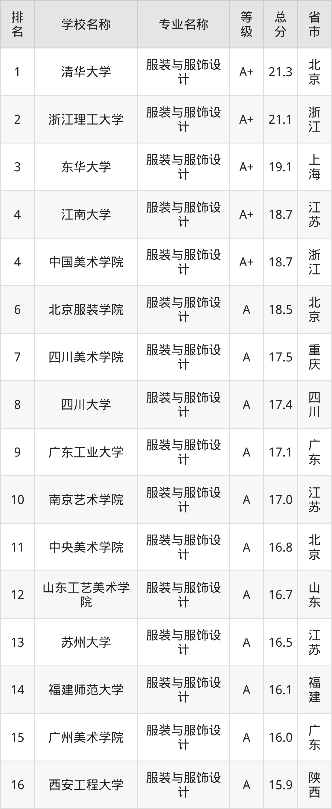 附服装与服饰设计专业全国129所院校排名榜单一览表!