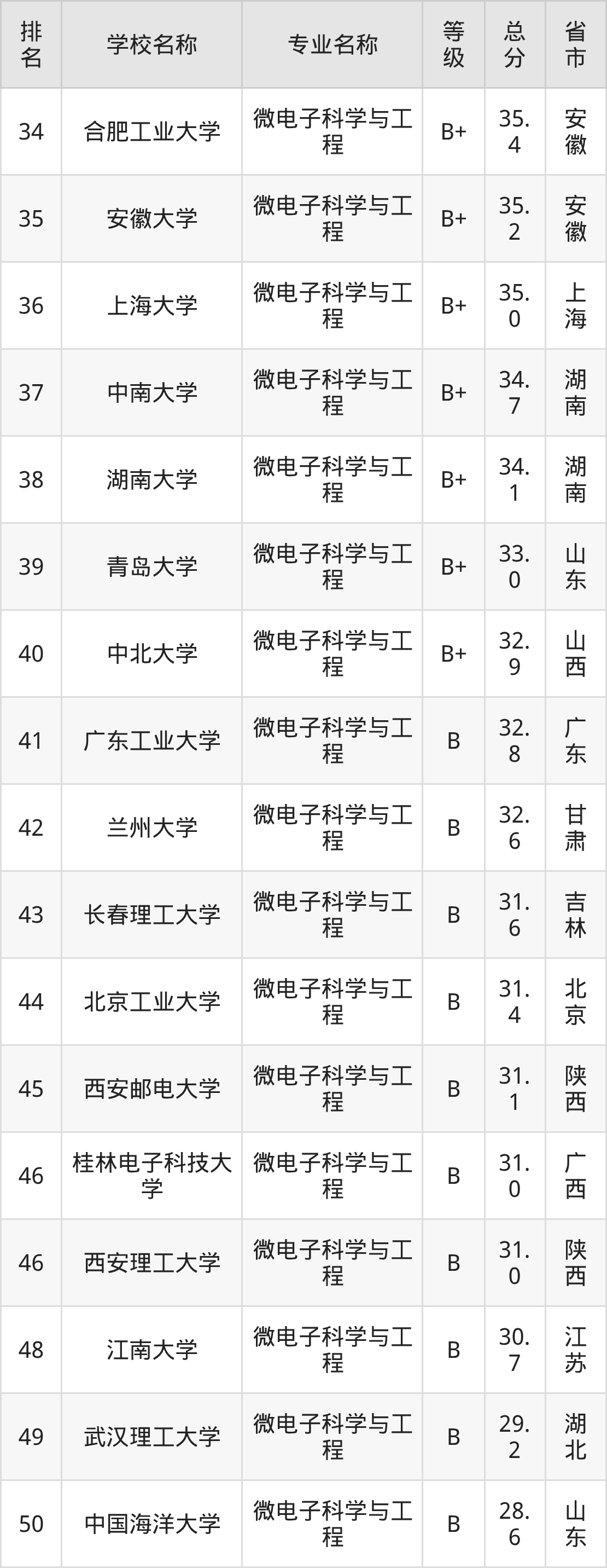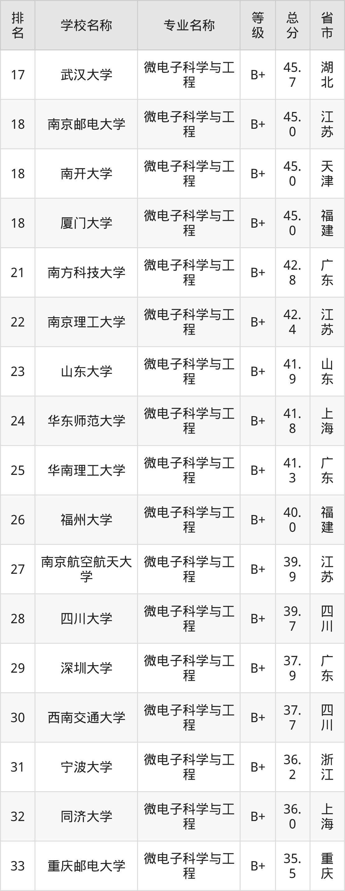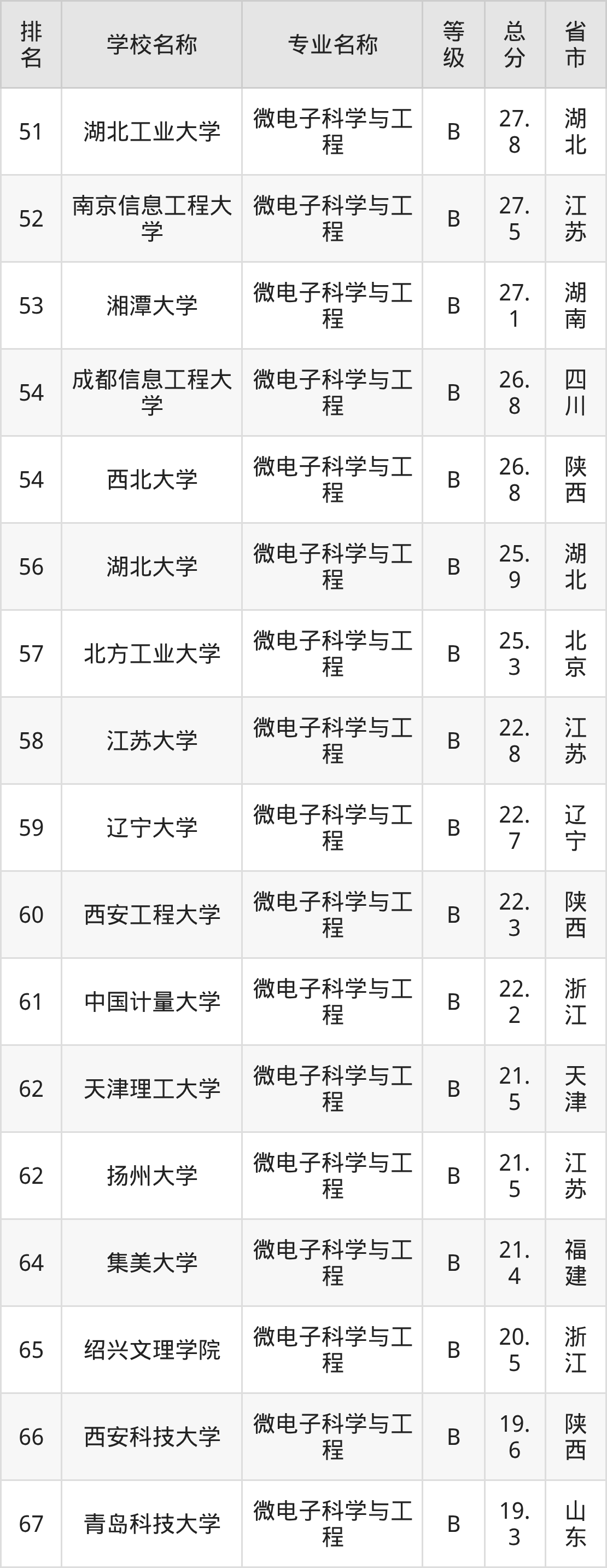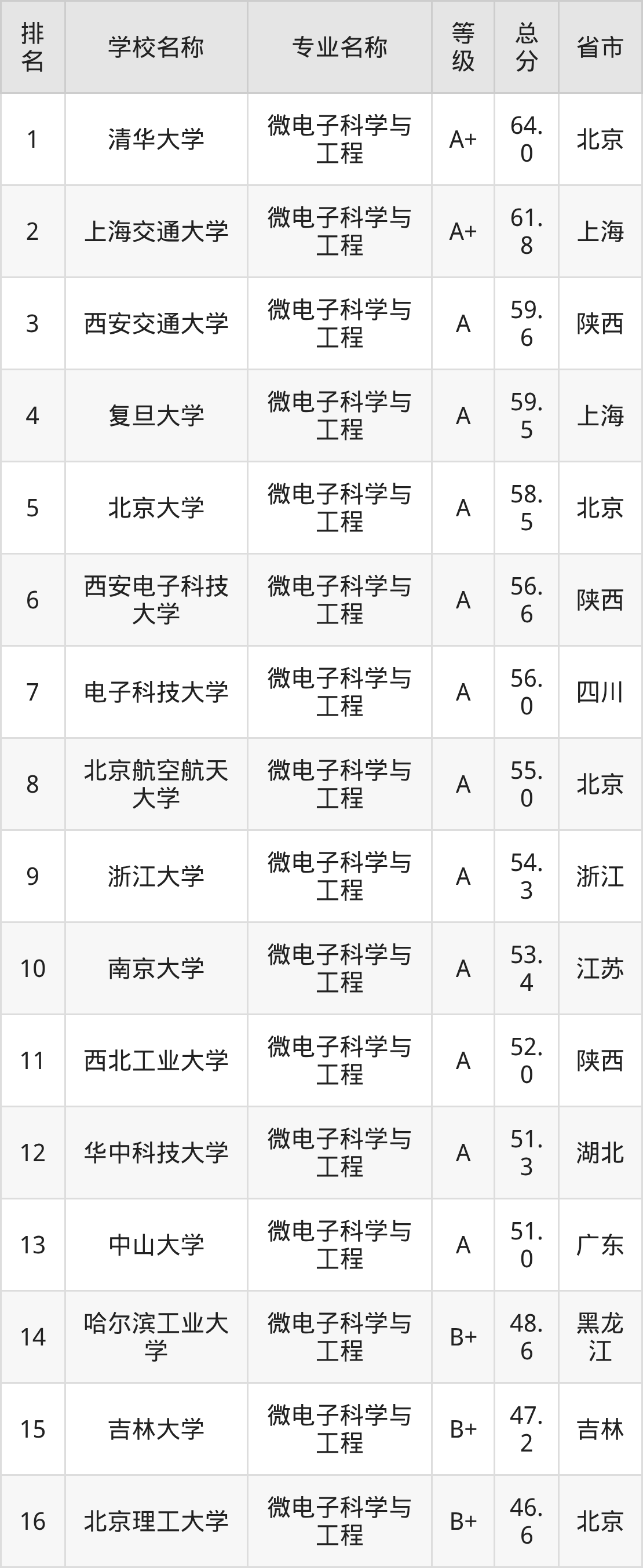 附微电子科学与工程专业全国68所院校排名榜单一览表!
