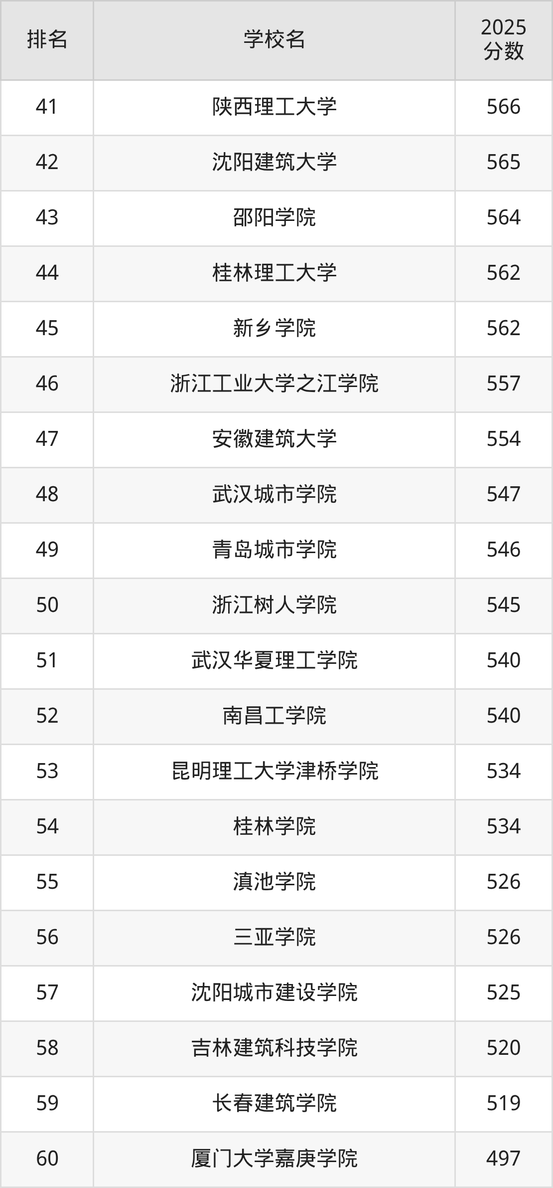 以下为全国城乡规划专业在浙江省分数线排名前60的大学。
