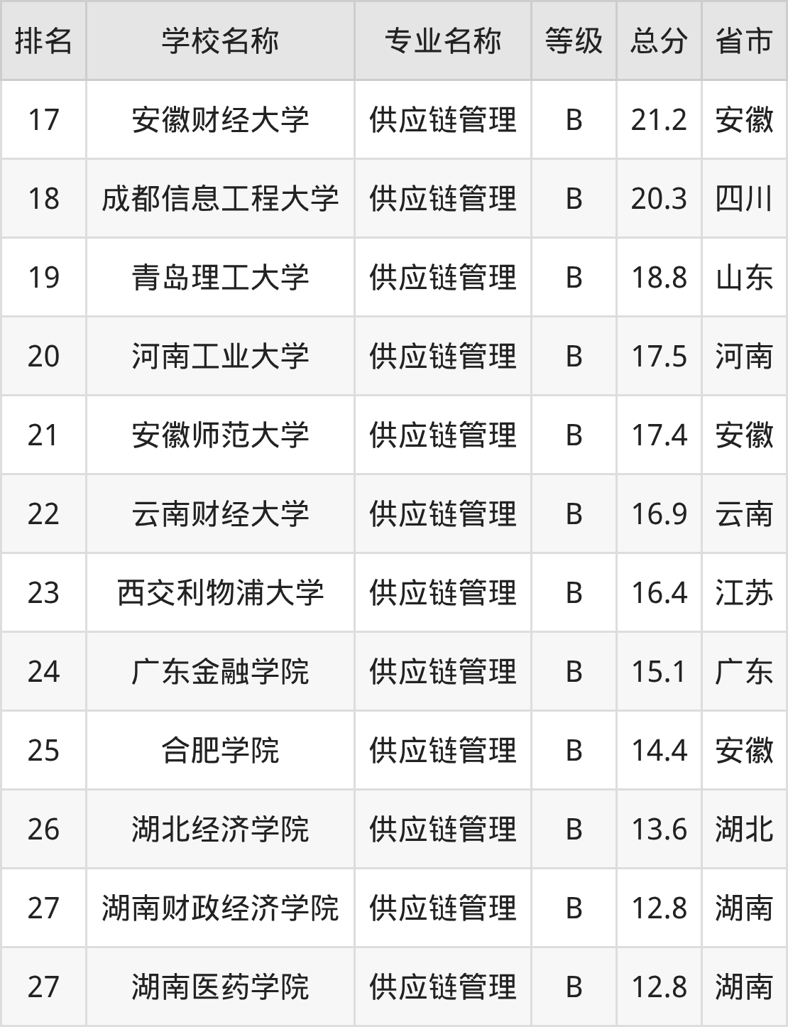根据软科榜单可知,供应链管理专业全国排名前十的大学分别是: