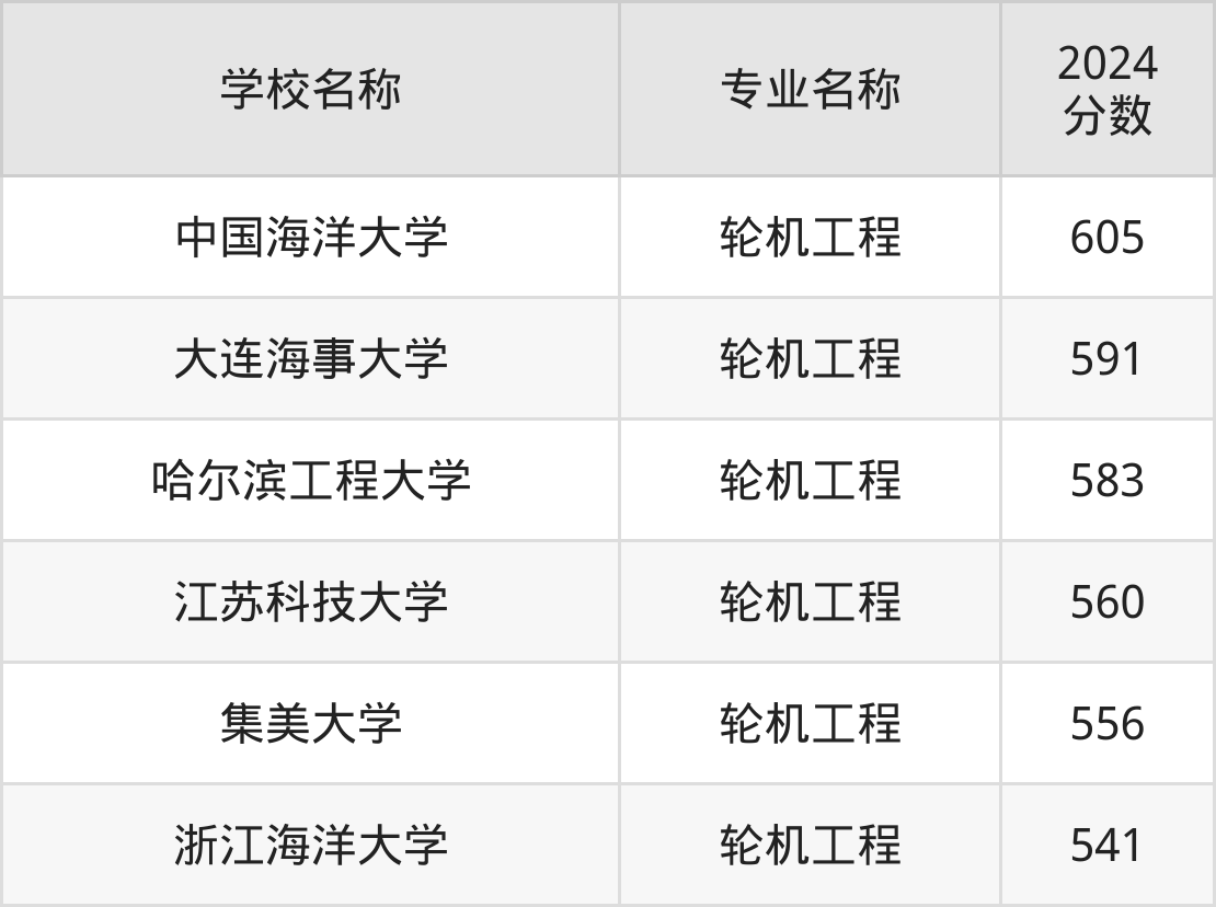 下面是2024年全国本科轮机工程专业大学录取分数线。