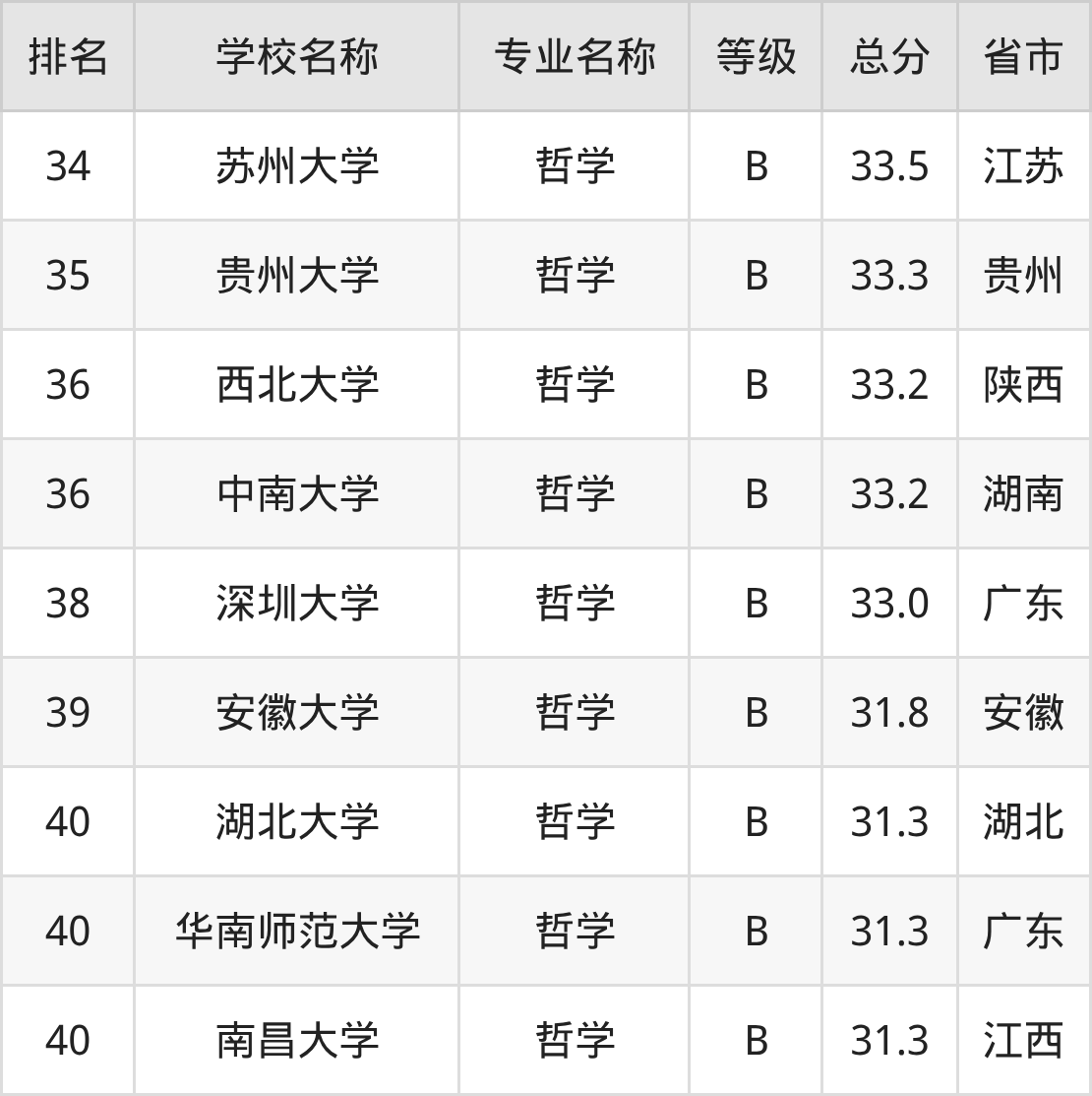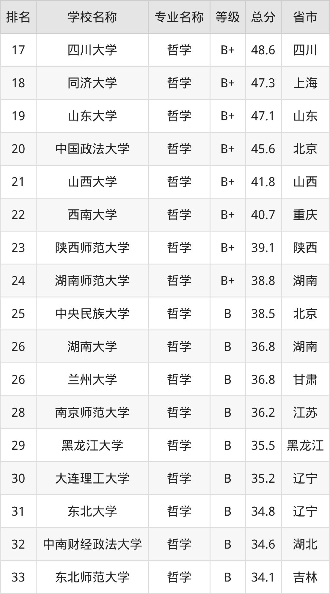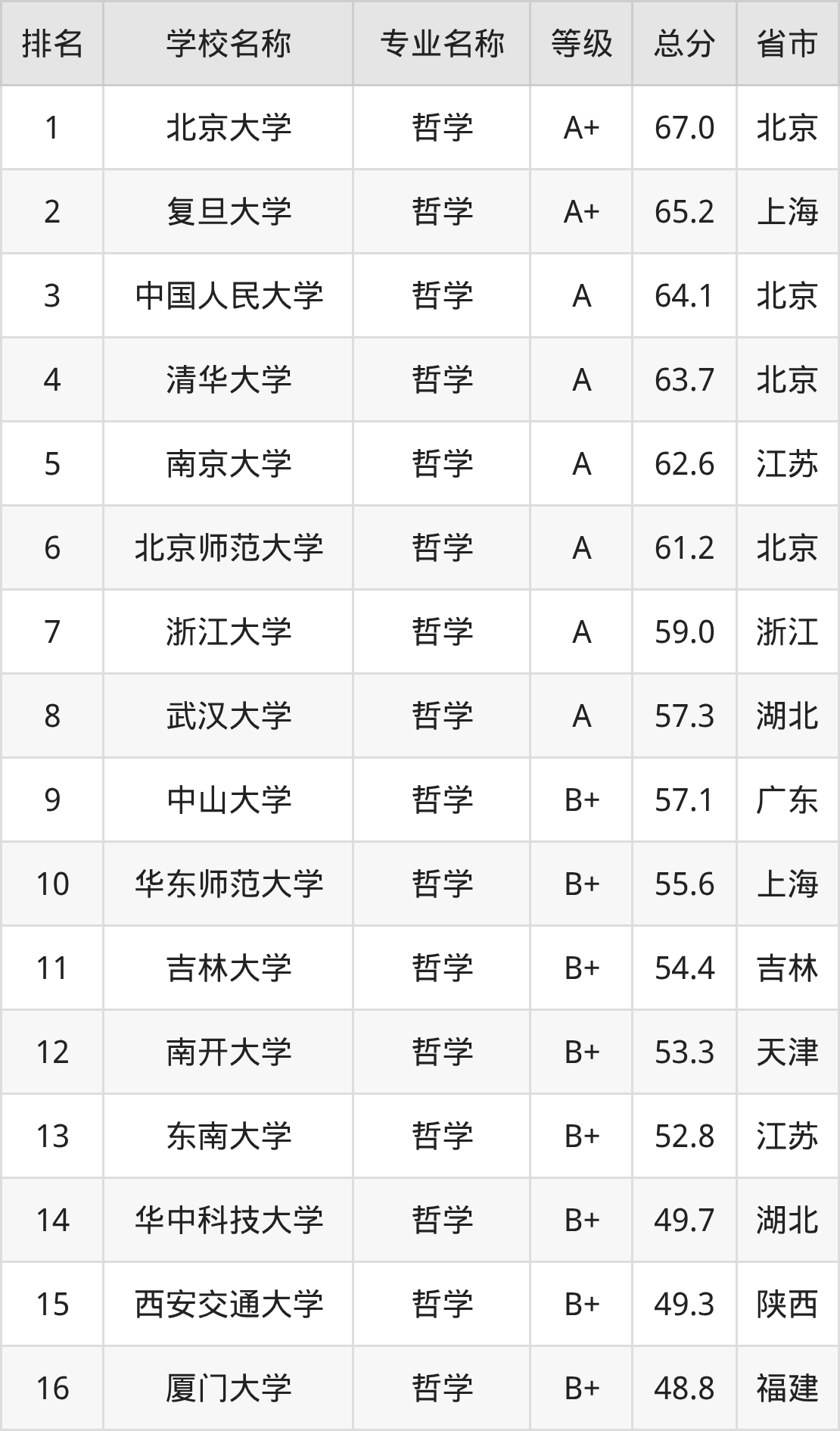 附哲学专业全国42所院校排名榜单一览表!