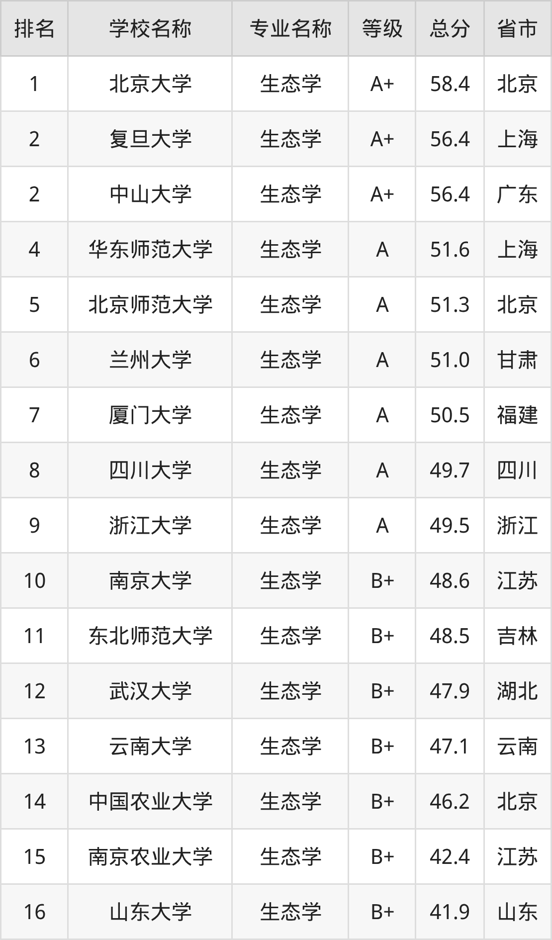 如果你的高考成绩拔尖,可重点考虑以上10所开设了生态学专业的大学。