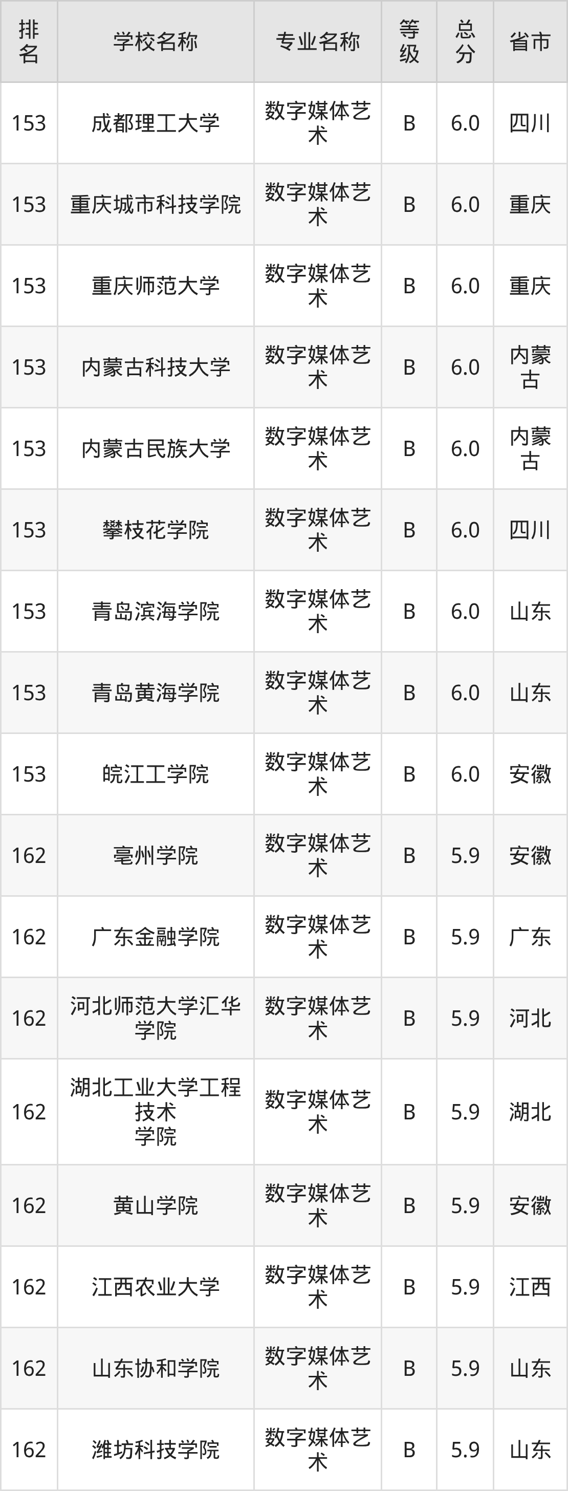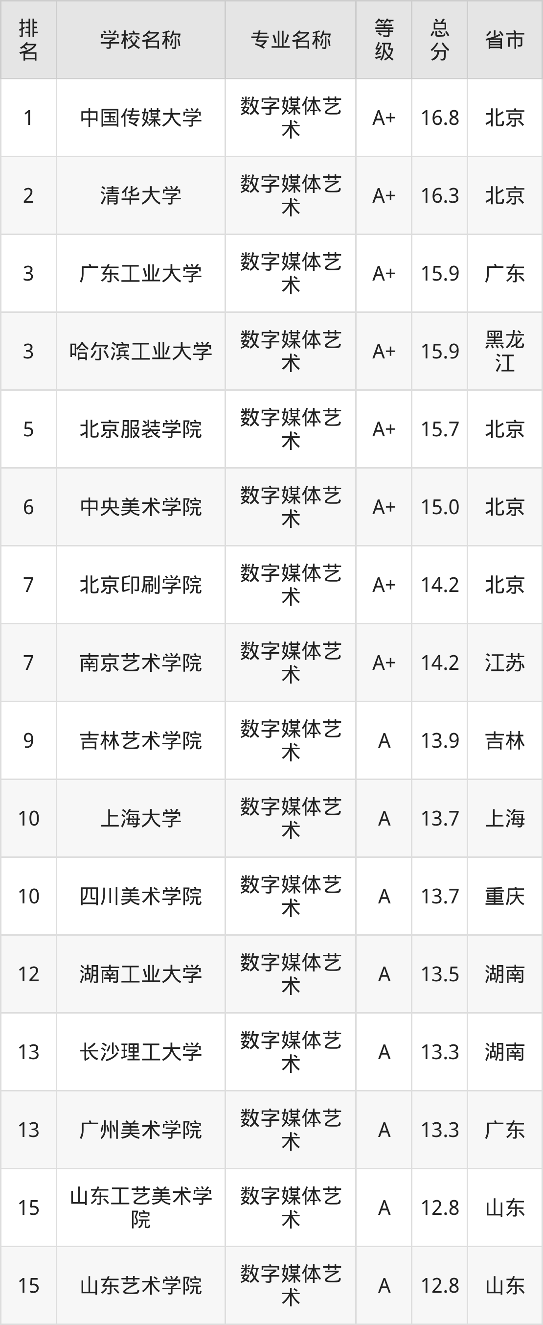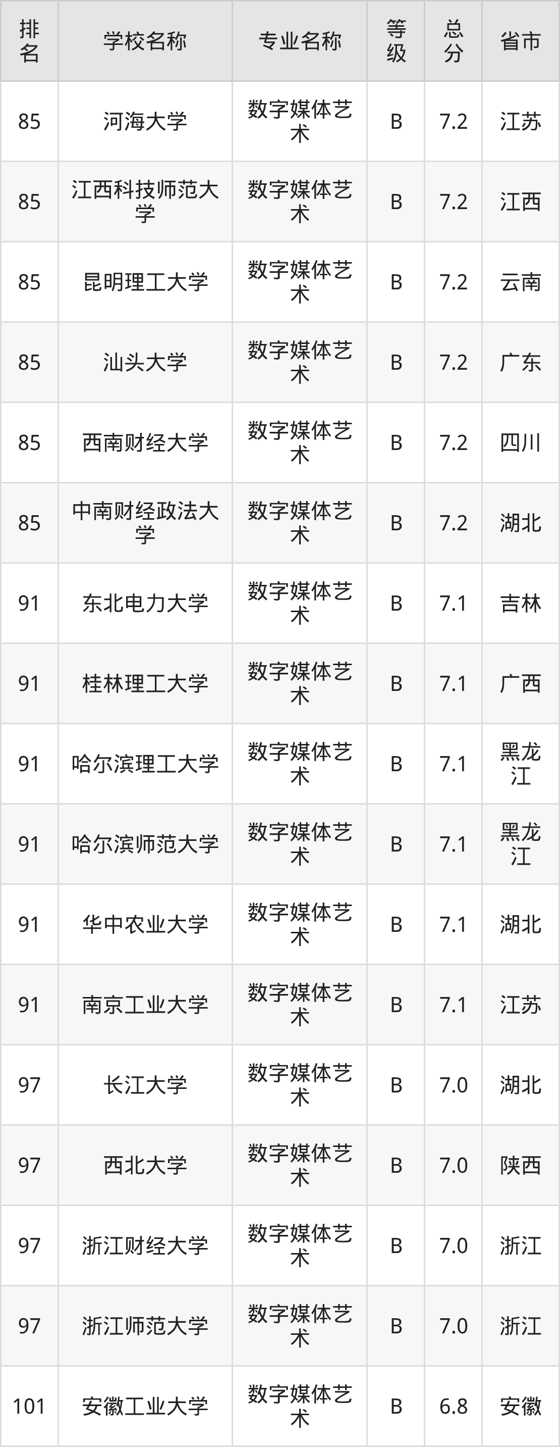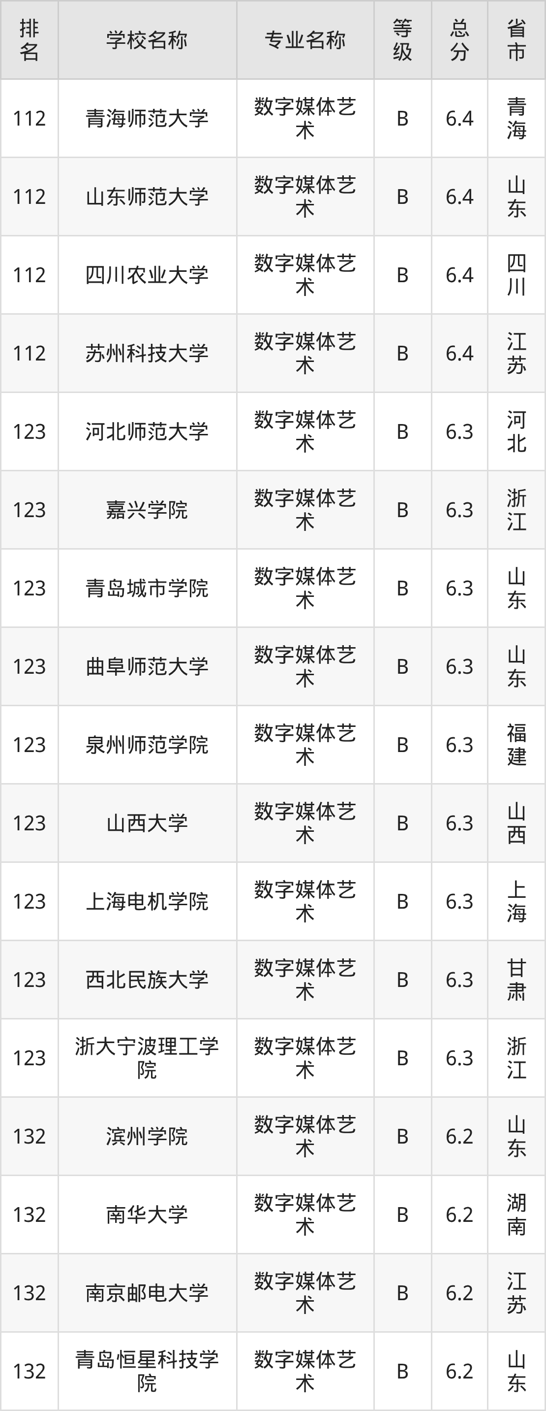 附数字媒体艺术专业全国206所院校排名榜单一览表!