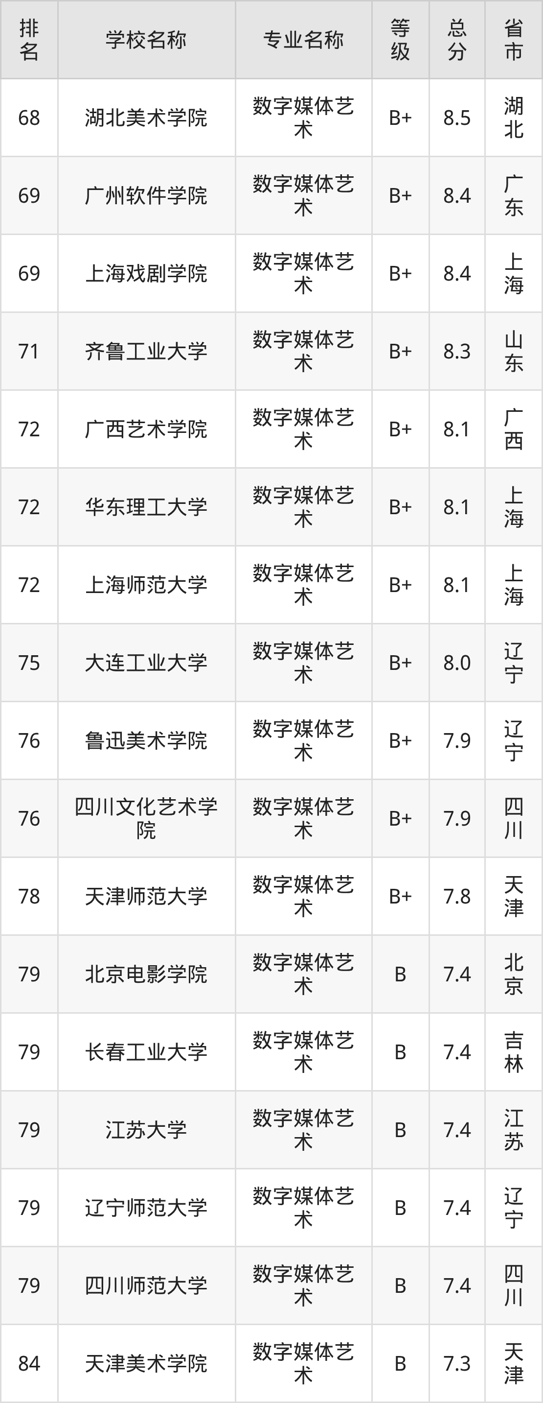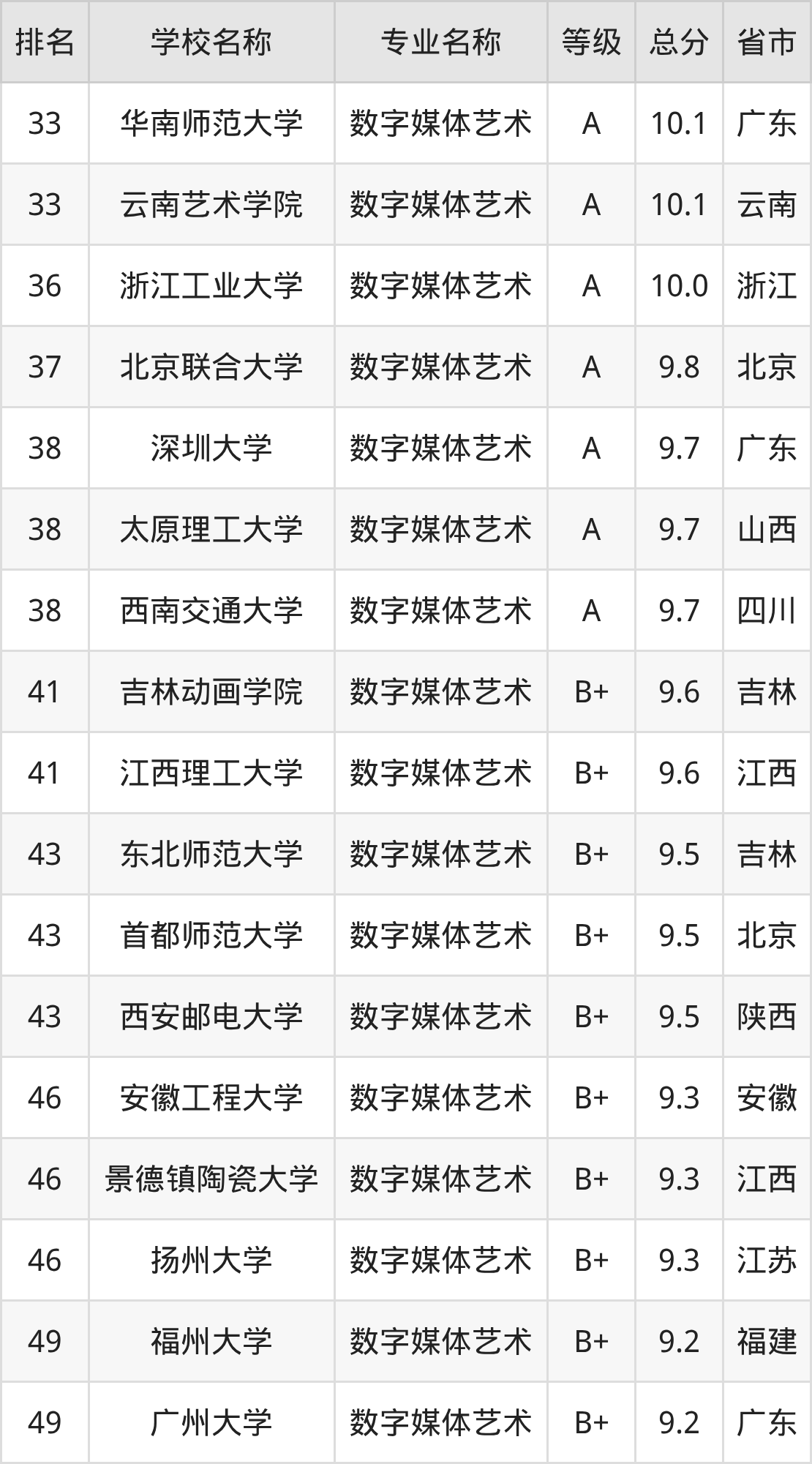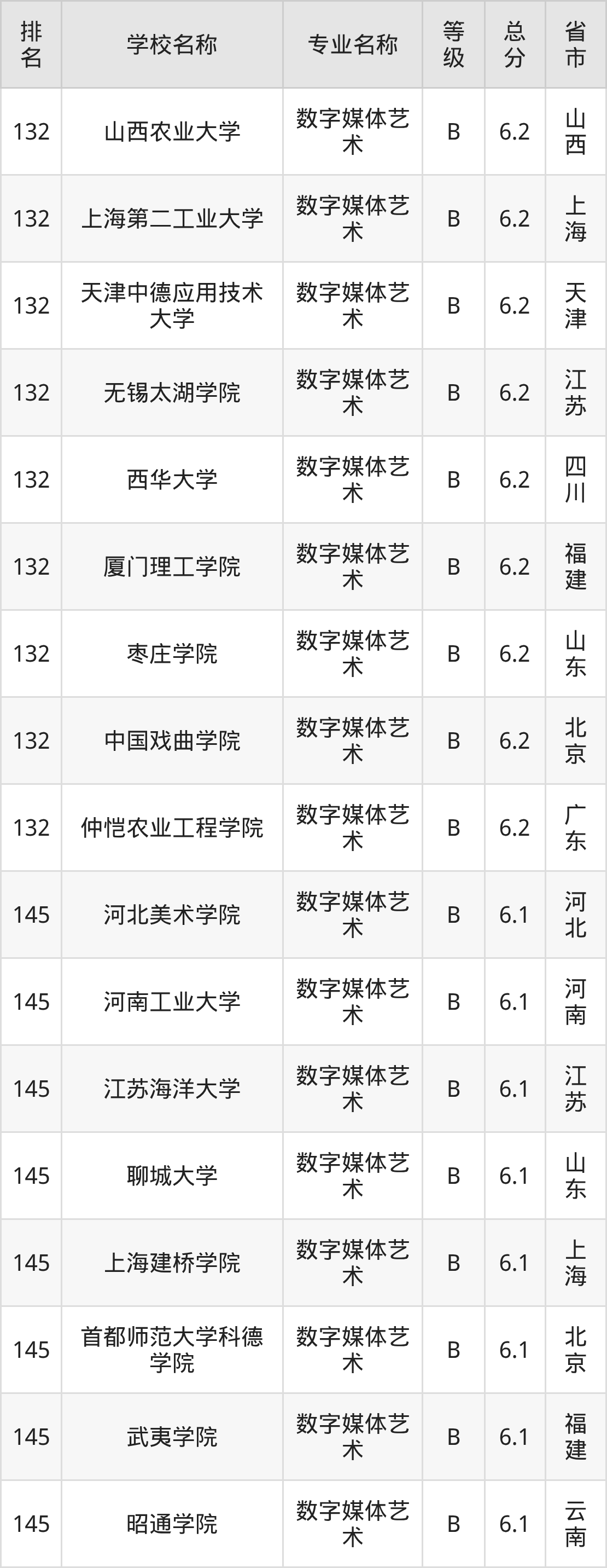 附数字媒体艺术专业全国206所院校排名榜单一览表!