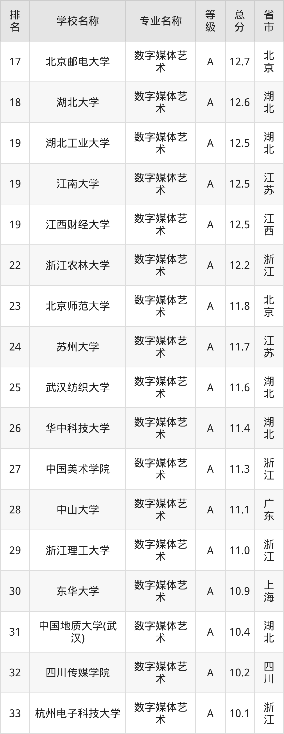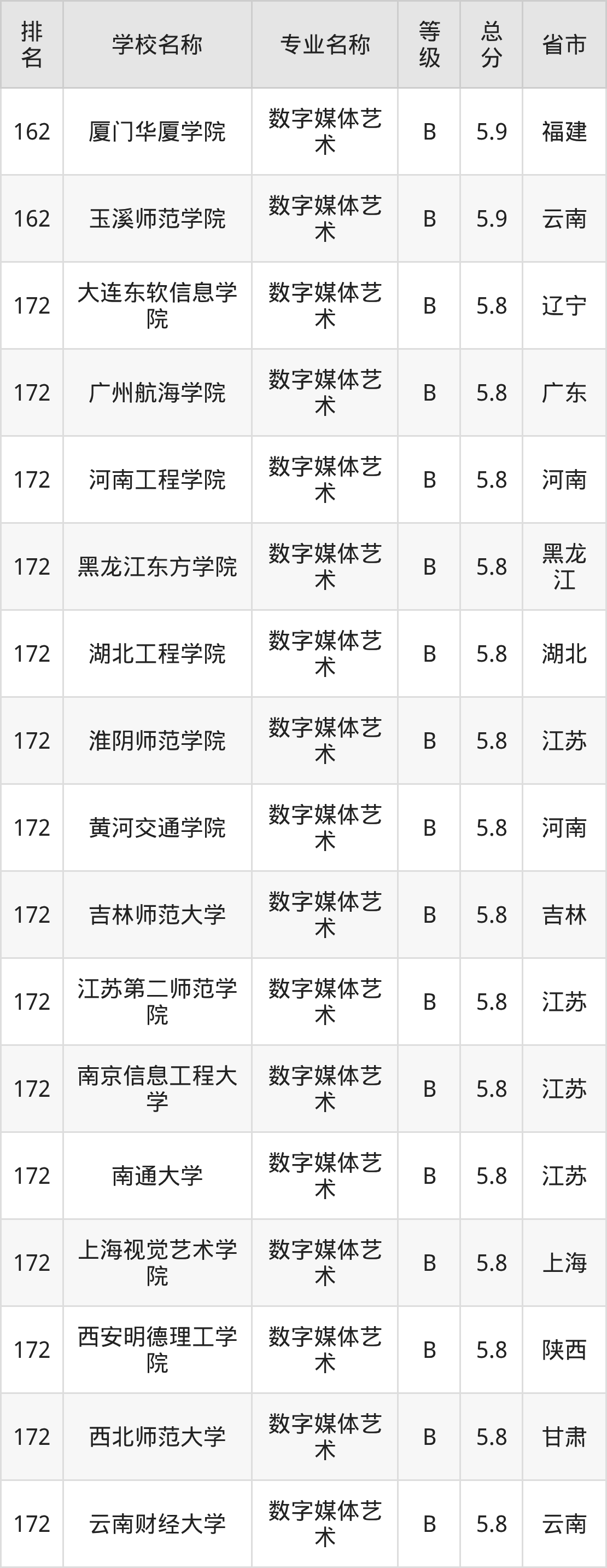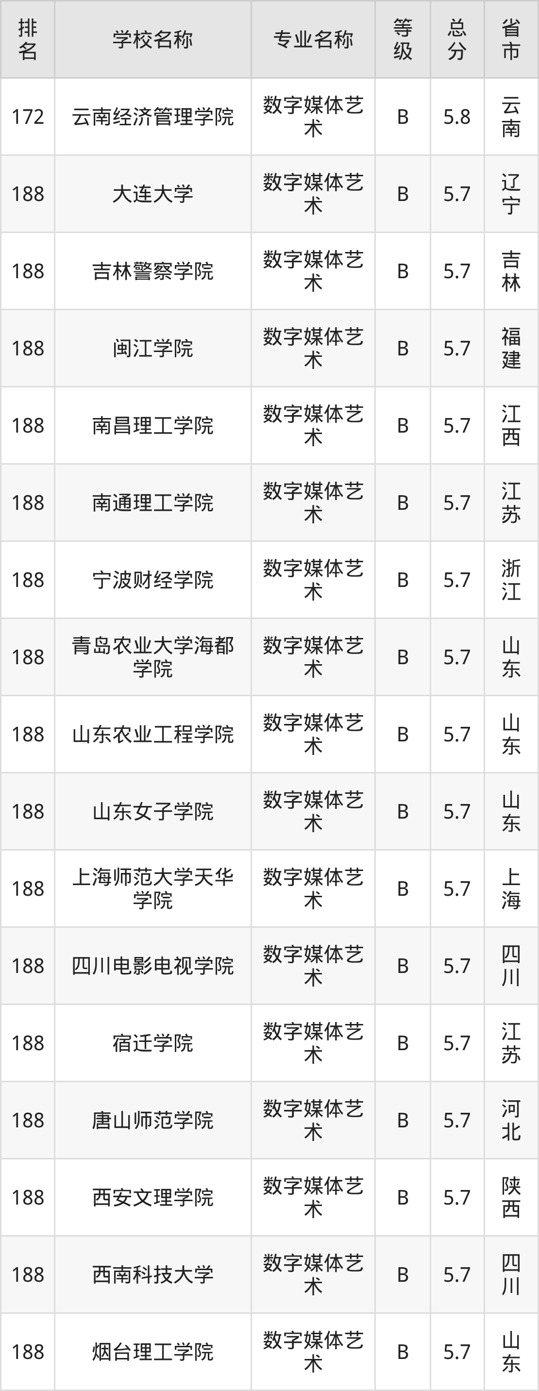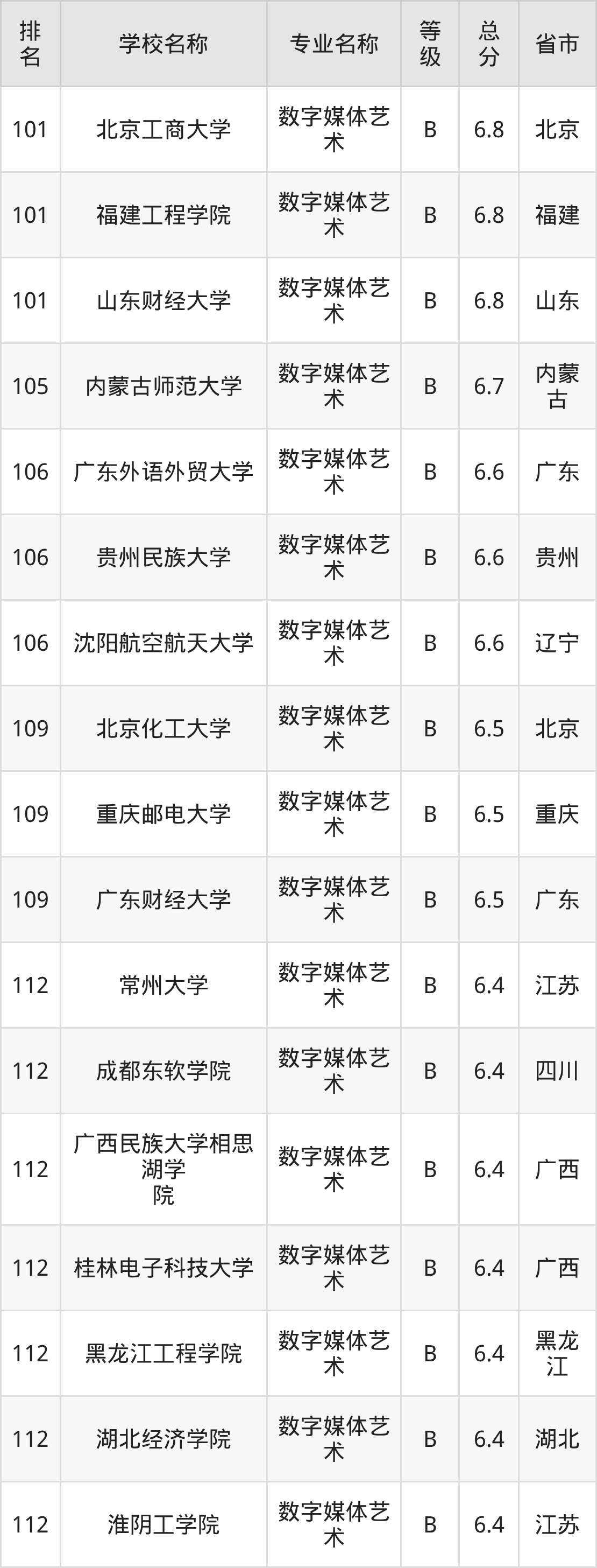 附数字媒体艺术专业全国206所院校排名榜单一览表!