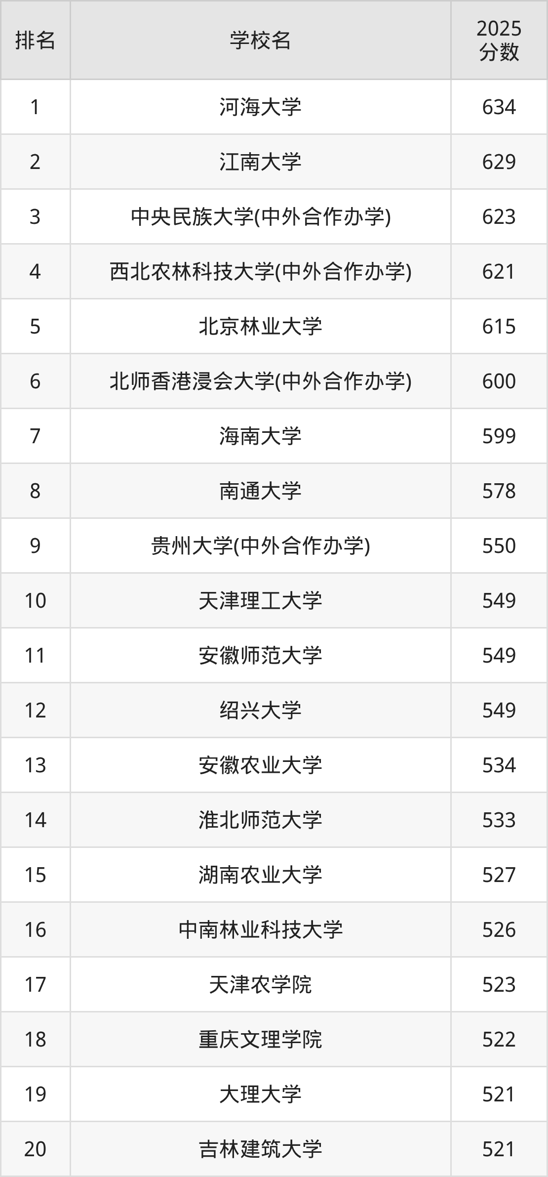 以下为全国环境科学专业在浙江省分数线排名前20的大学。