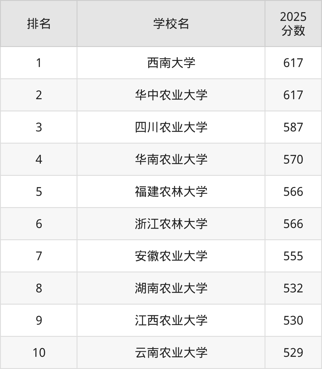 根据软科2025最新排名可知,茶学专业最好的十所名校名单如下: