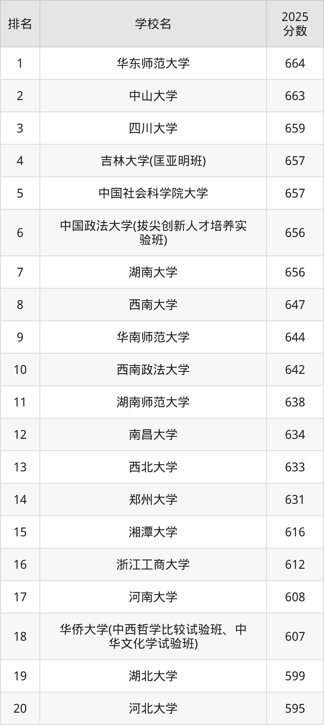 以下为全国哲学专业在浙江省分数线排名前20的大学。