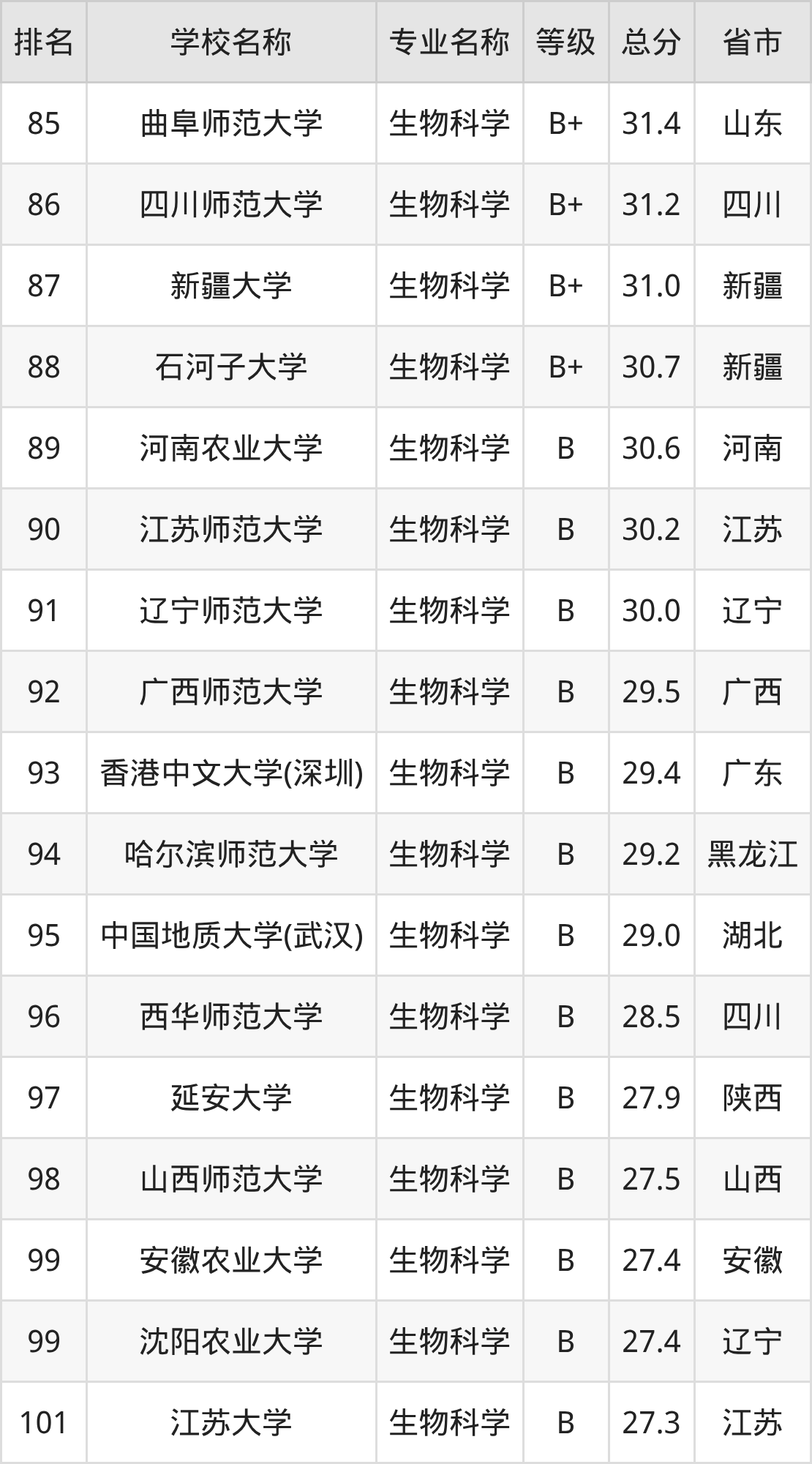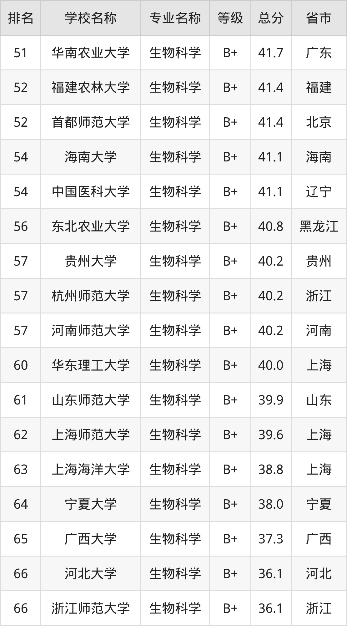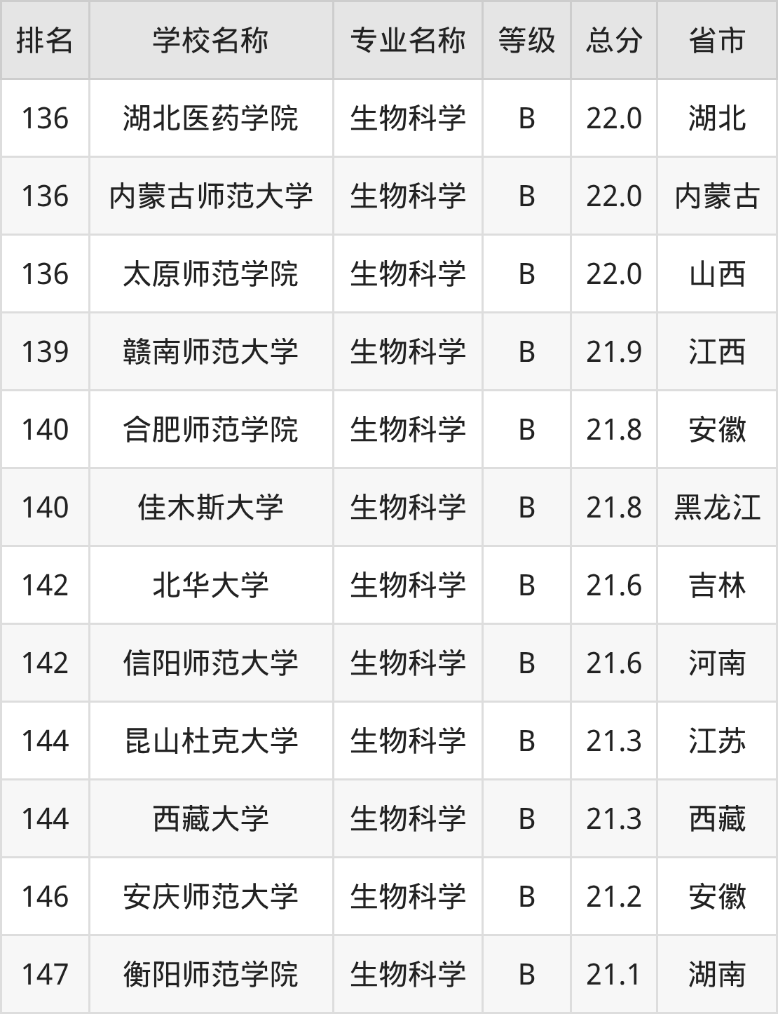 附生物科学专业全国147所院校排名榜单一览表!