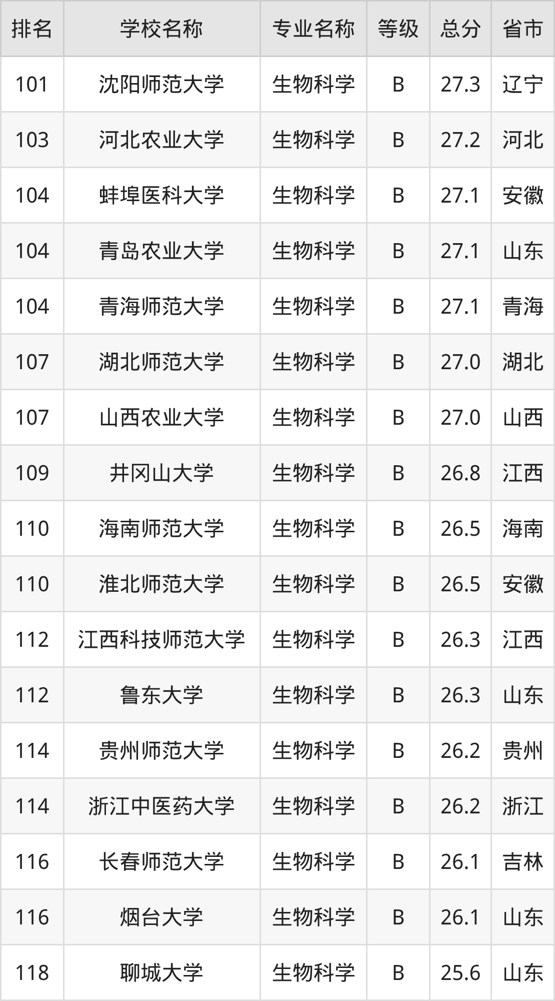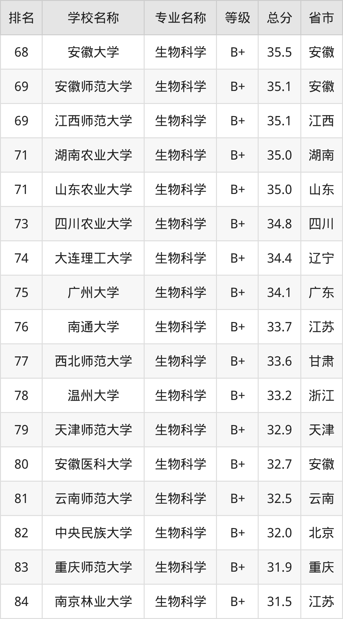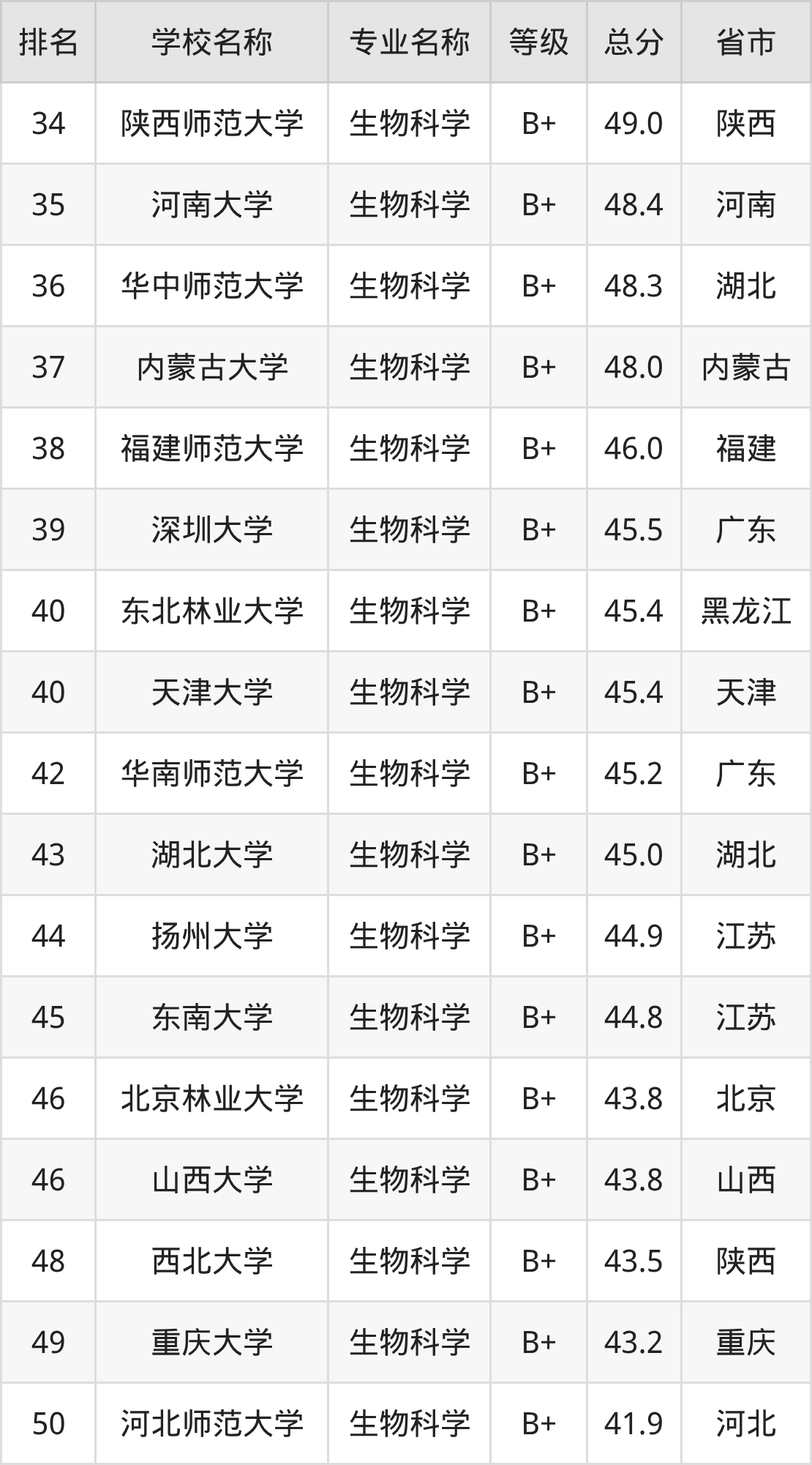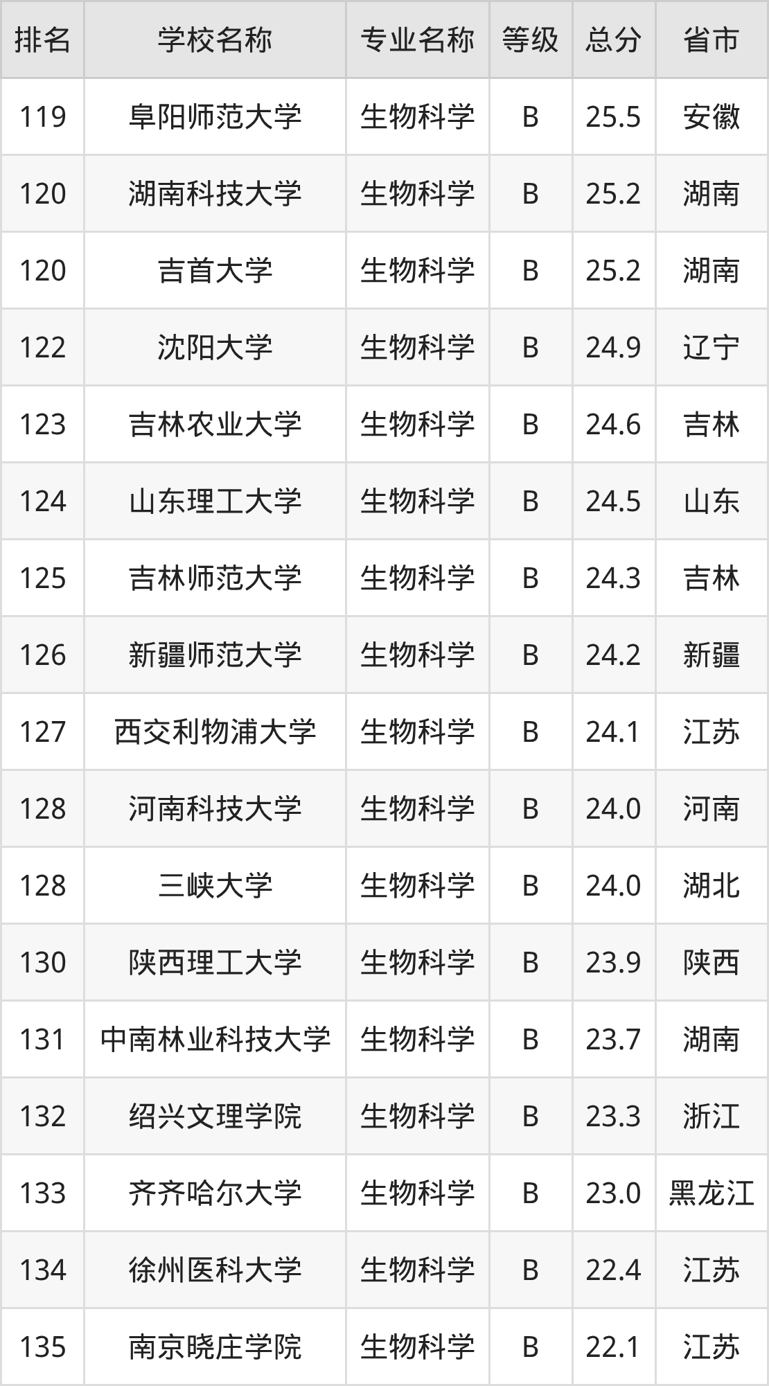 附生物科学专业全国147所院校排名榜单一览表!