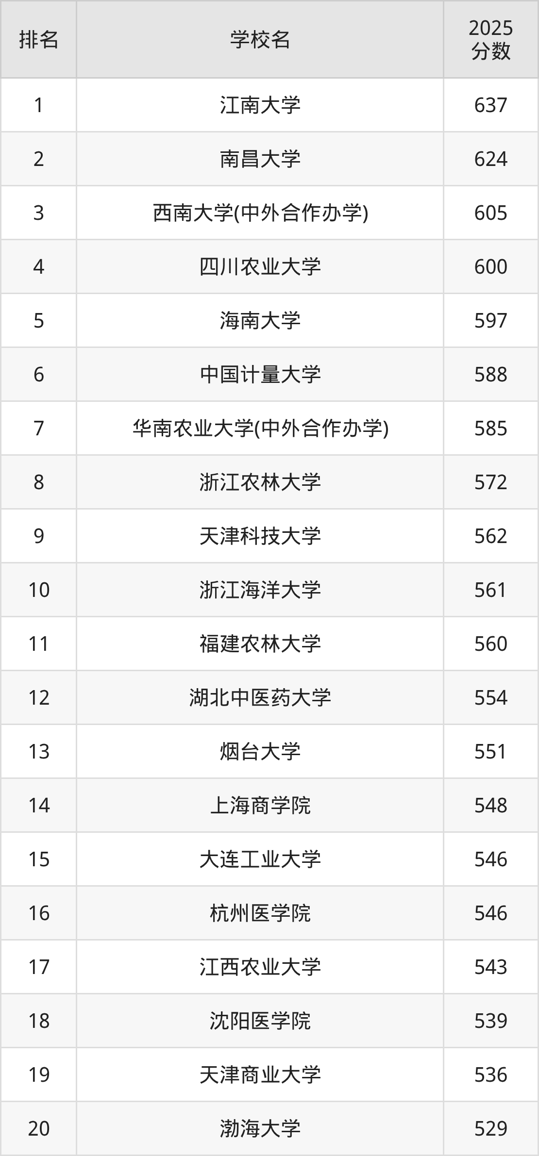 二、食品质量与安全专业大学排名及分数线