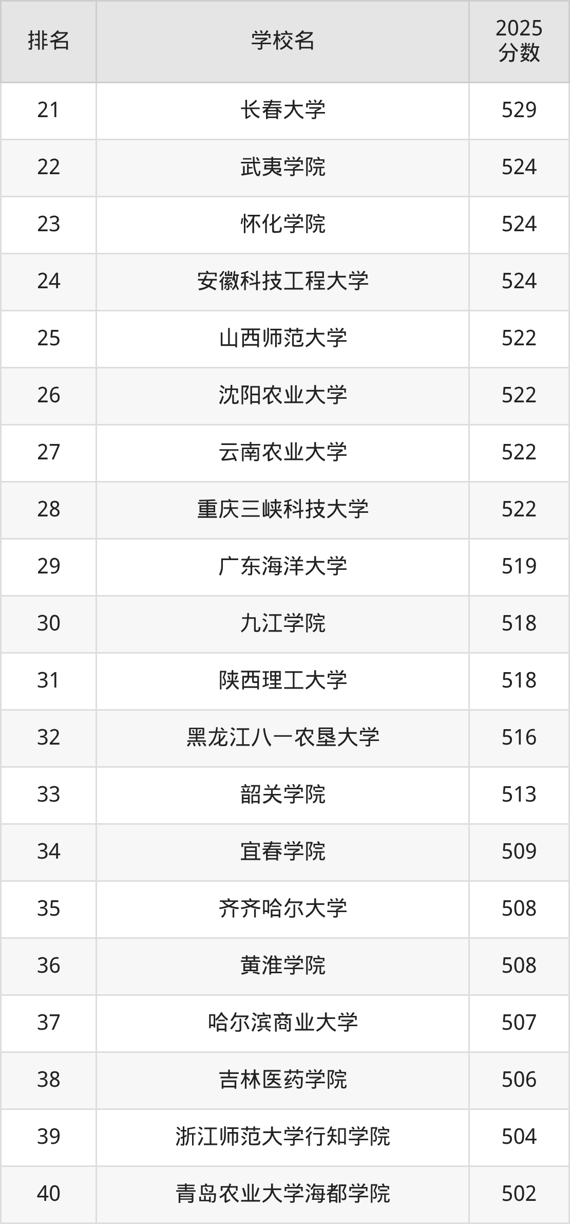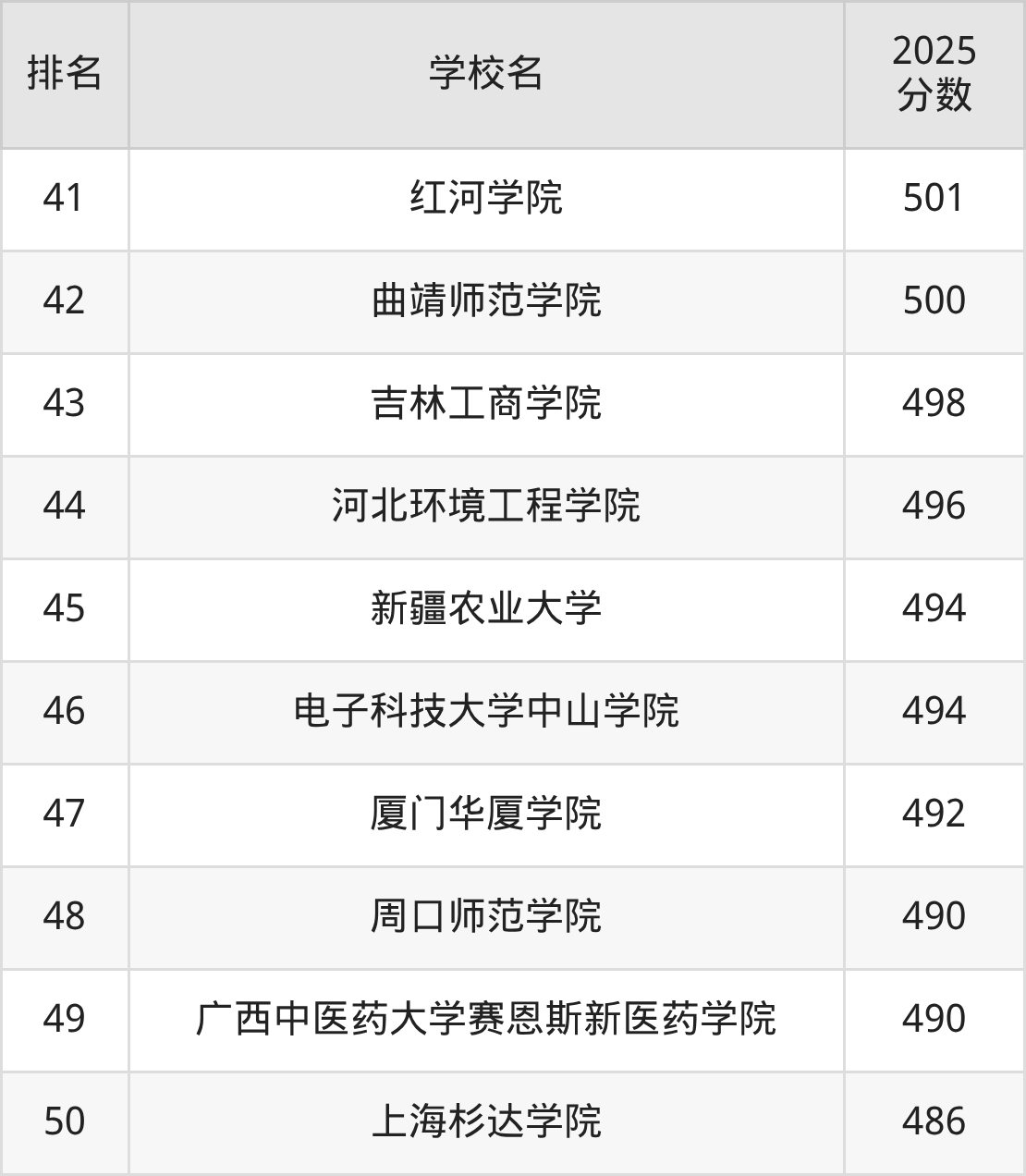 食品质量与安全专业排名前50的大学中,收分较低的有吉林师范大学博达学院(471分)、沈阳工学院(473分)、青岛工学院(482分)、上海杉达学院(486分)、广西中医药大学赛恩斯新医药学院(490分)。