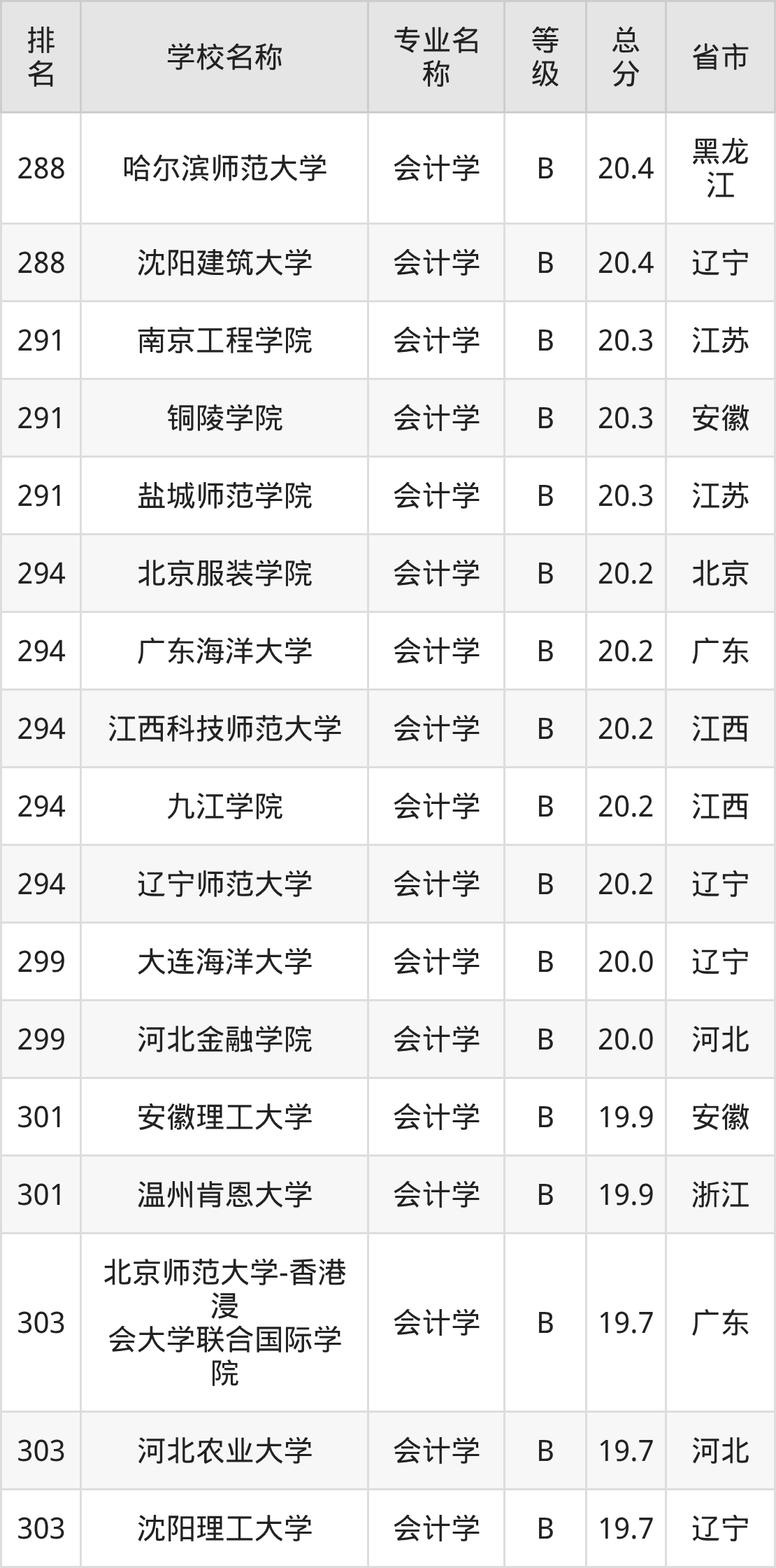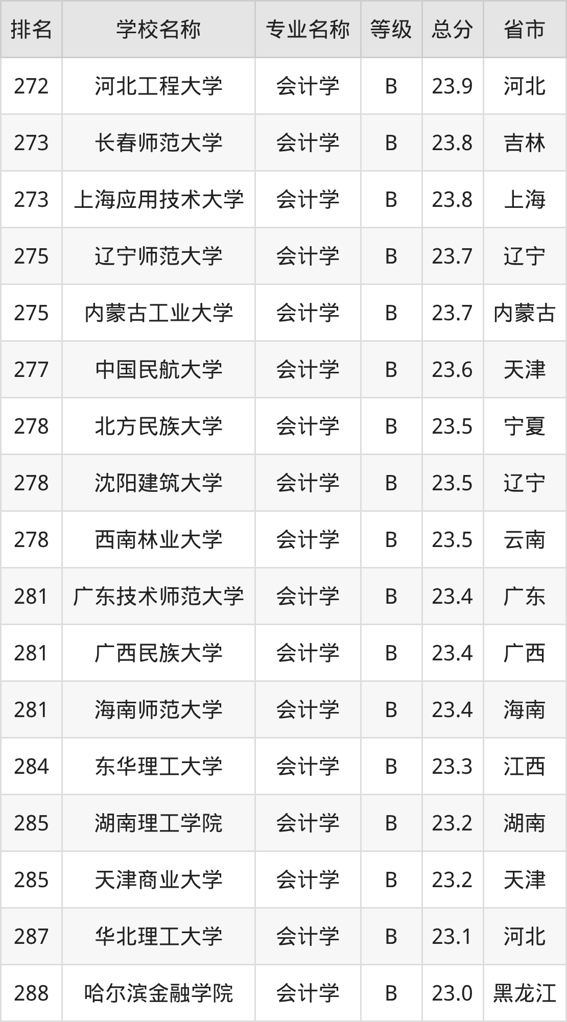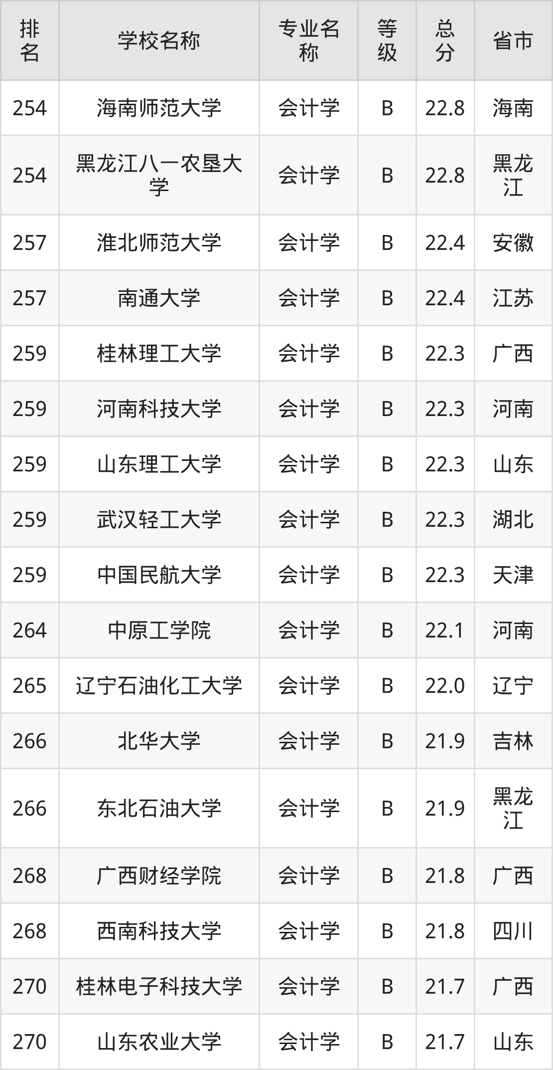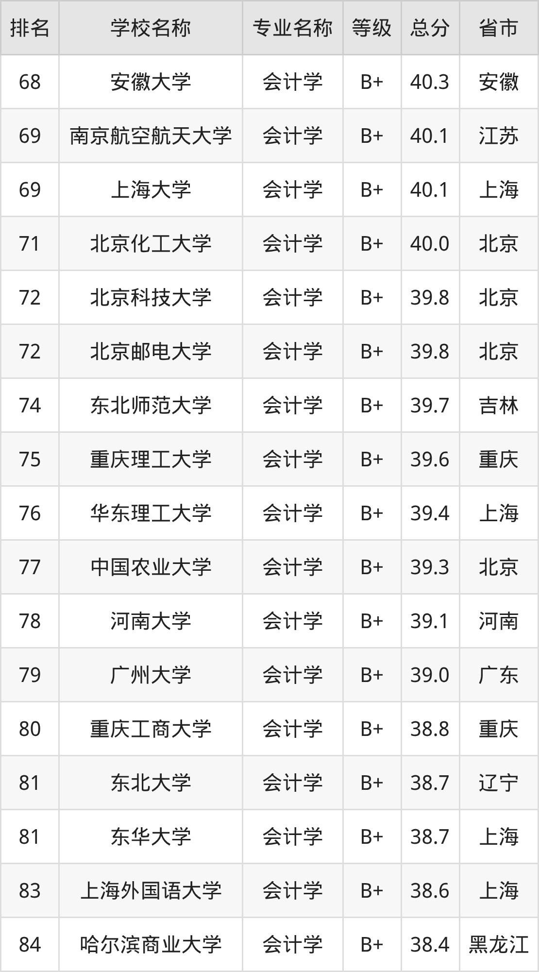 根据软科榜单可知,会计学专业全国排名前十的大学分别是: