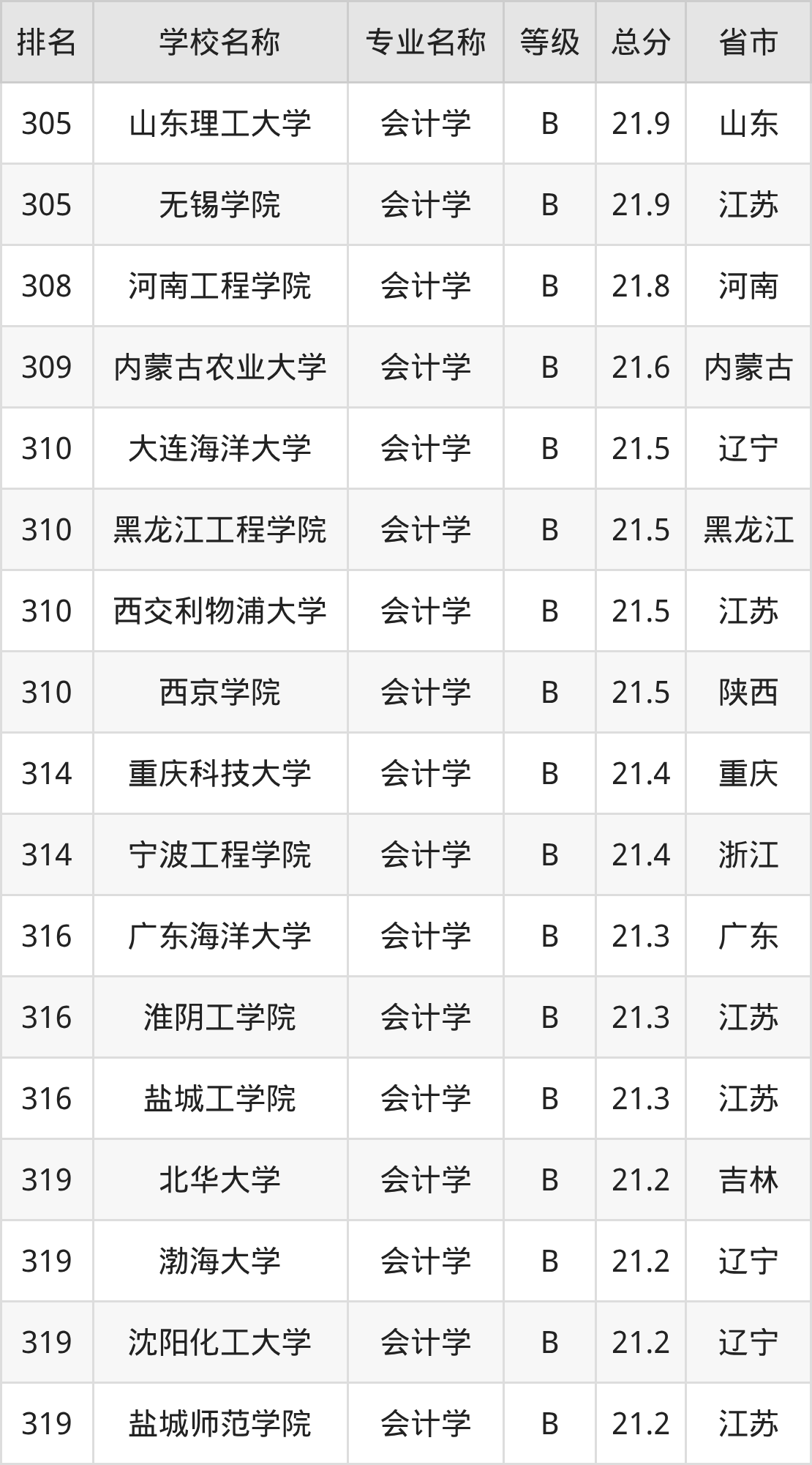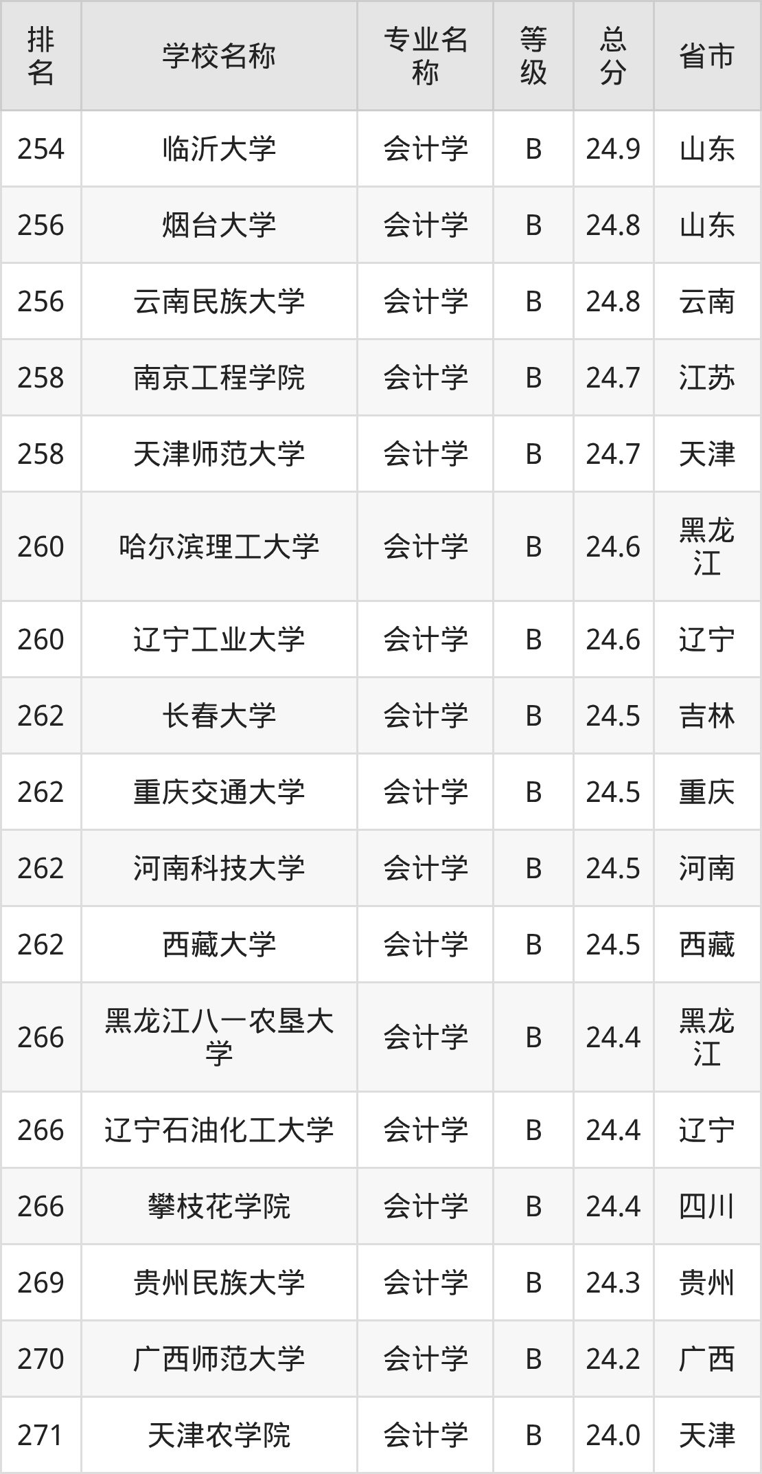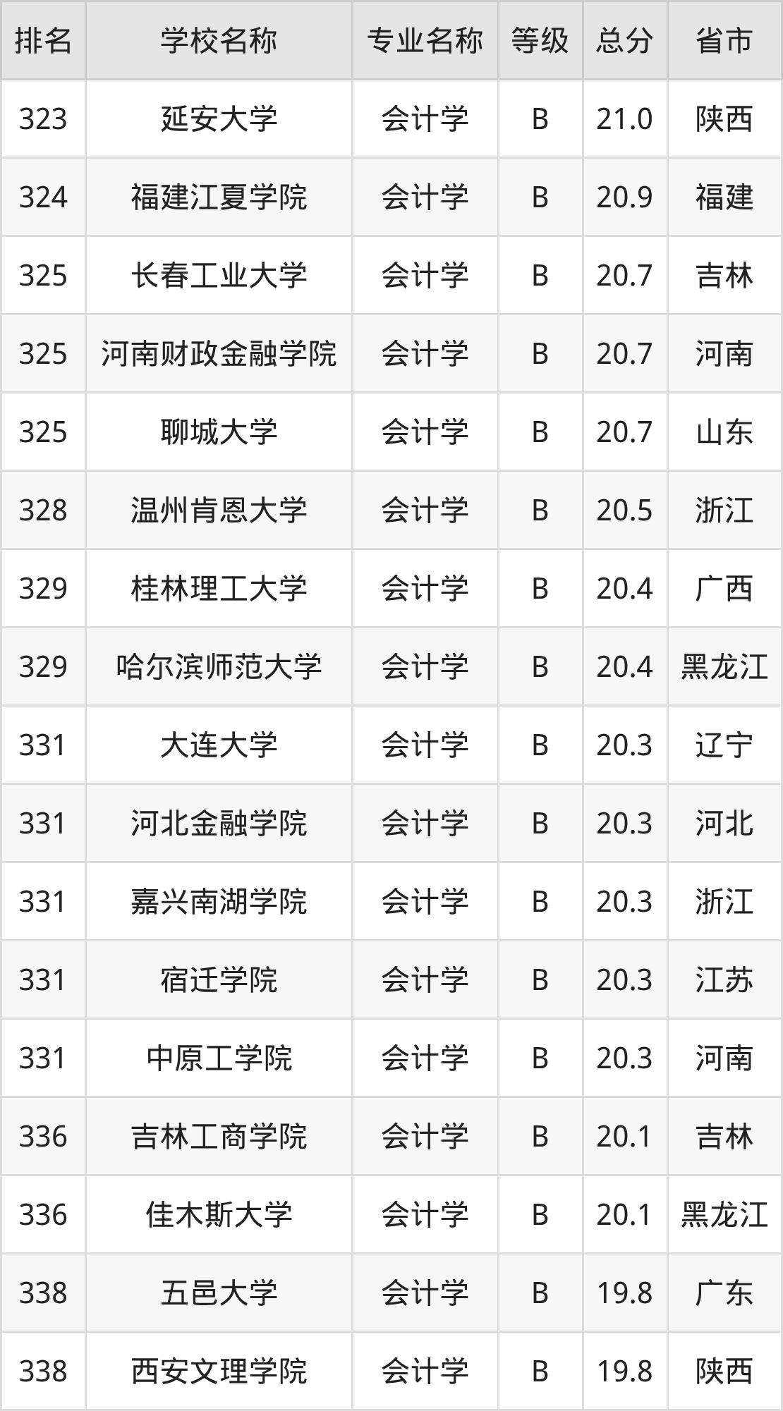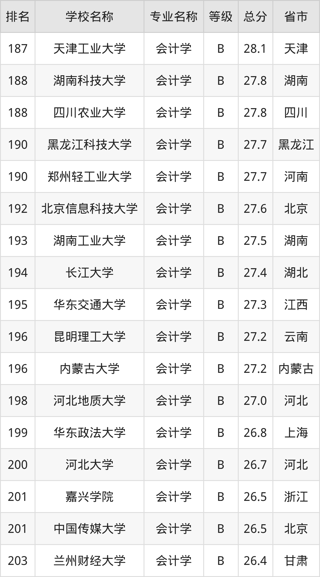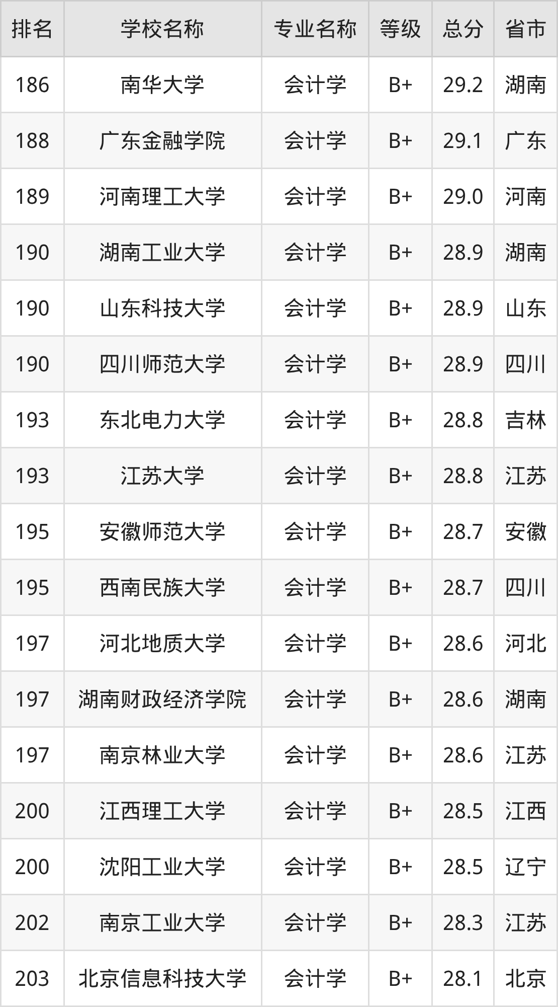 根据软科榜单可知,会计学专业全国排名前十的大学分别是: