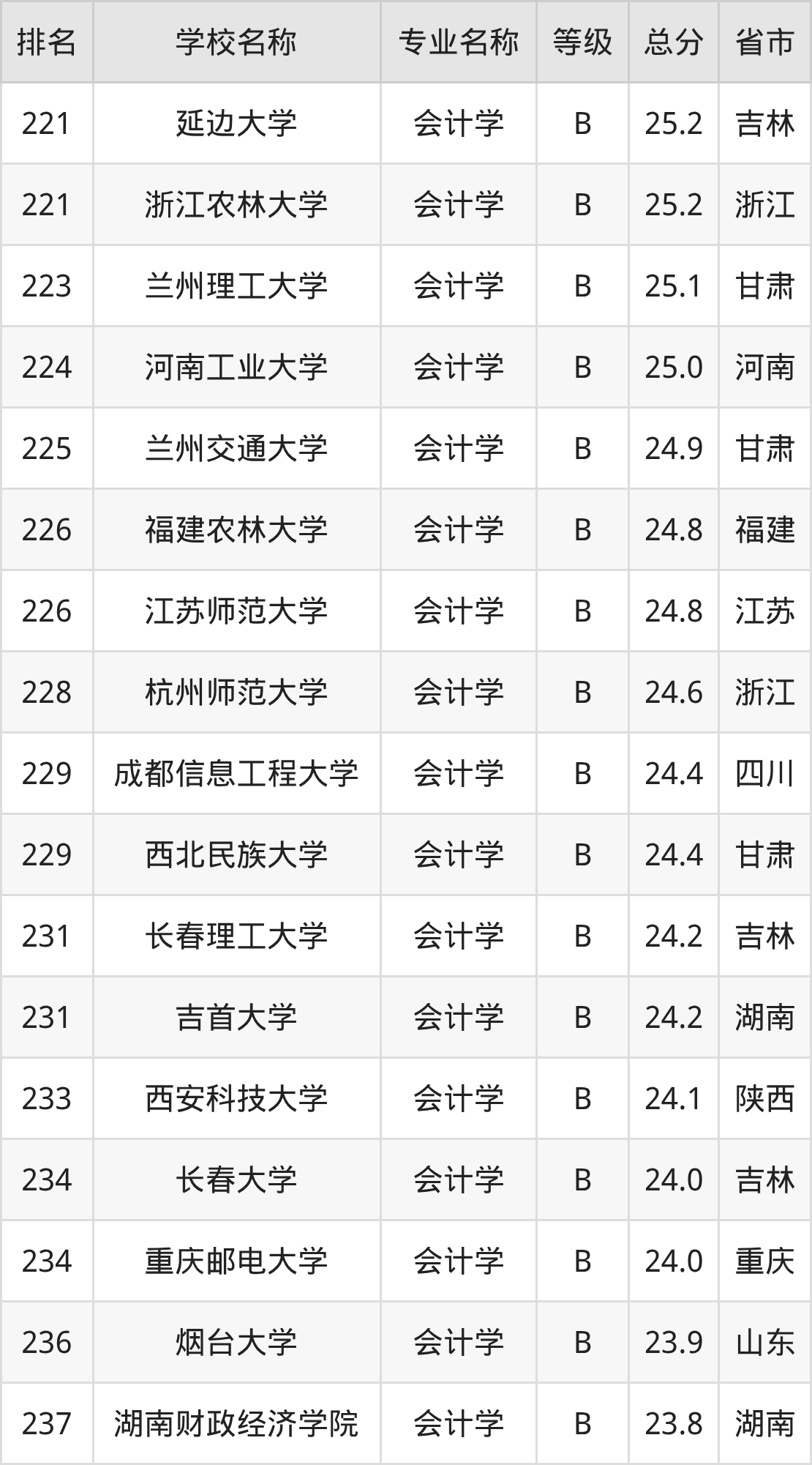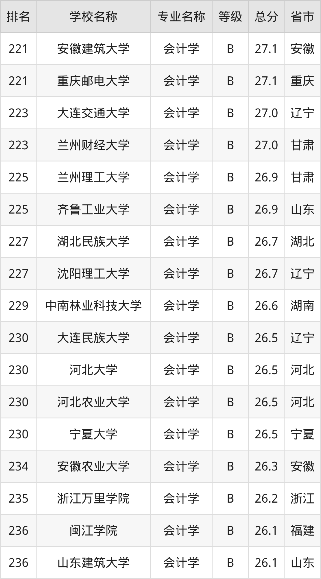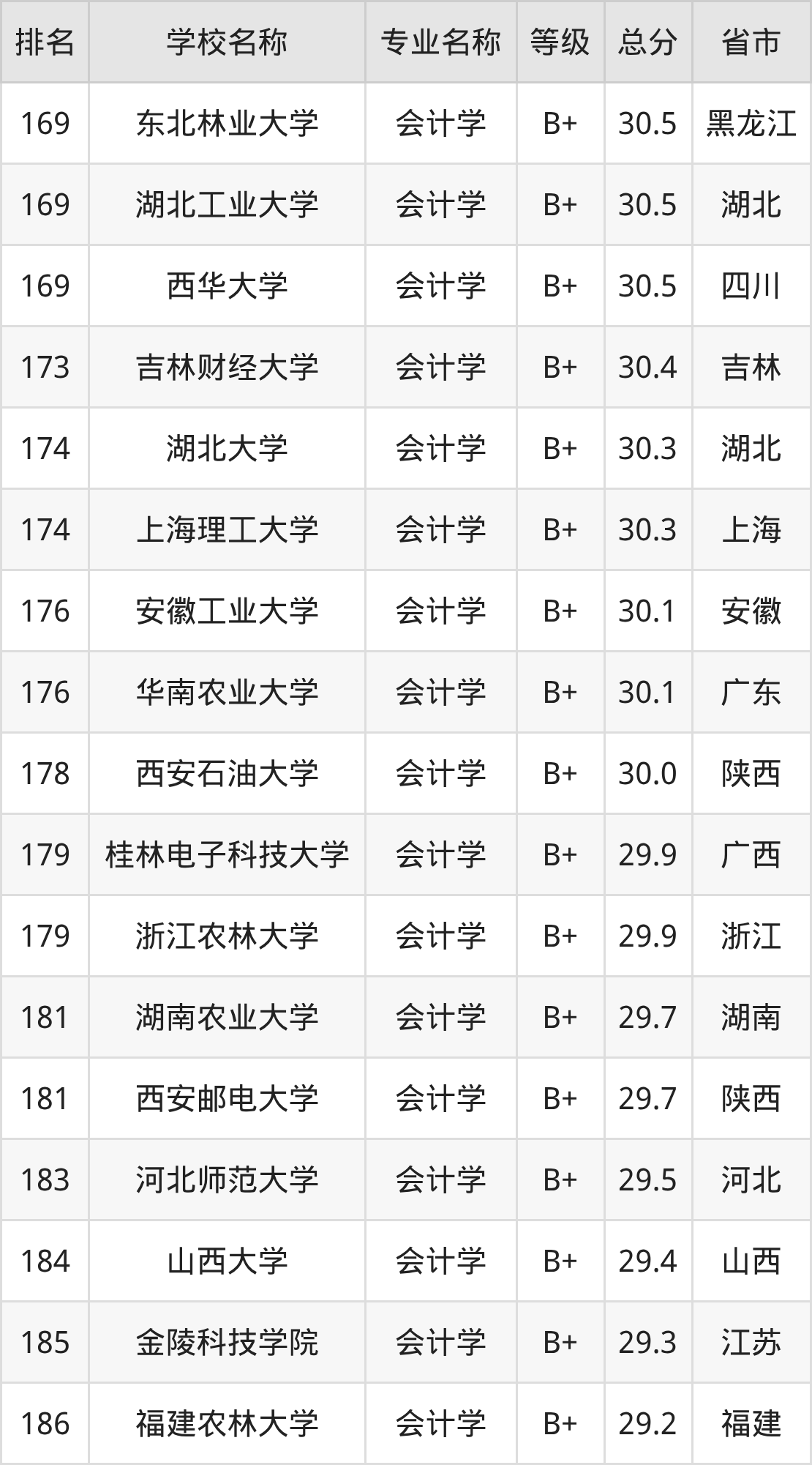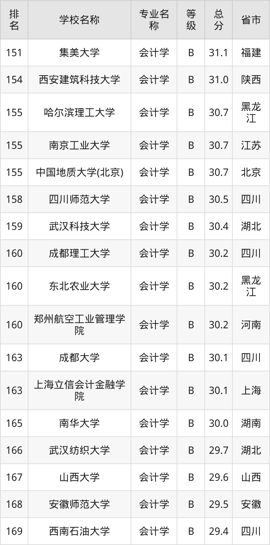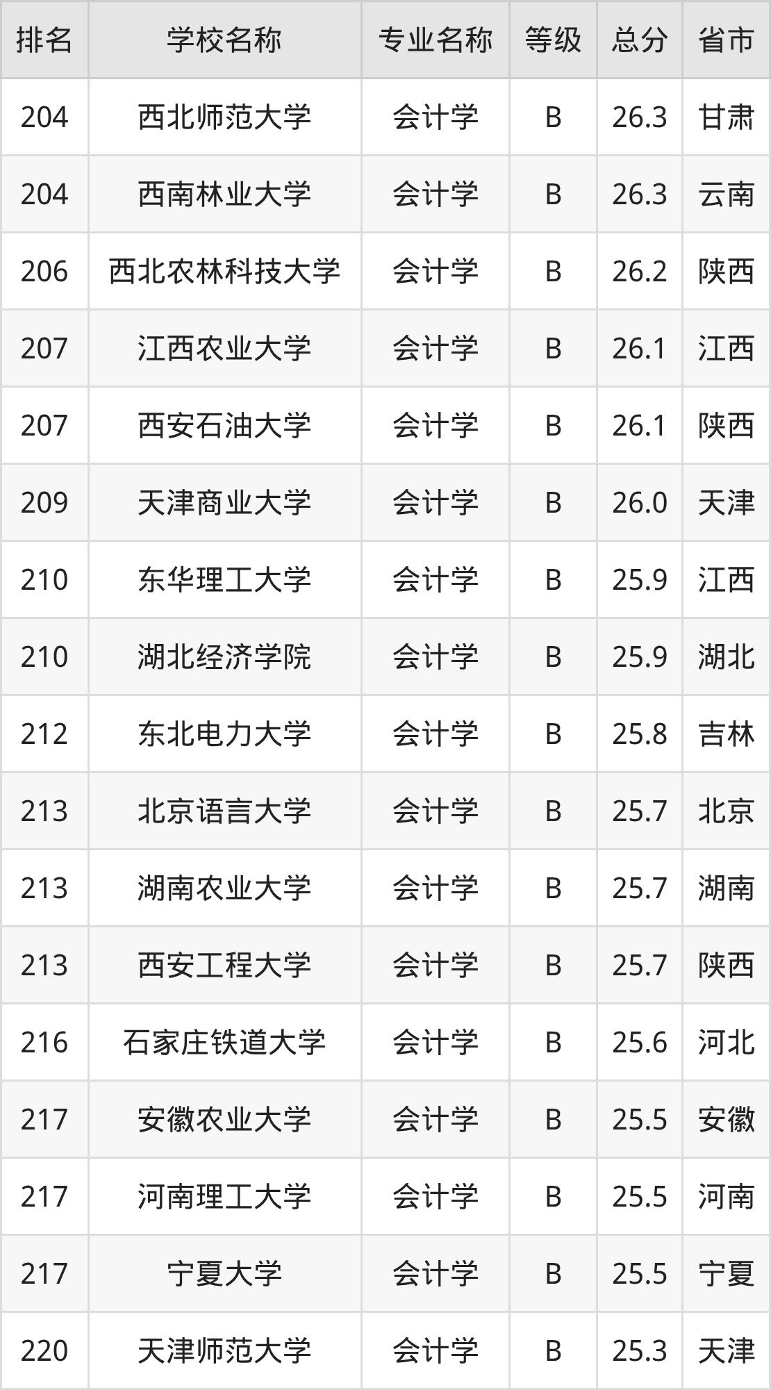 根据软科榜单可知,会计学专业全国排名前十的大学分别是: