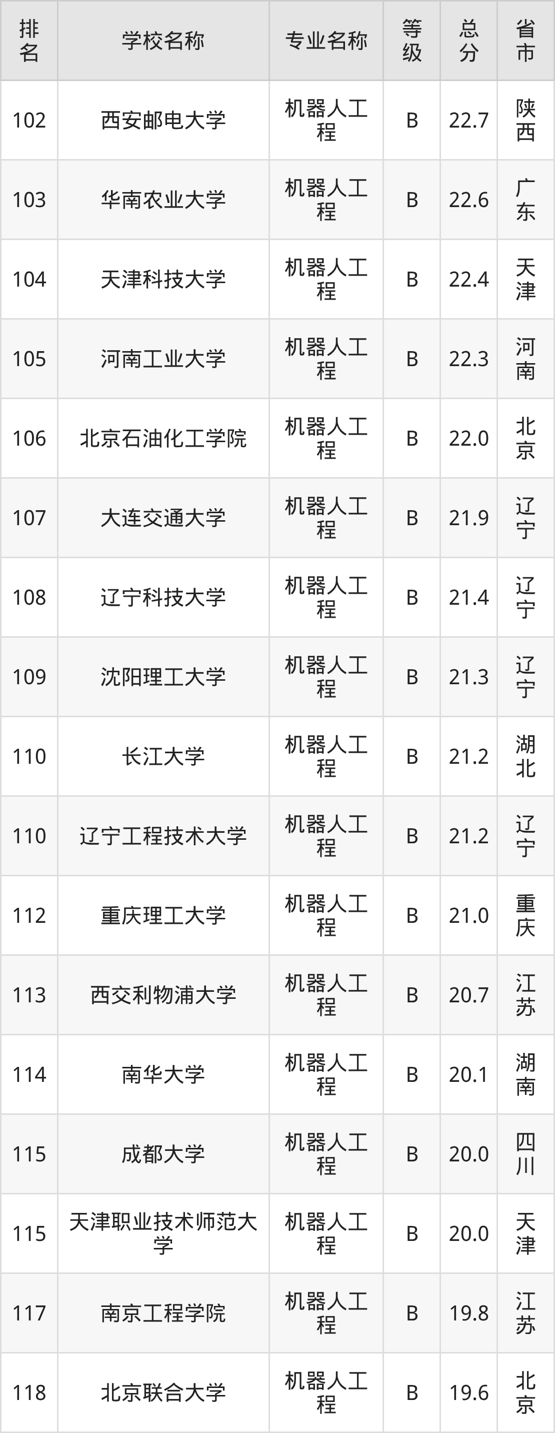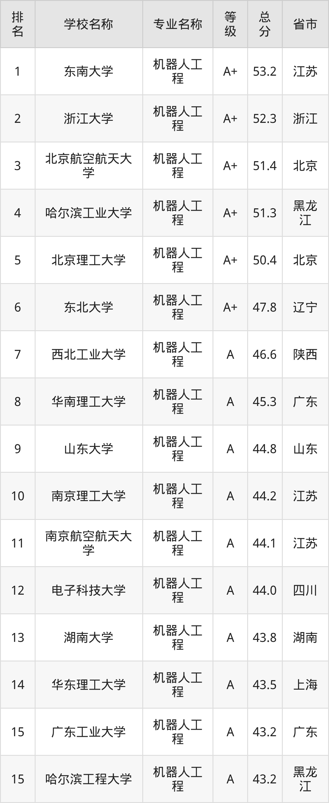 2025年机器人工程专业全国大学排名中,排名第一的是东南大学,被软科榜单评为:机器人工程专业实力最强的本科院校。本文将展示机器人工程专业上榜软科榜单的164所院校排名以及等级评分,供2026年想读机器人工程专业的同学们参考!