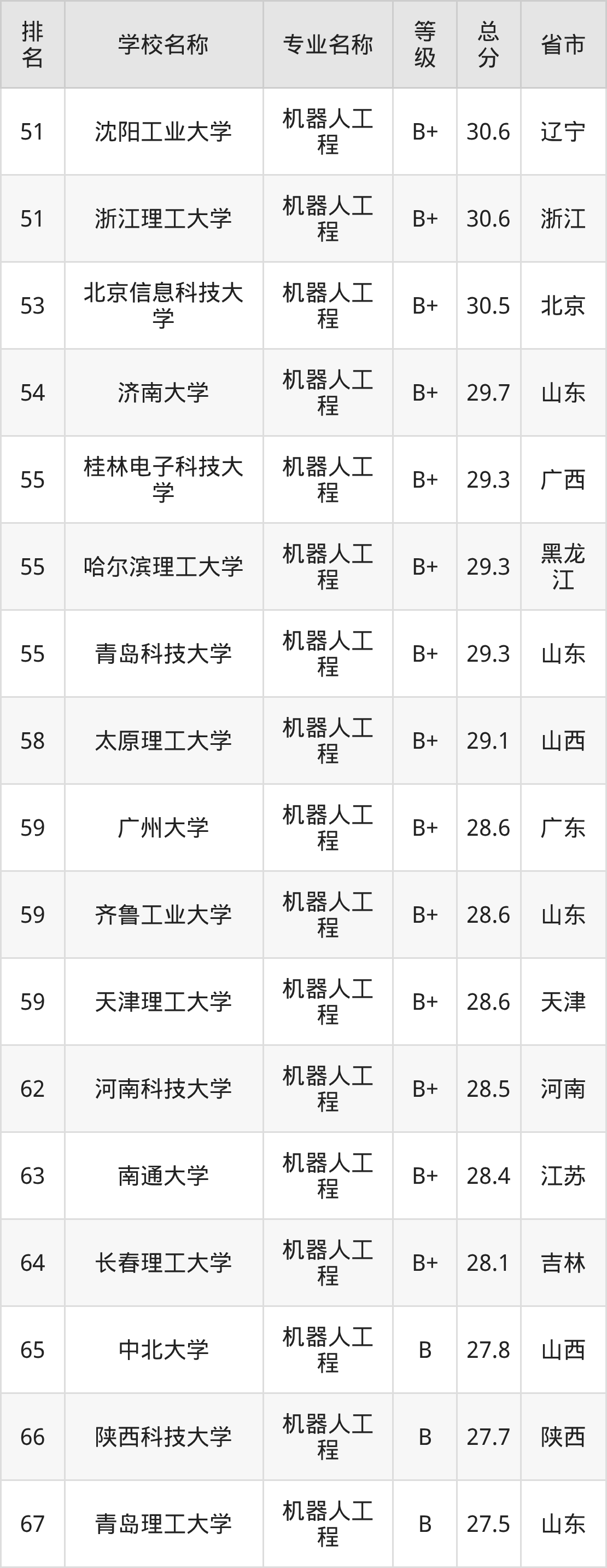 根据软科榜单可知,机器人工程专业全国排名前十的大学分别是: