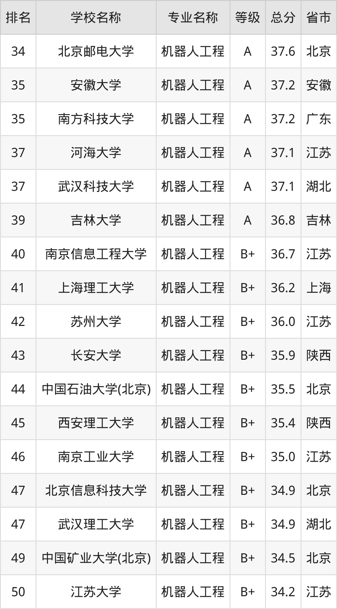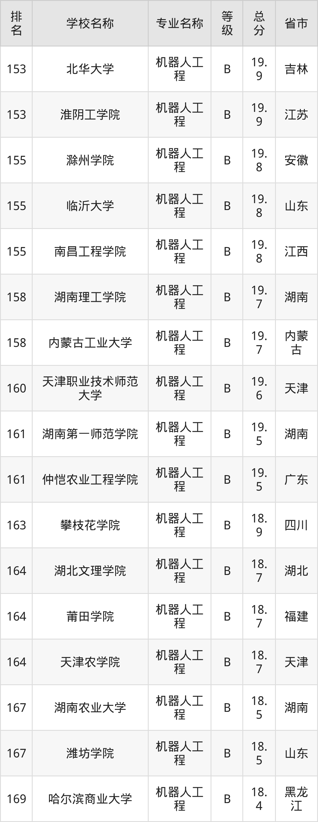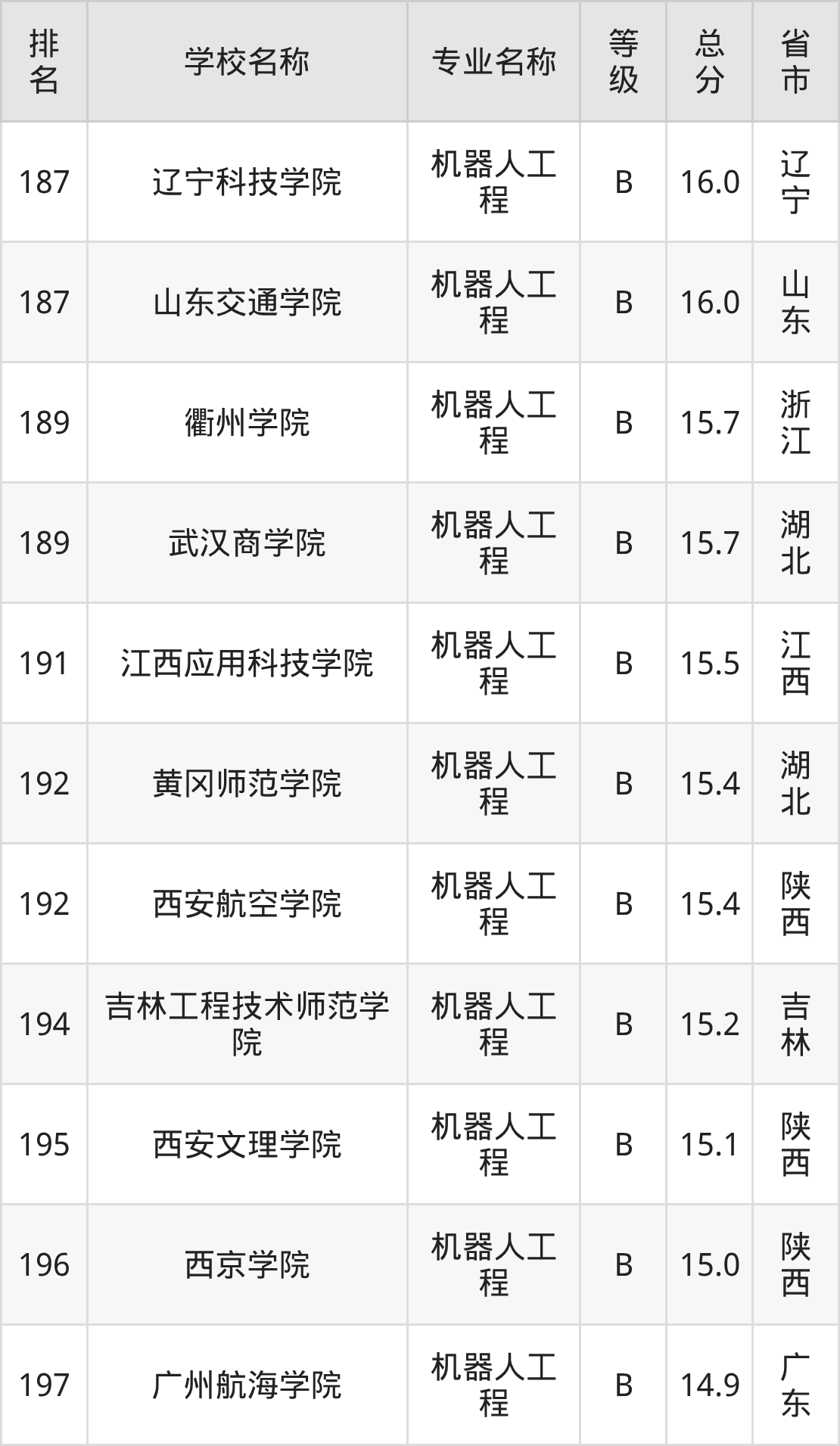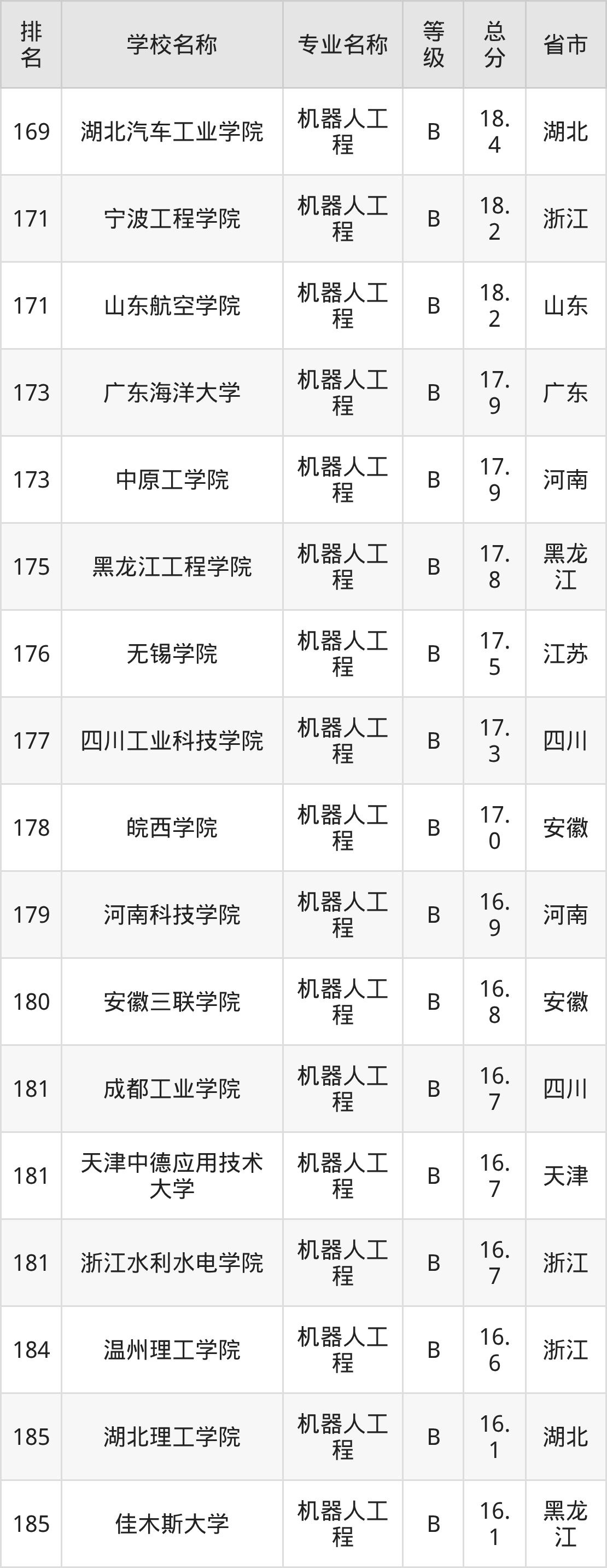 附机器人工程专业全国197所院校排名榜单一览表!