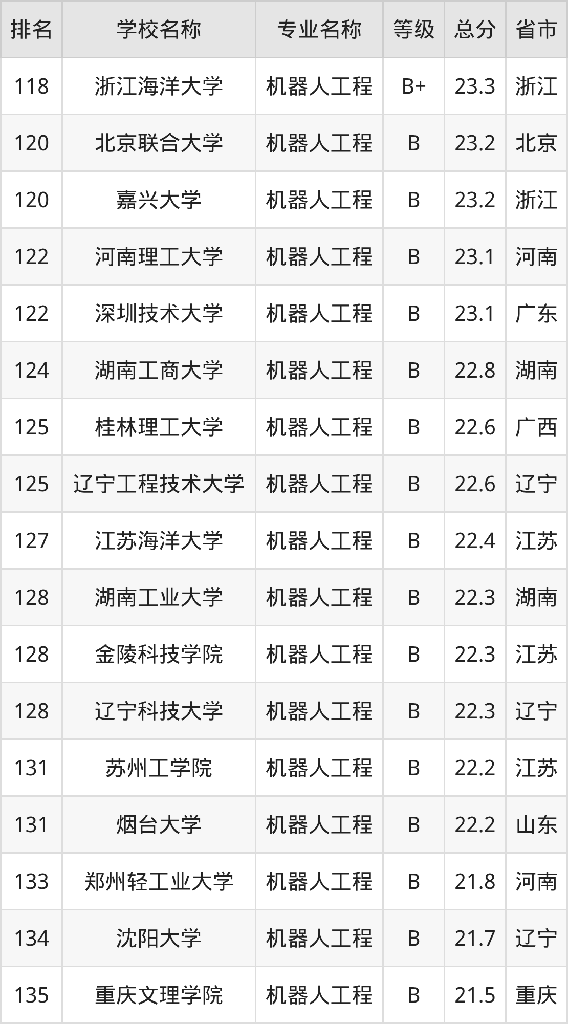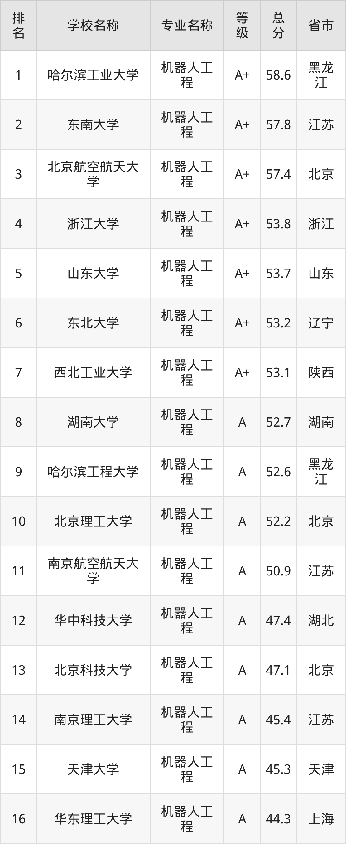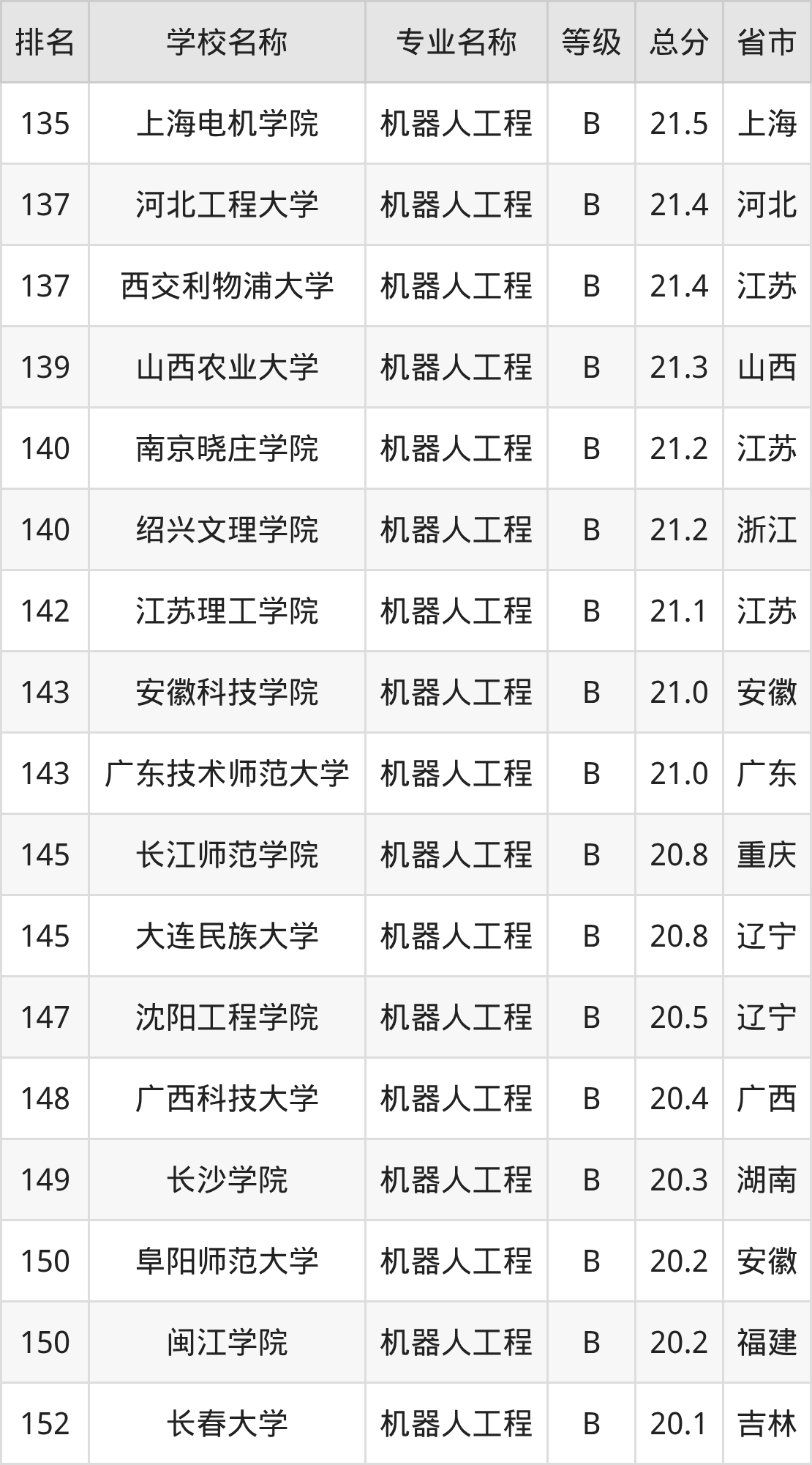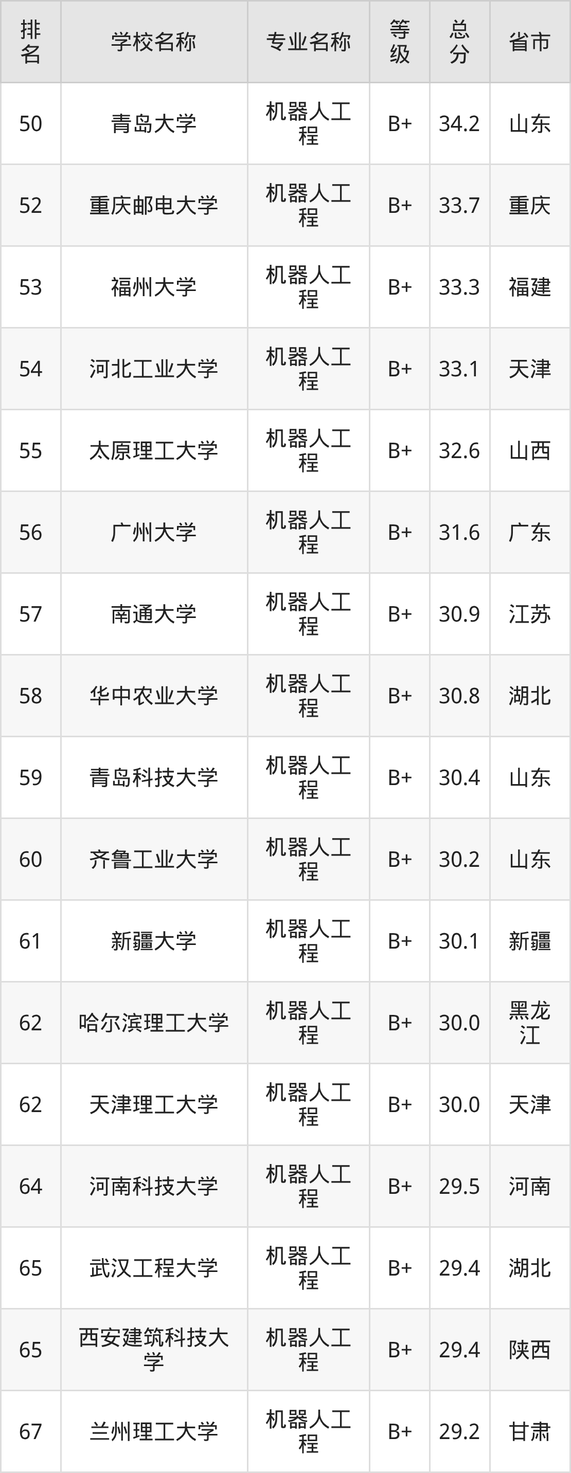 附机器人工程专业全国197所院校排名榜单一览表!