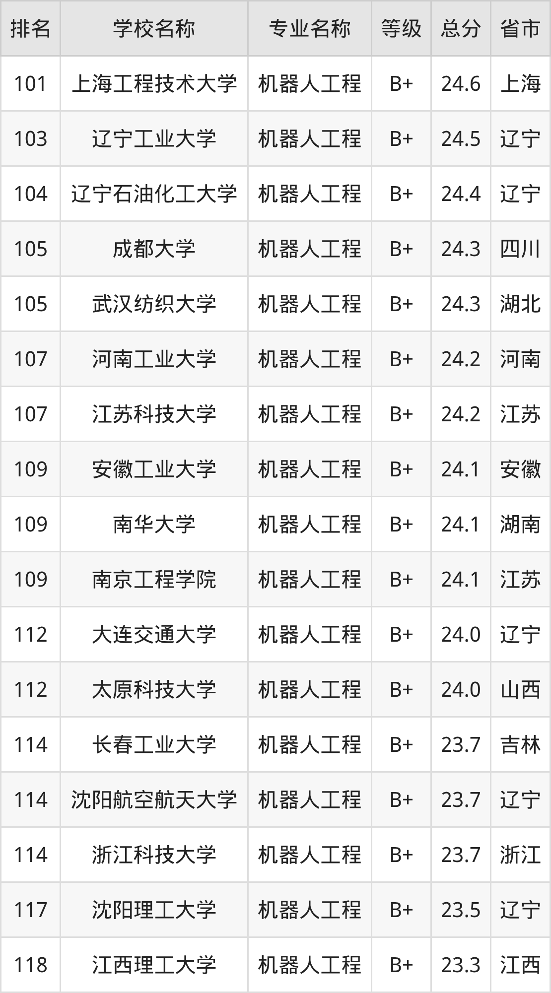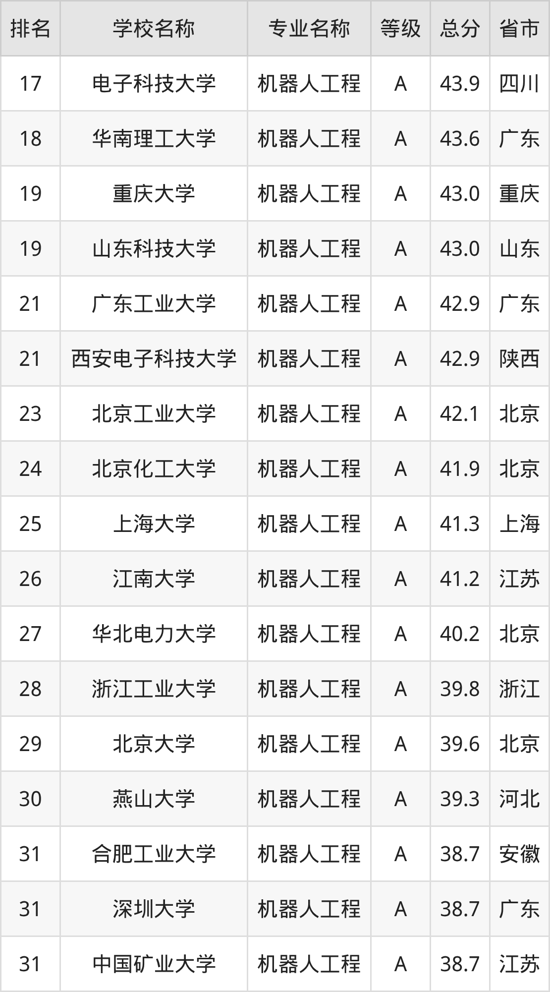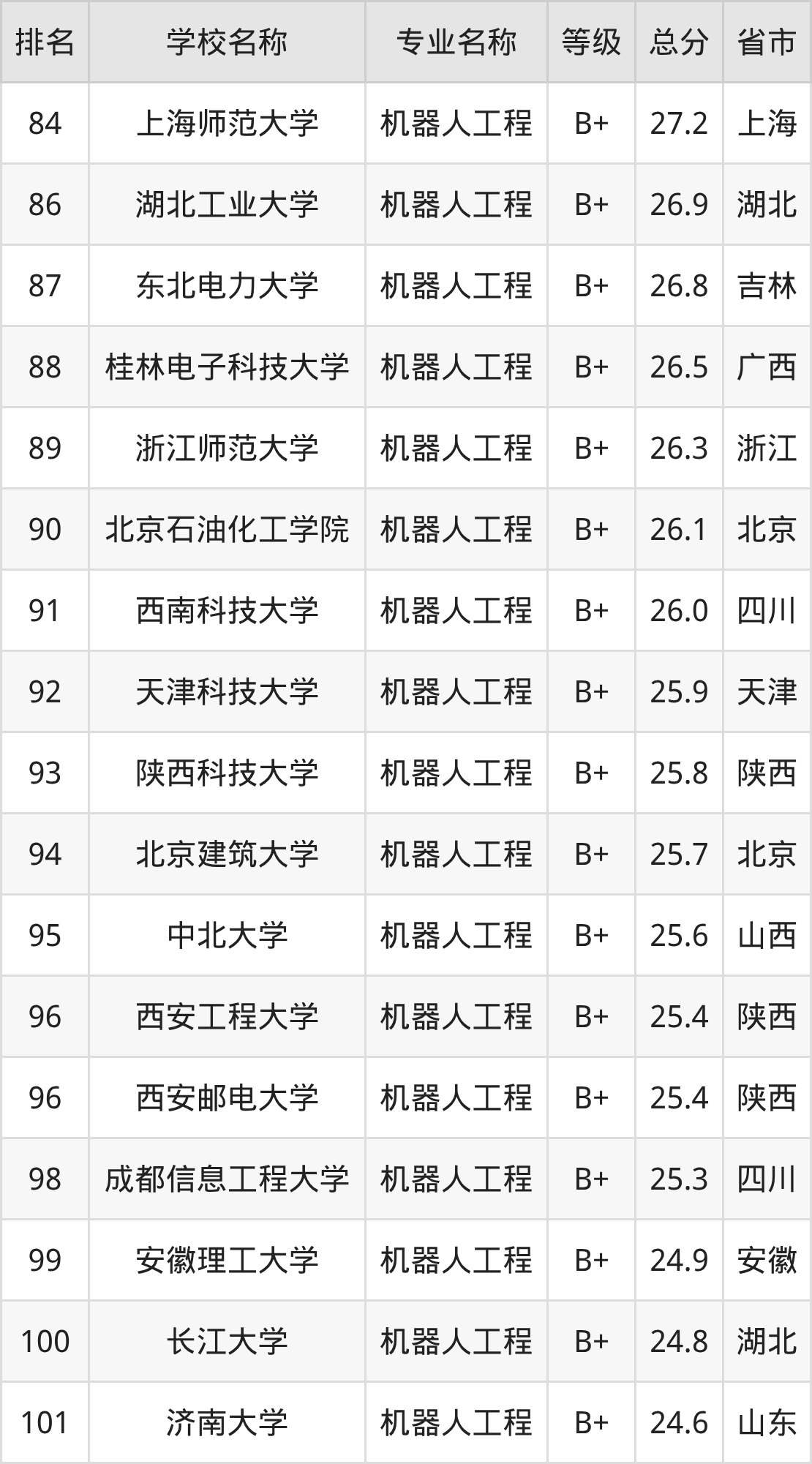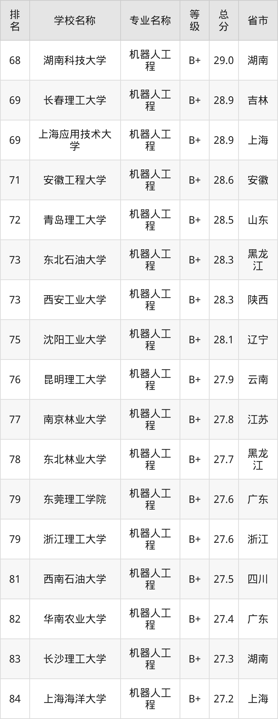 附机器人工程专业全国197所院校排名榜单一览表!