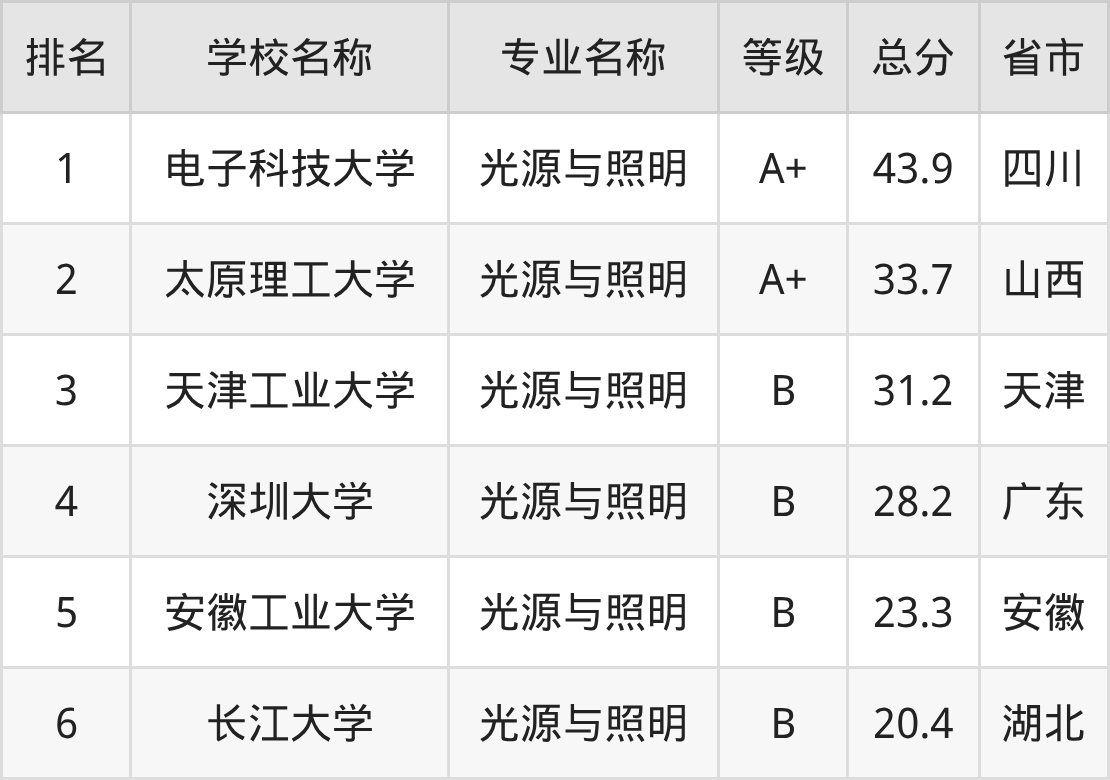 二、光源与照明专业最好的六所大学介绍