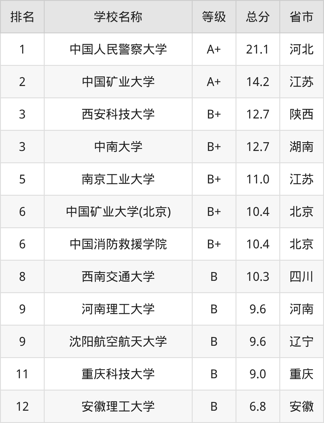 根据软科榜单可知,消防工程专业全国排名前十的大学分别是: