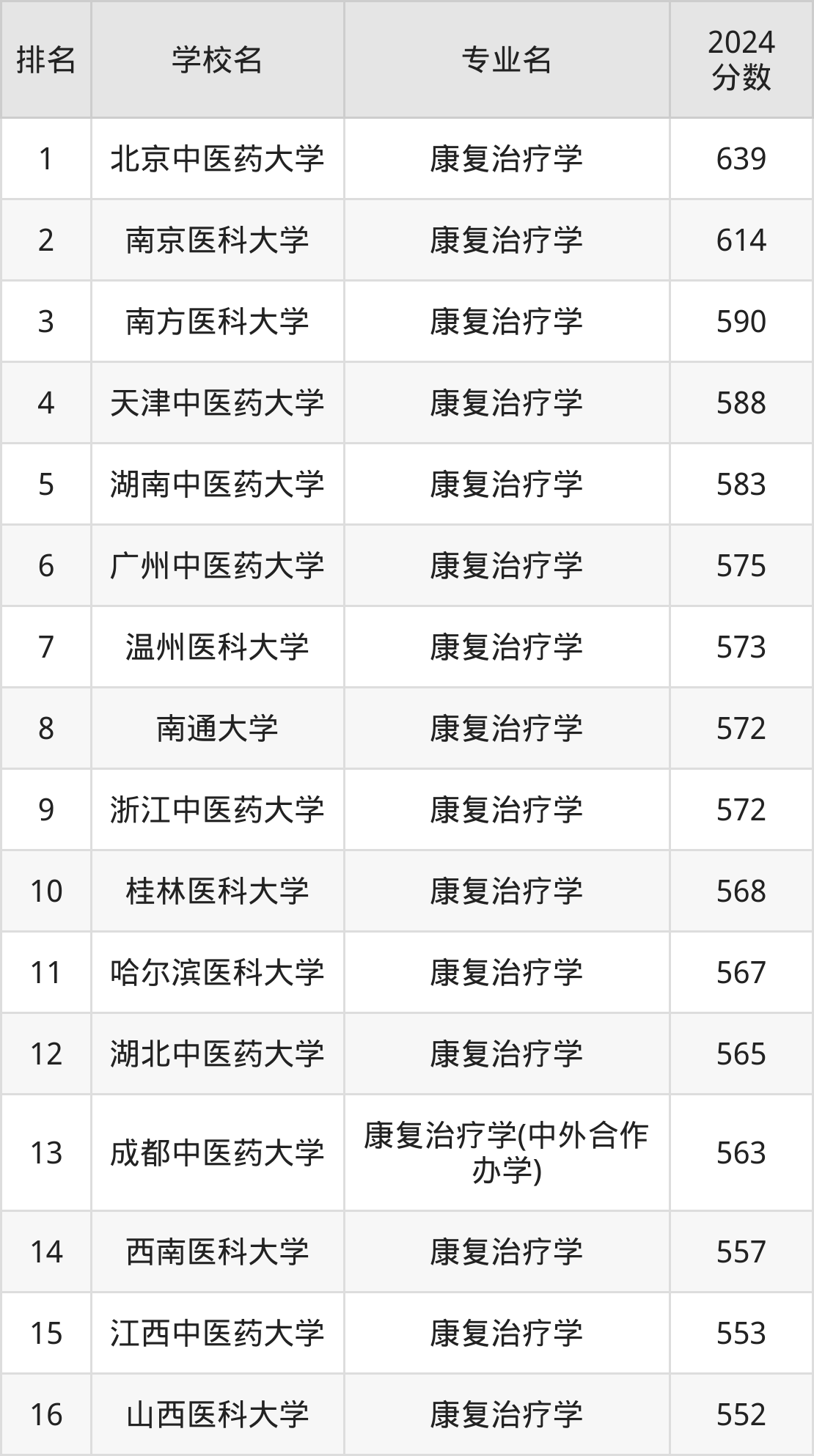 一、康复治疗学十大名校分数线