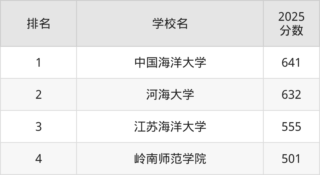 根据软科2025最新排名可知,海洋资源开发技术专业最好的七所名校名单如下: