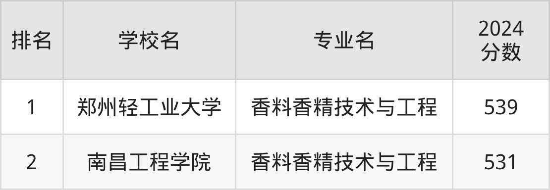 香料香精技术与工程专业排名前2的大学中,收分较低的有南昌工程学院(531分)、郑州轻工业大学(539分)。