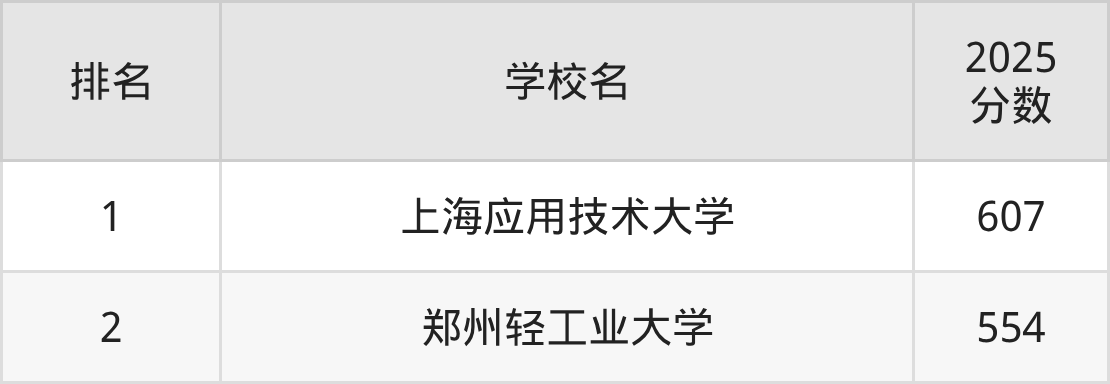 根据软科2025最新排名可知,香料香精技术与工程专业最好的三所名校名单如下: