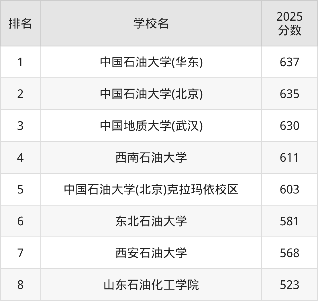 根据软科2025最新排名可知,石油工程专业最好的十所名校名单如下: