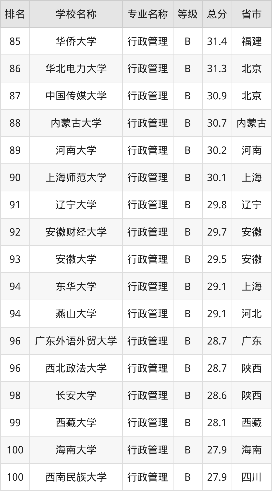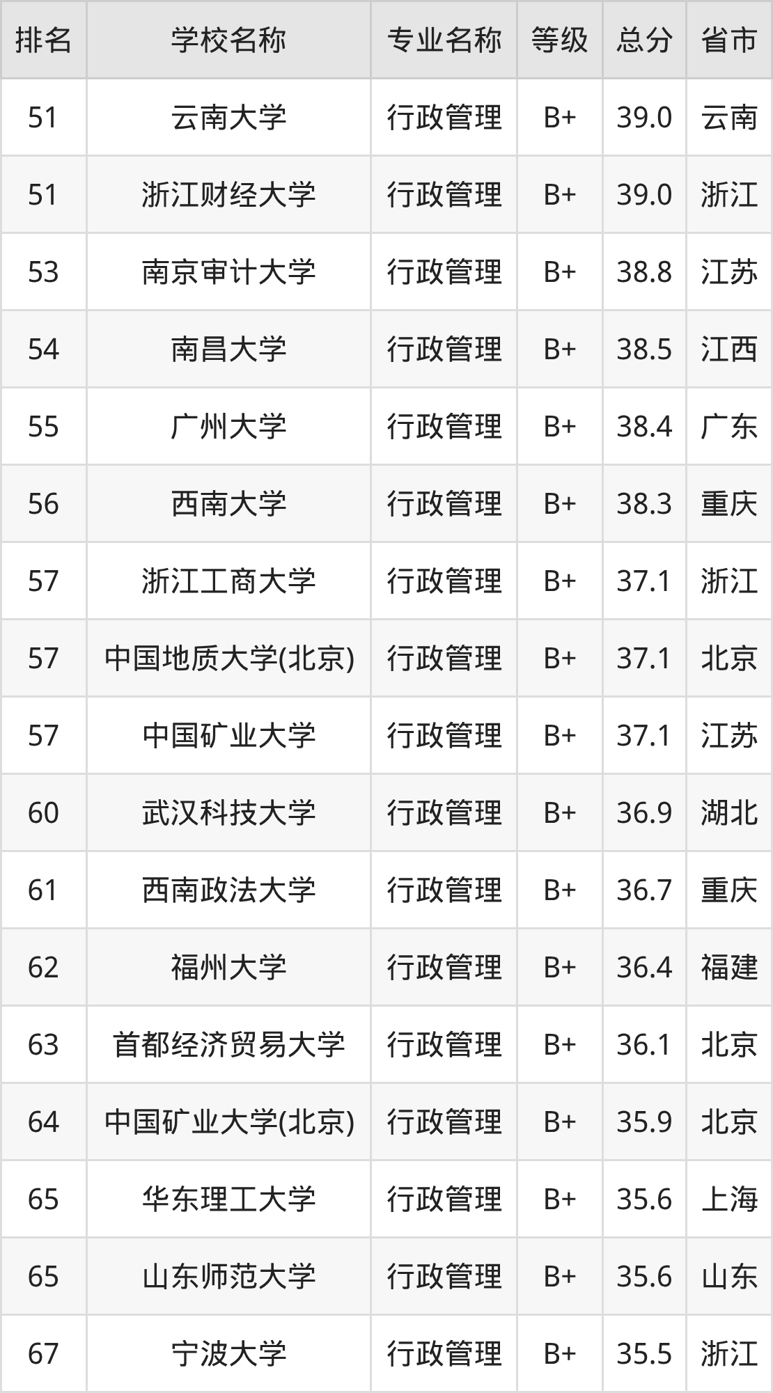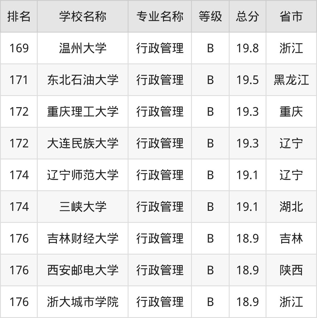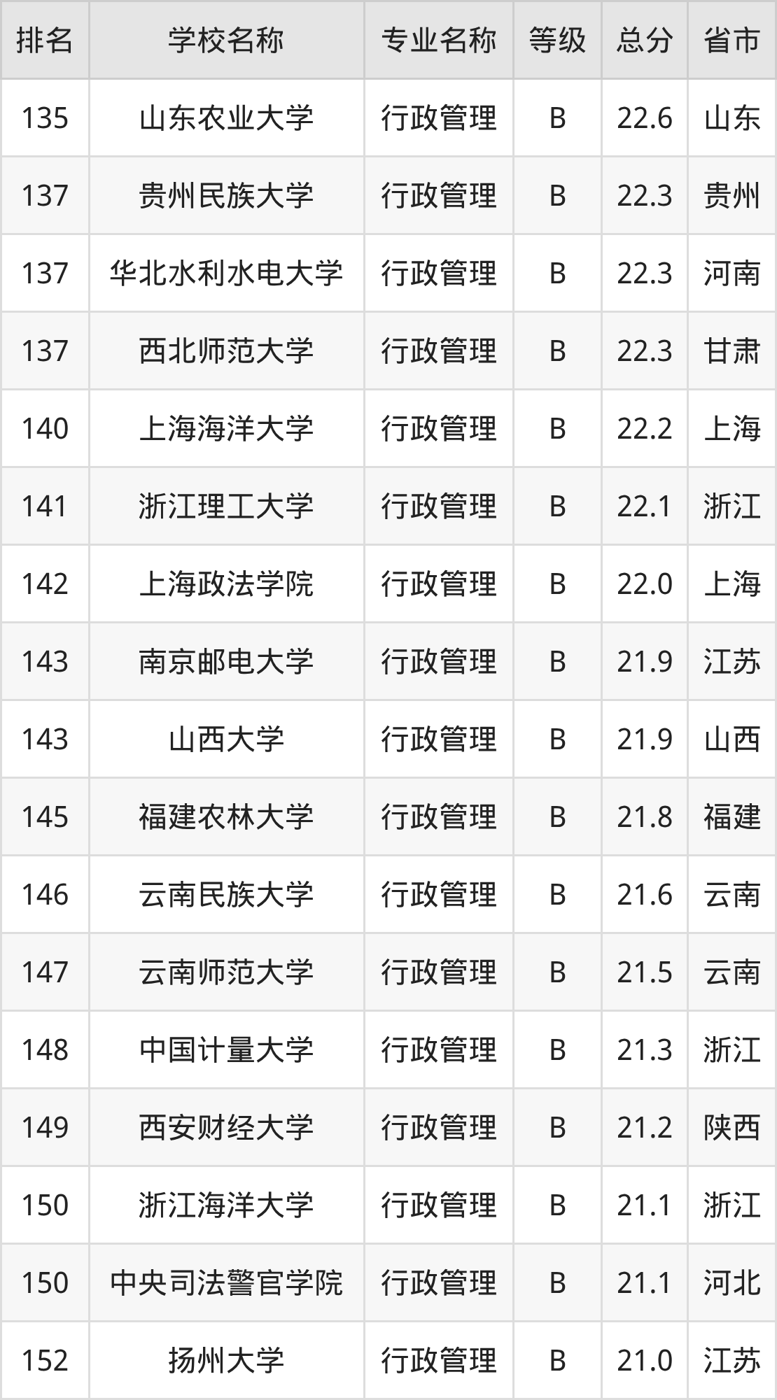 附行政管理专业全国178所院校排名榜单一览表!