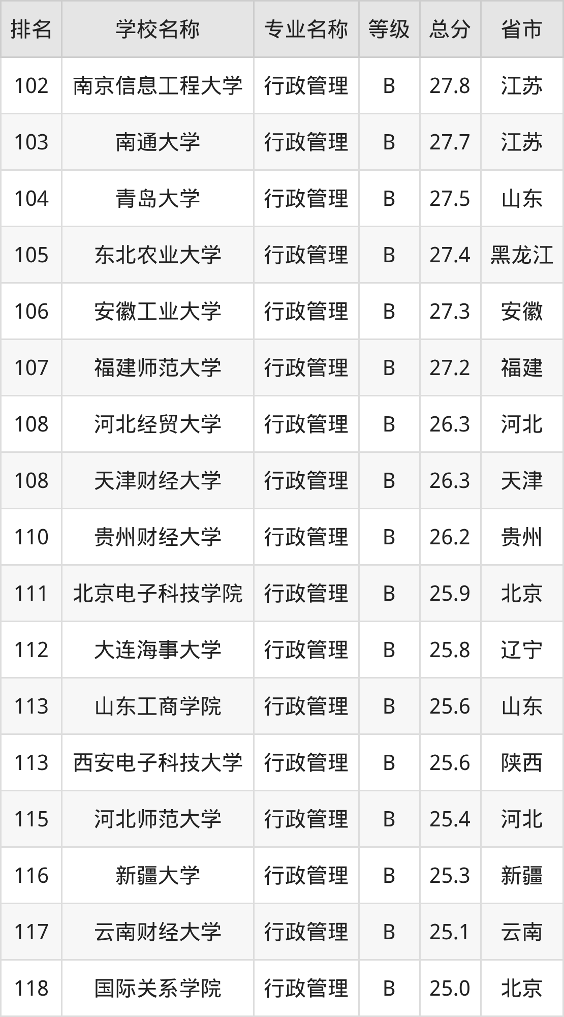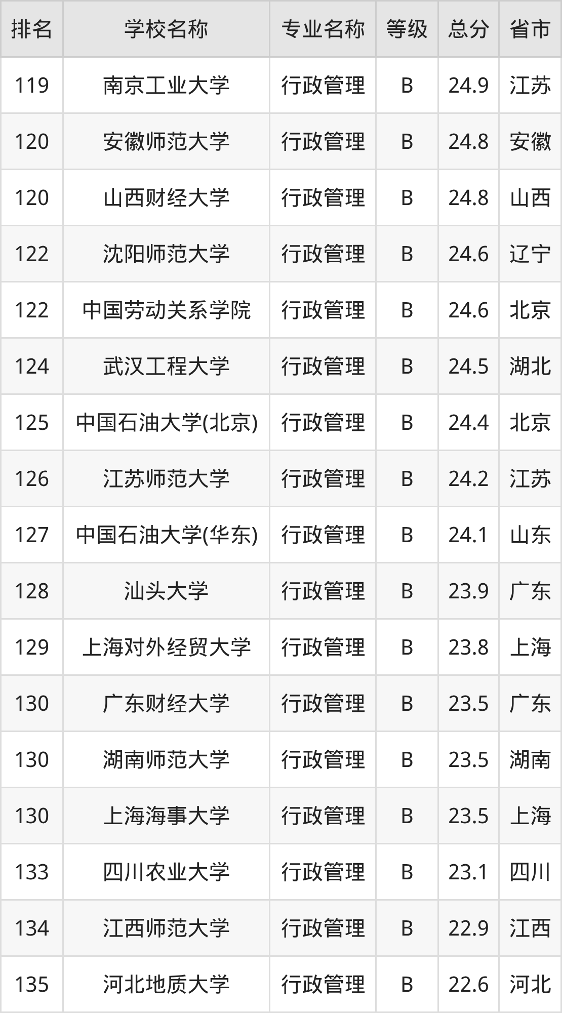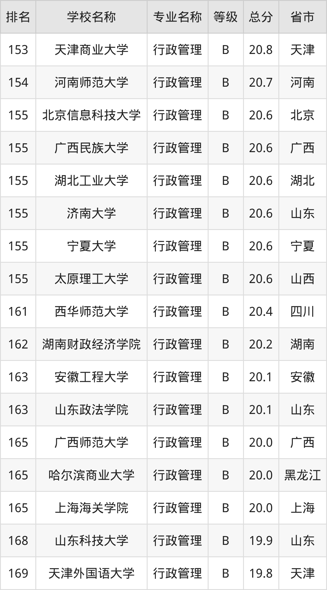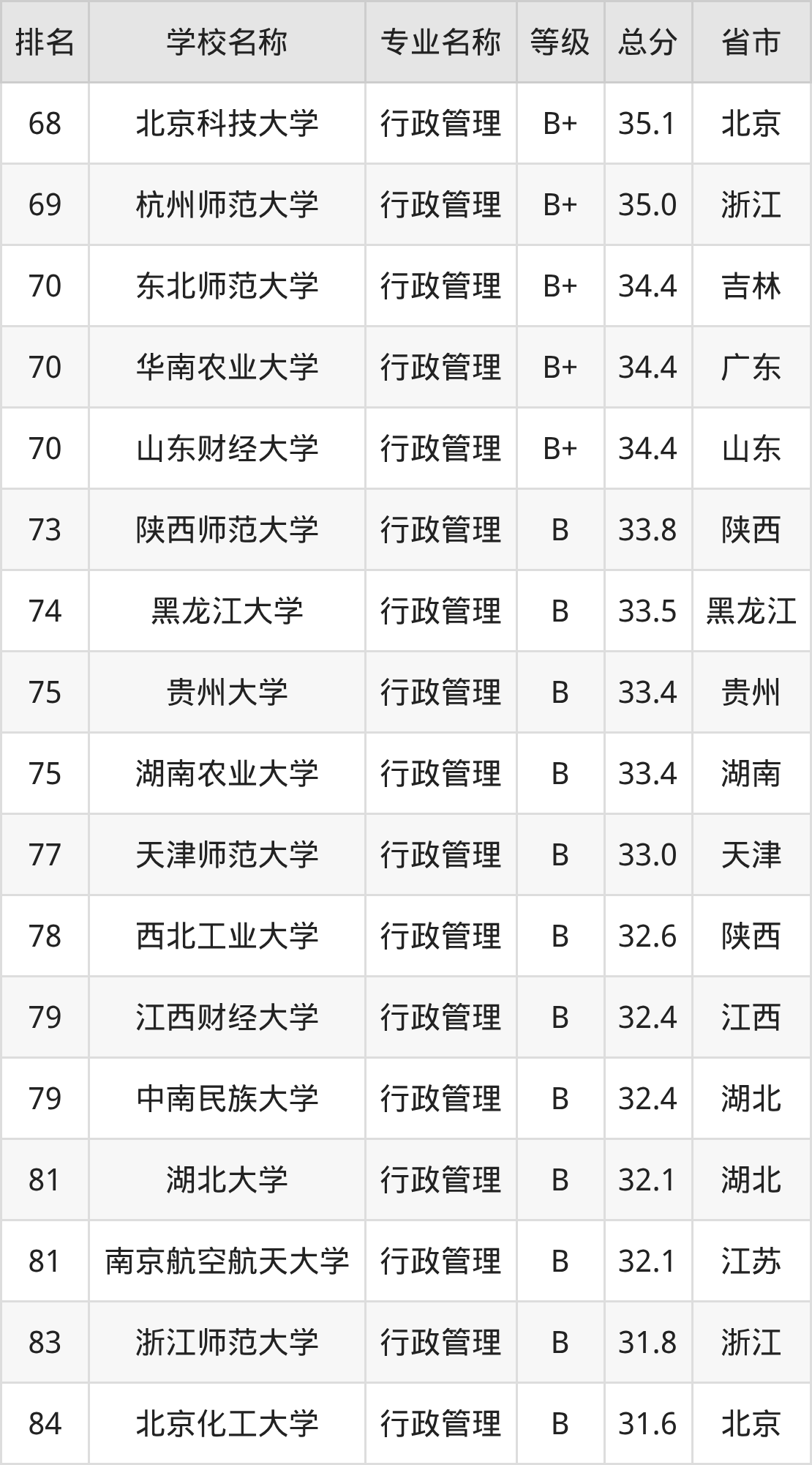 附行政管理专业全国178所院校排名榜单一览表!