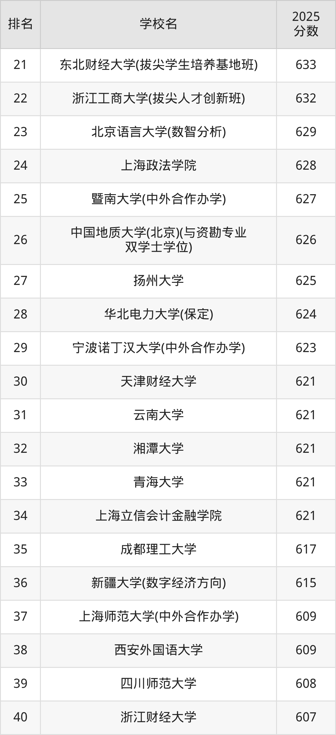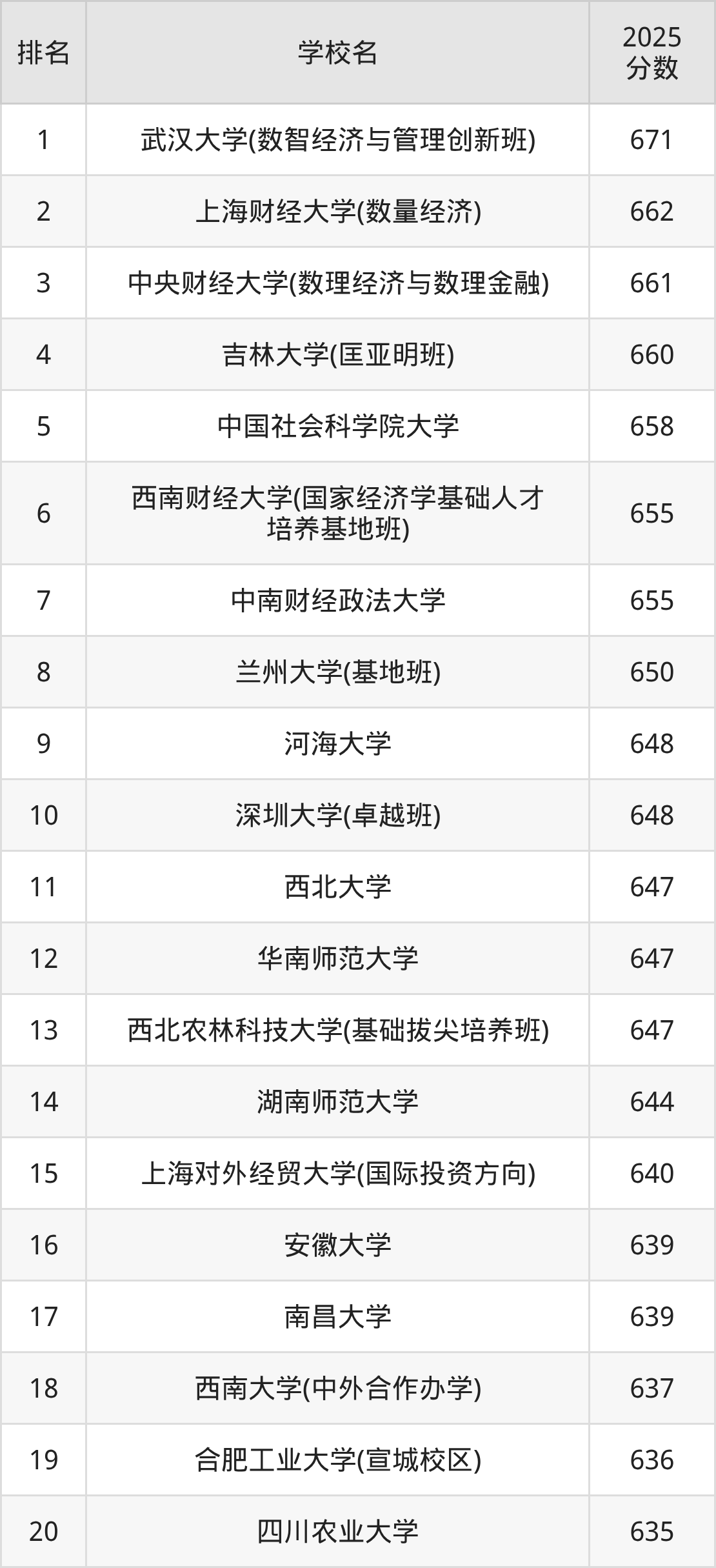 以下为全国经济学专业在浙江省分数线排名前100的大学。