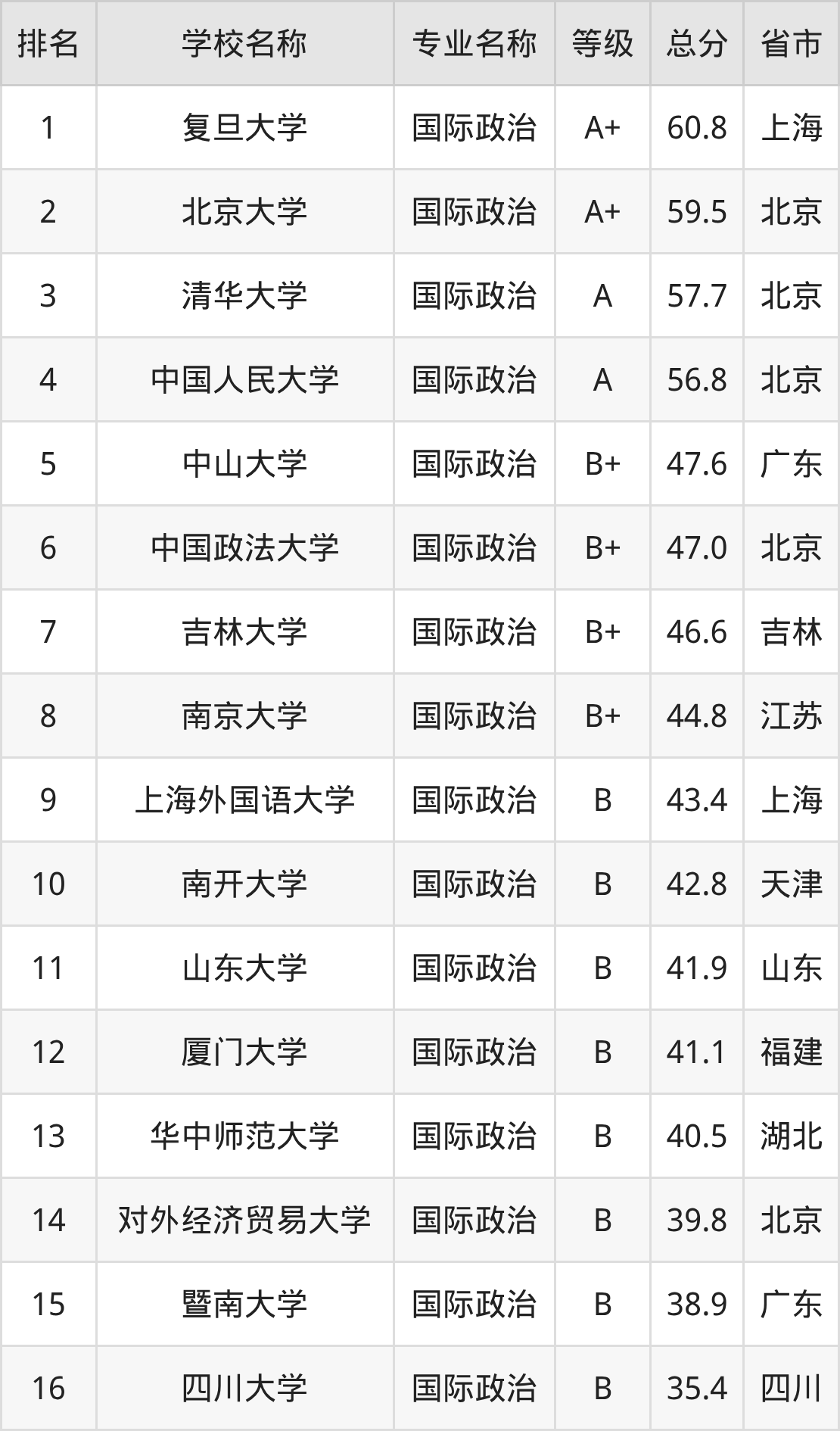一、2025年国际政治专业全国大学排名