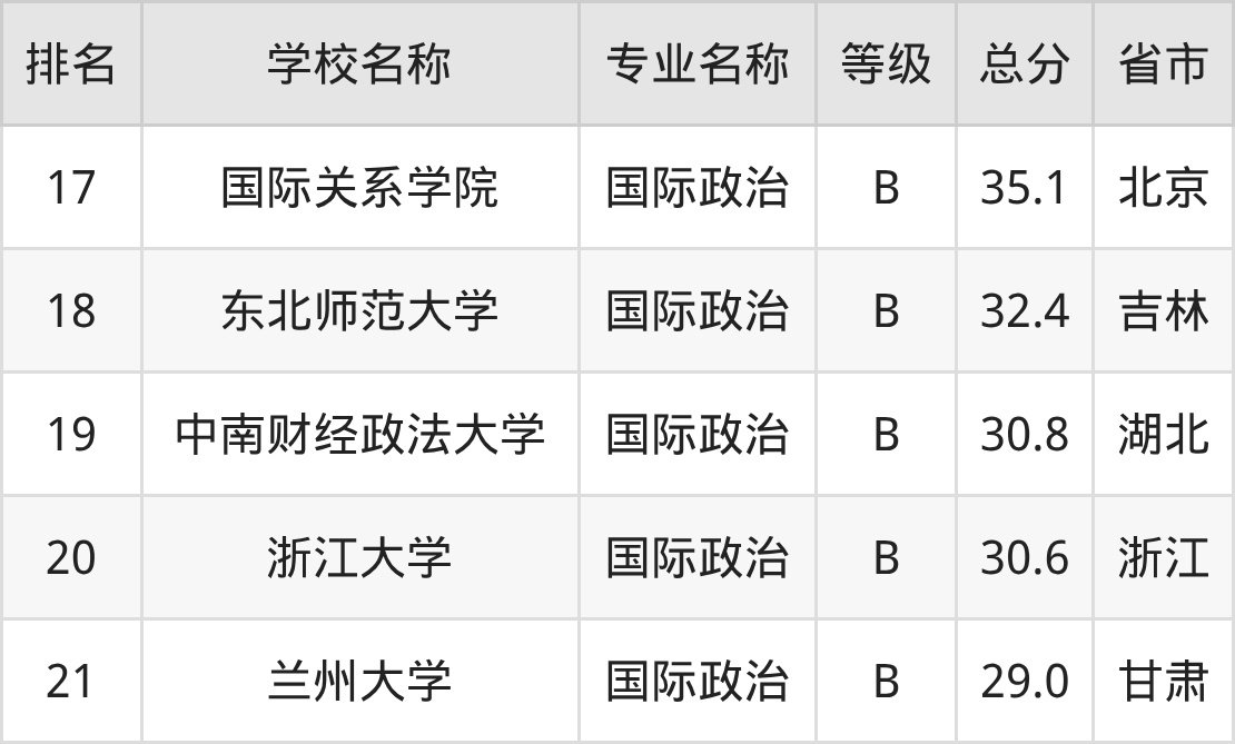 附国际政治专业全国21所院校排名榜单一览表!