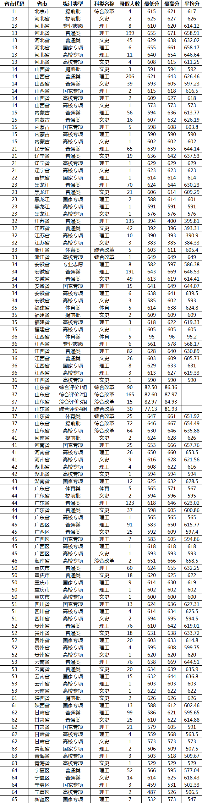 在普通类招生中,理工类最低录取分数线最高的为河北省的655分,文科为辽宁省的636分。