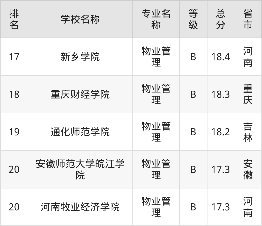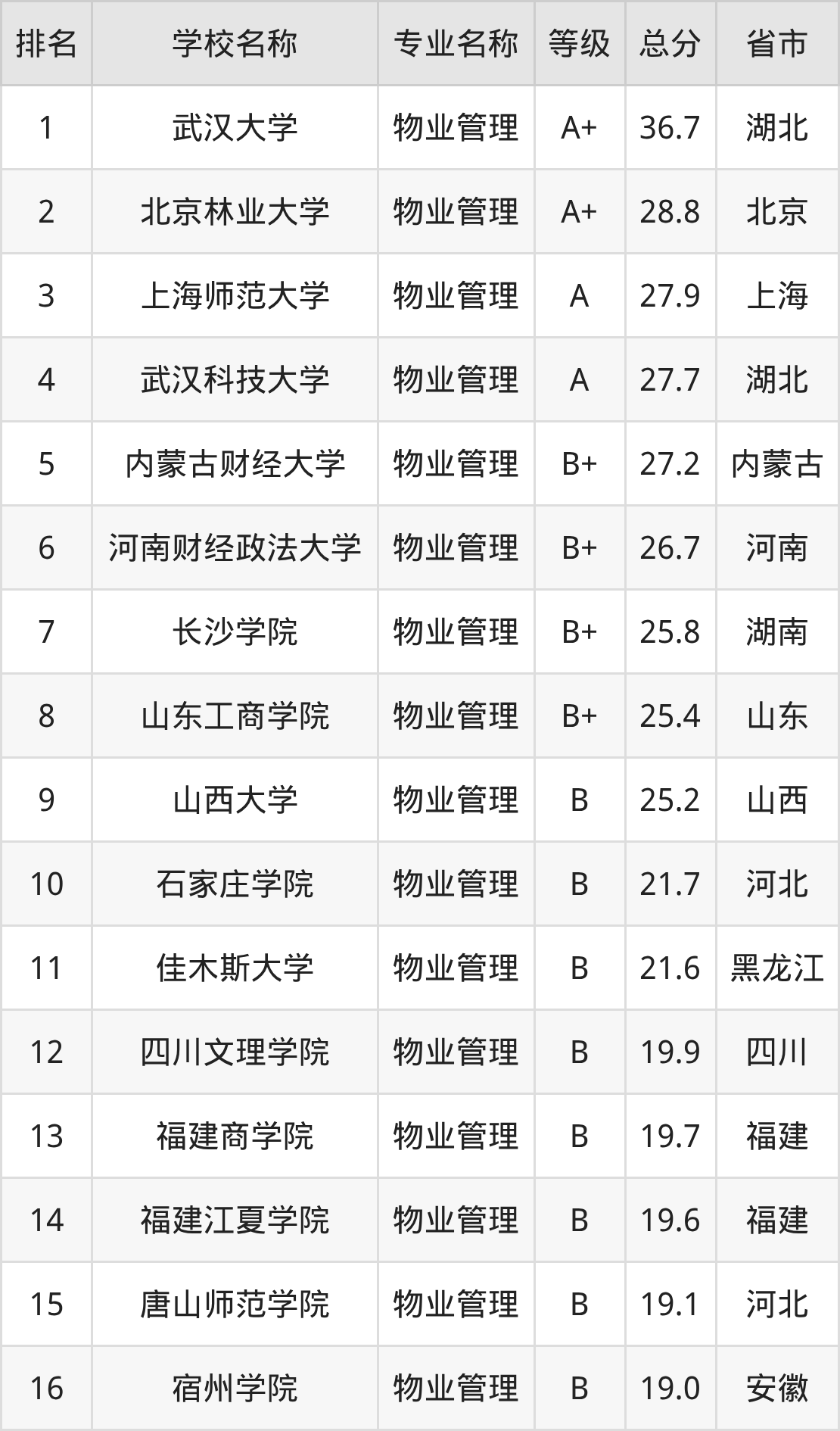 根据软科榜单可知,物业管理专业全国排名前十的大学分别是: