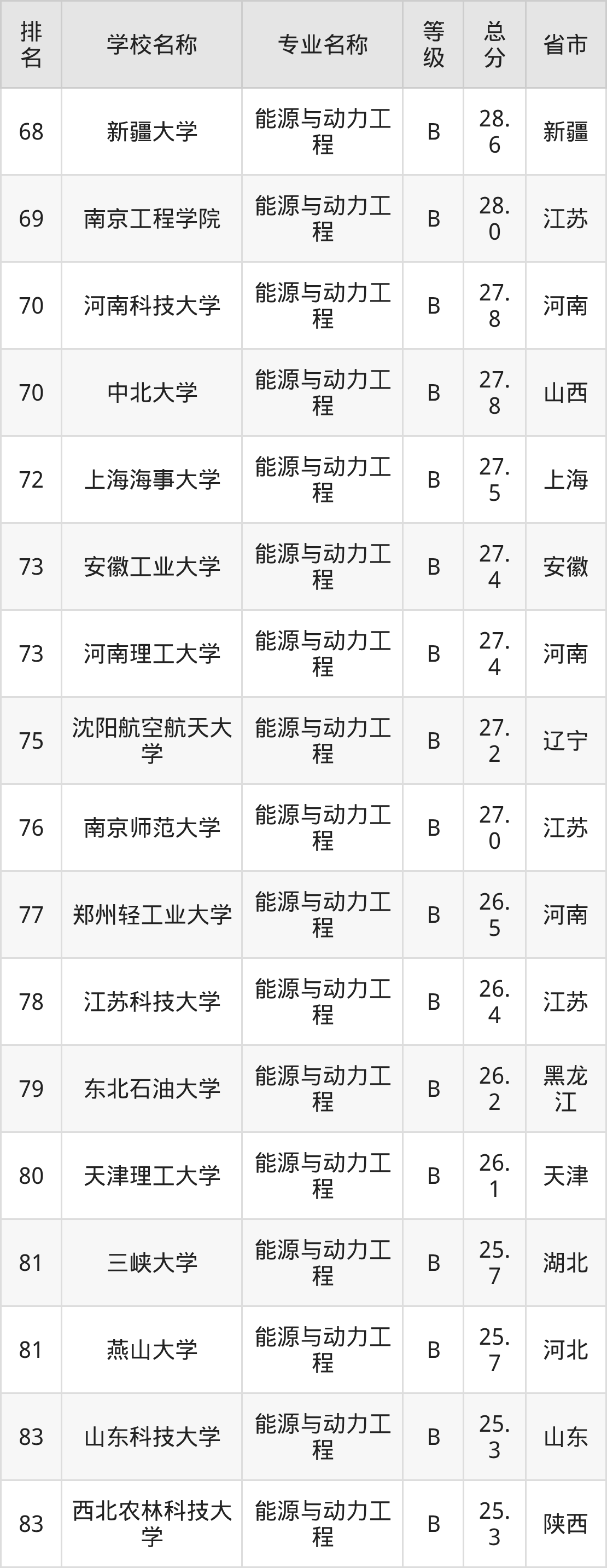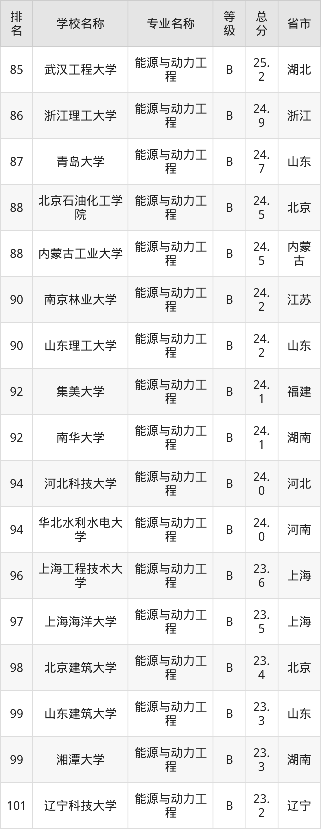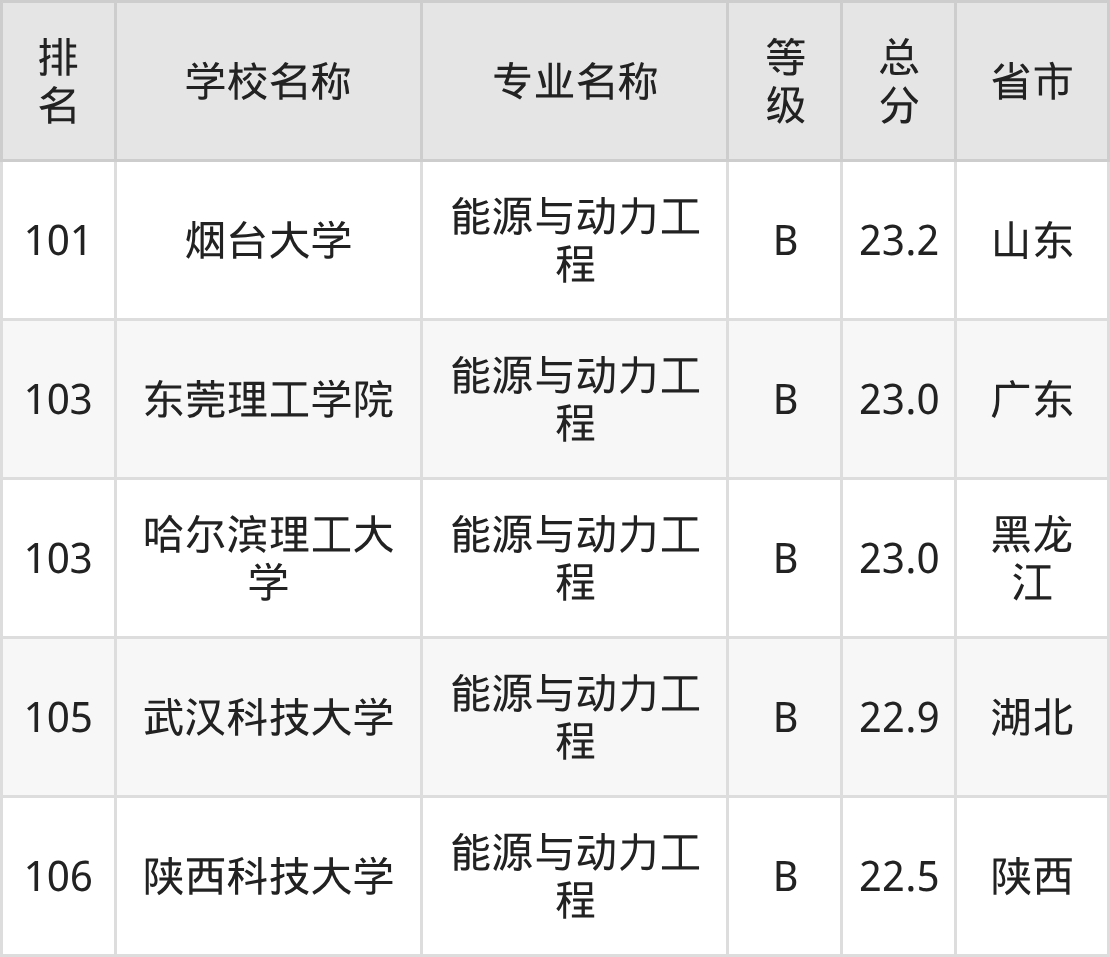 附能源与动力工程专业全国106所院校排名榜单一览表!