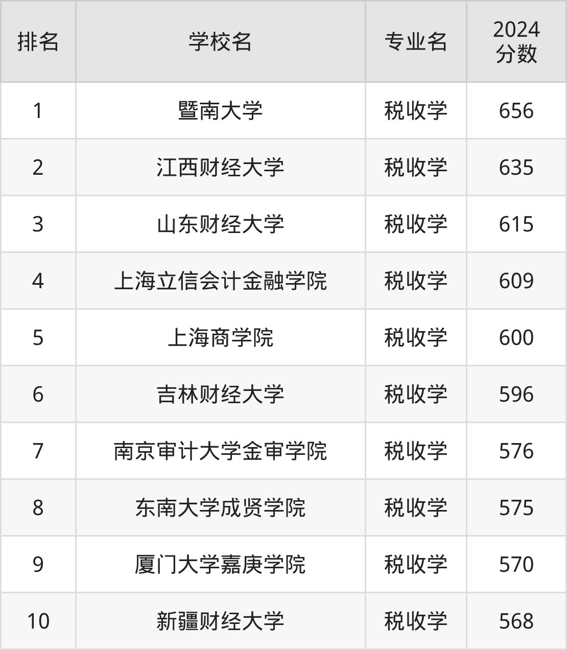 (注:不包含把税收学专业列在大类专业中招生的名校)