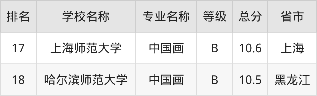 根据软科榜单可知,中国画专业全国排名前十的大学分别是: