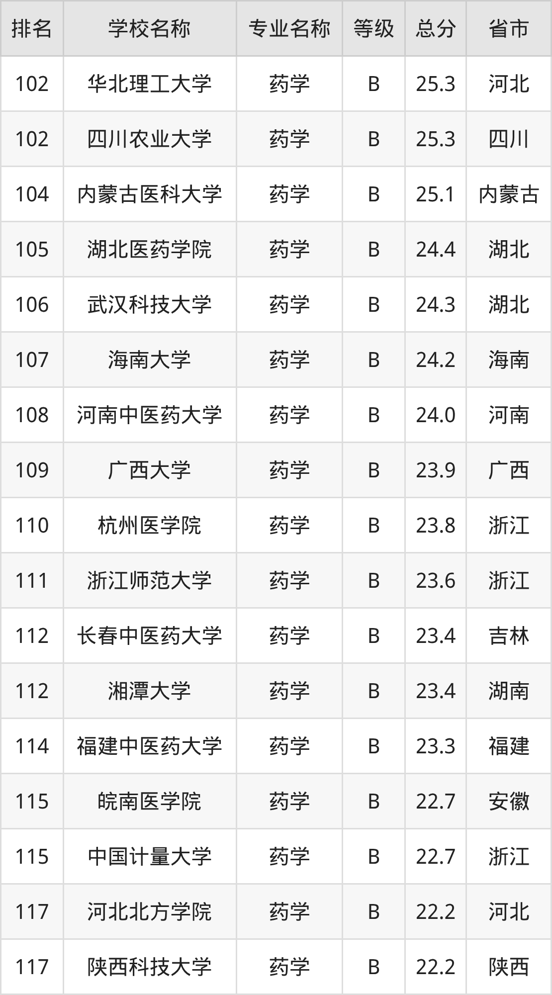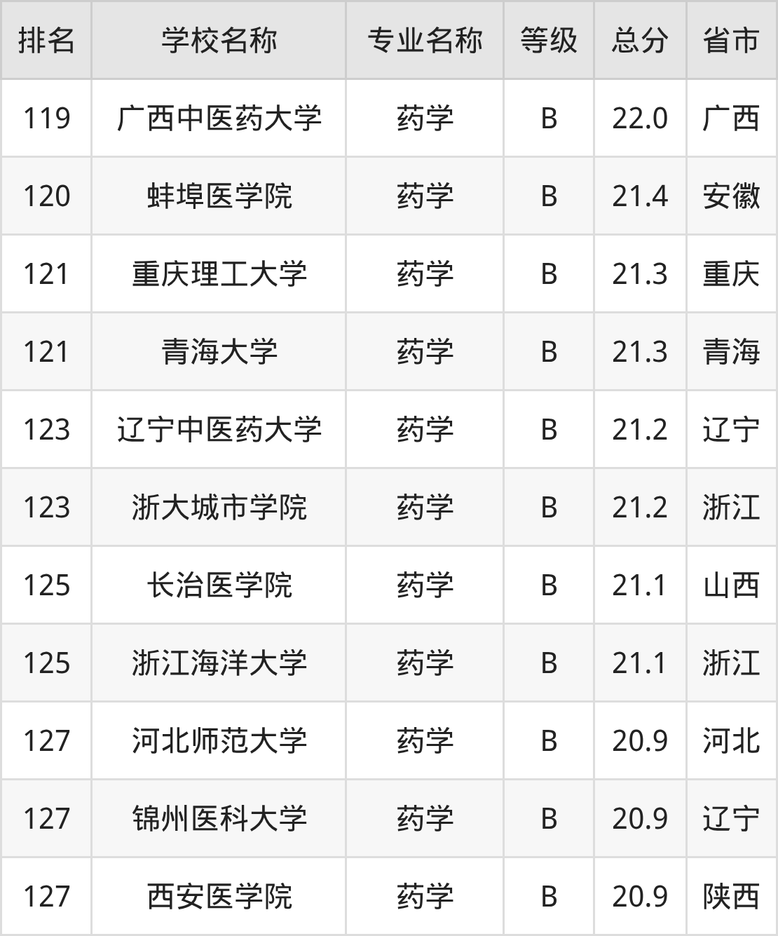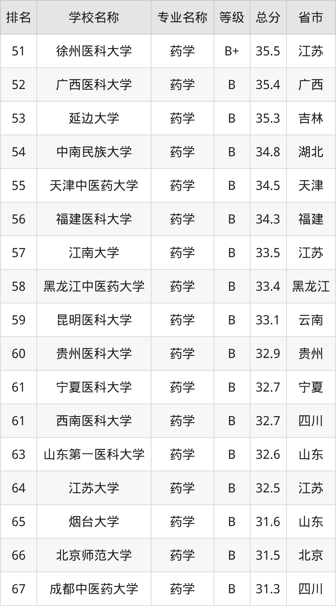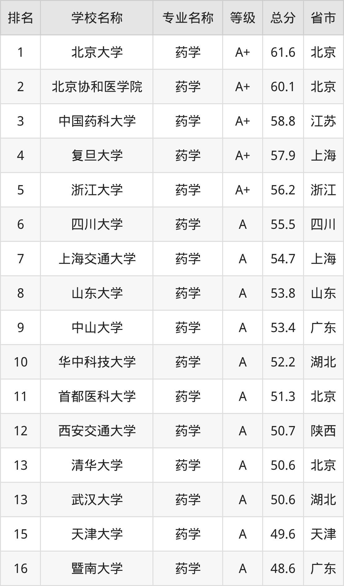 根据软科榜单可知,药学专业全国排名前十的大学分别是: